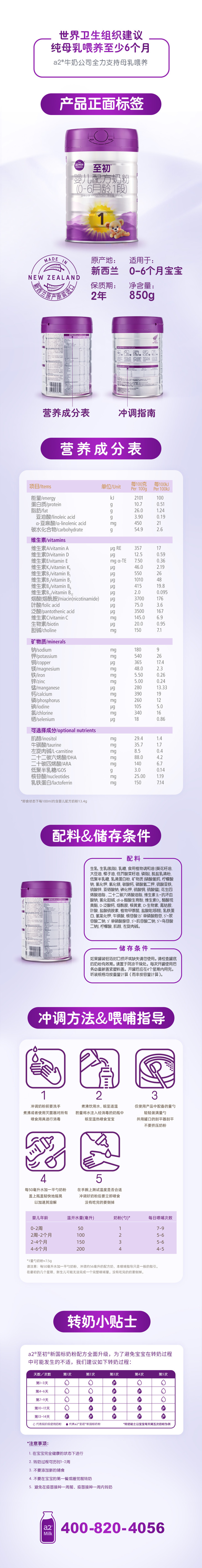 a2至初1段婴儿配方奶粉 单罐/850g(0-6月龄)
