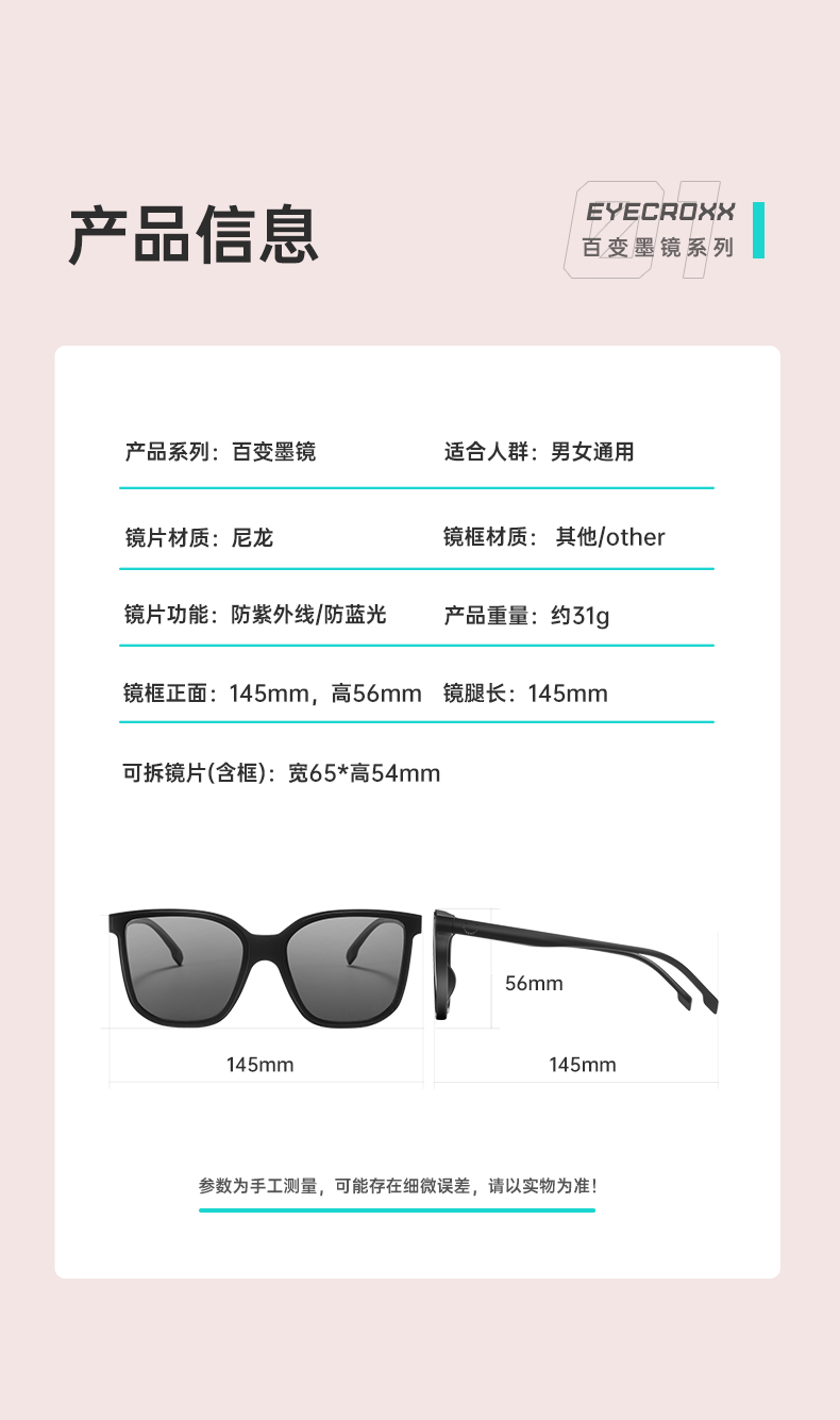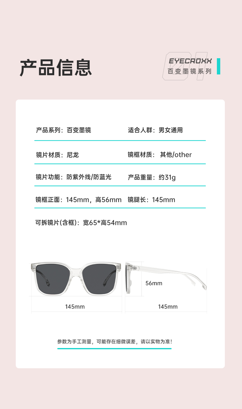 推荐商品⑥:EYECROXX乘号2022新款可拆卸百搭防紫外线偏光太阳 EX22119b
