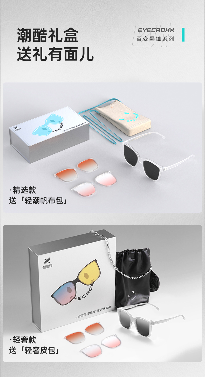 推荐商品⑤:EYECROXX乘号百变可拆卸镜片防紫外线偏光墨镜 百变换片1+2 EX22119