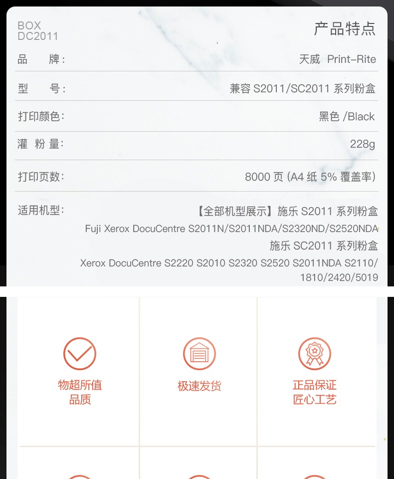 天威 S2010/S2011/S2110粉盒 适用DocuCentre富士施乐S1810 S2220 S2420 S2320 S2520N/NDA施乐复印机粉盒 墨盒 墨粉