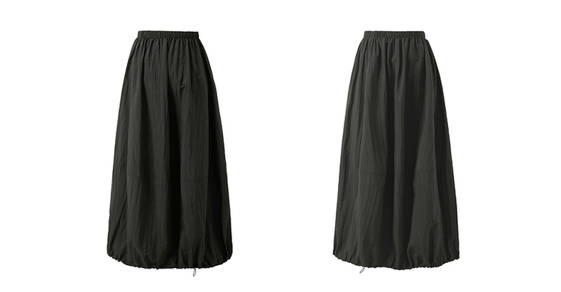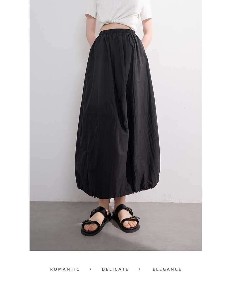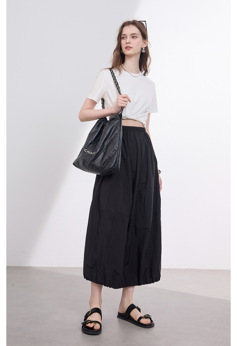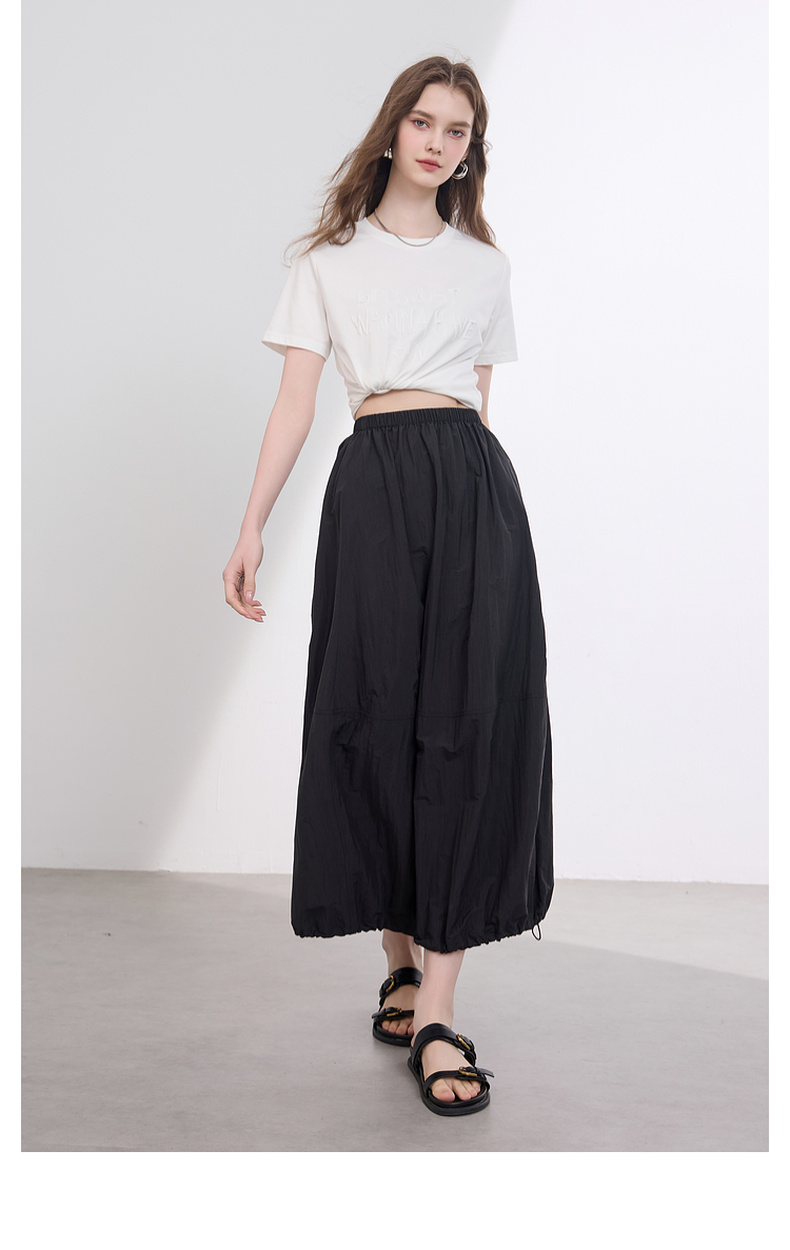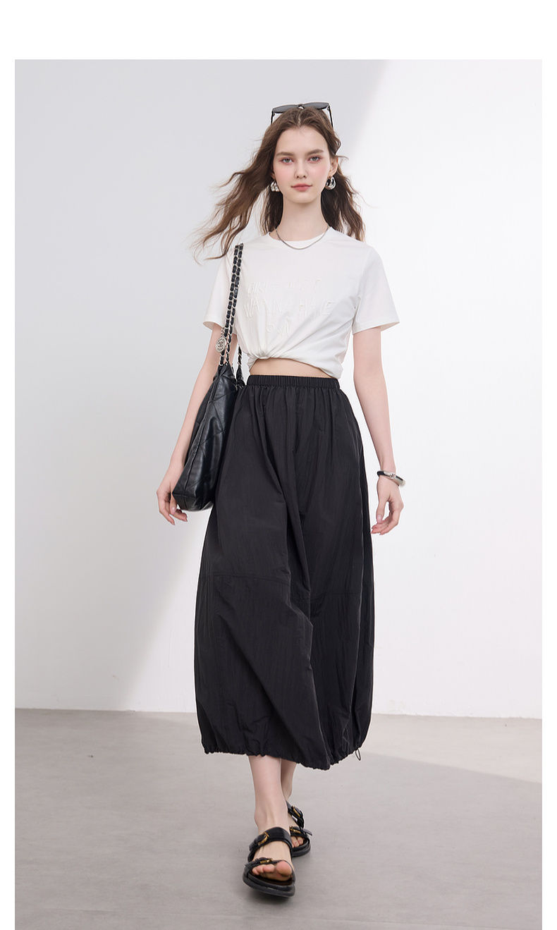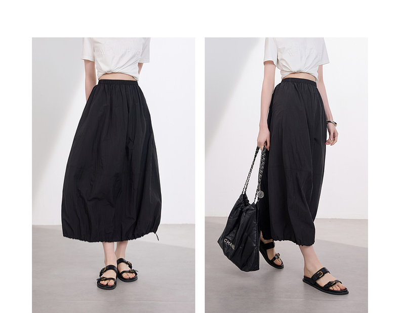 三彩2025夏季新款花苞半身裙高腰松紧A字裙长裙小黑裙休闲M