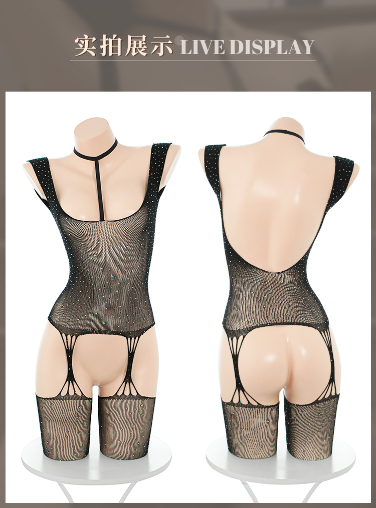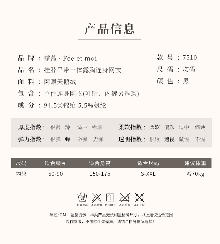 【情趣内衣】霏慕 挂脖吊带一体露胸连身网衣7510