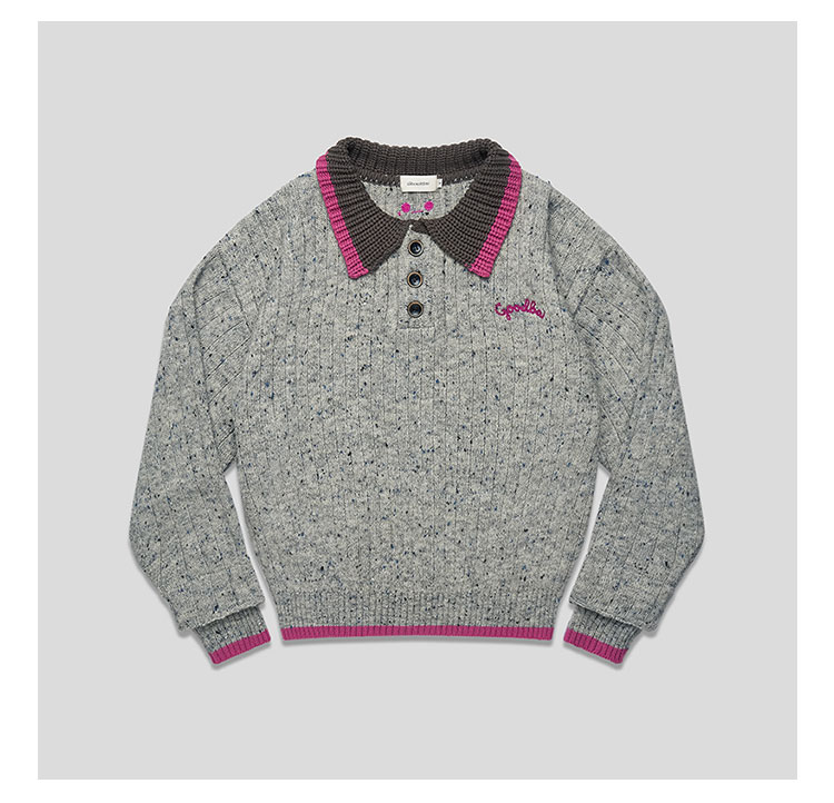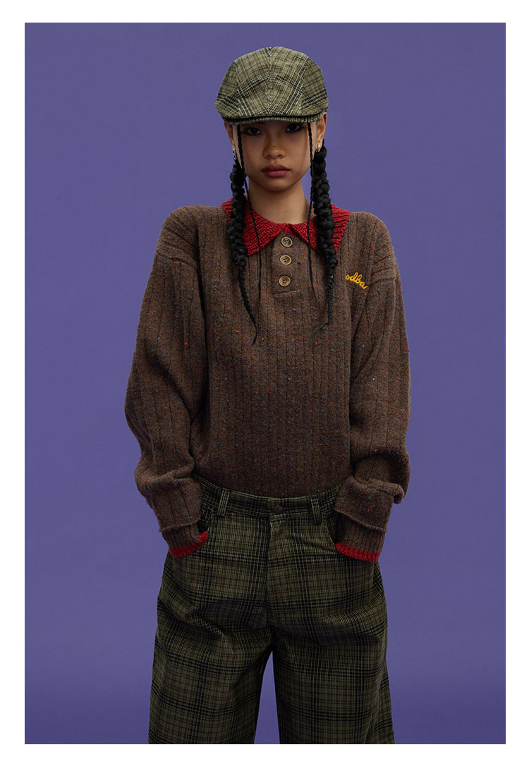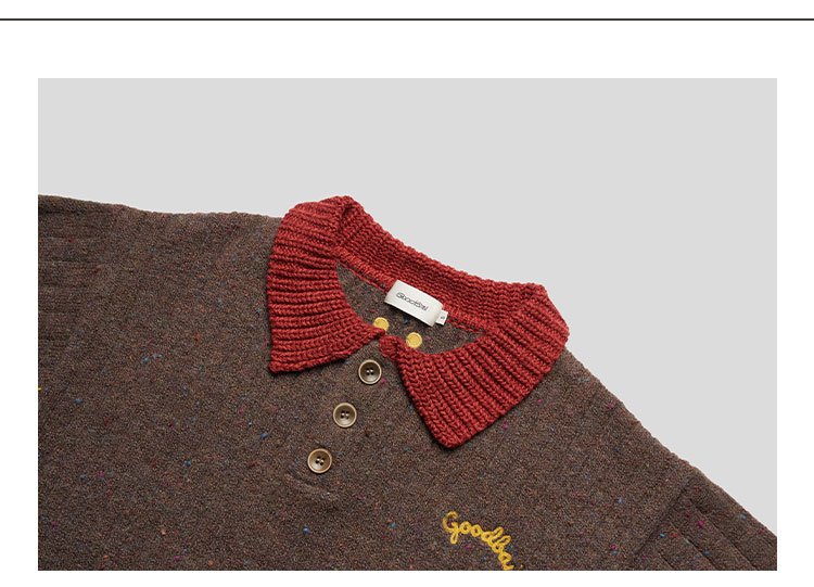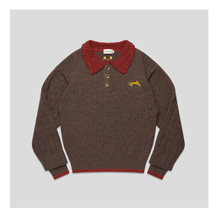 GOODBAI GOODEES刺绣logo撞色宽松polo领毛衣