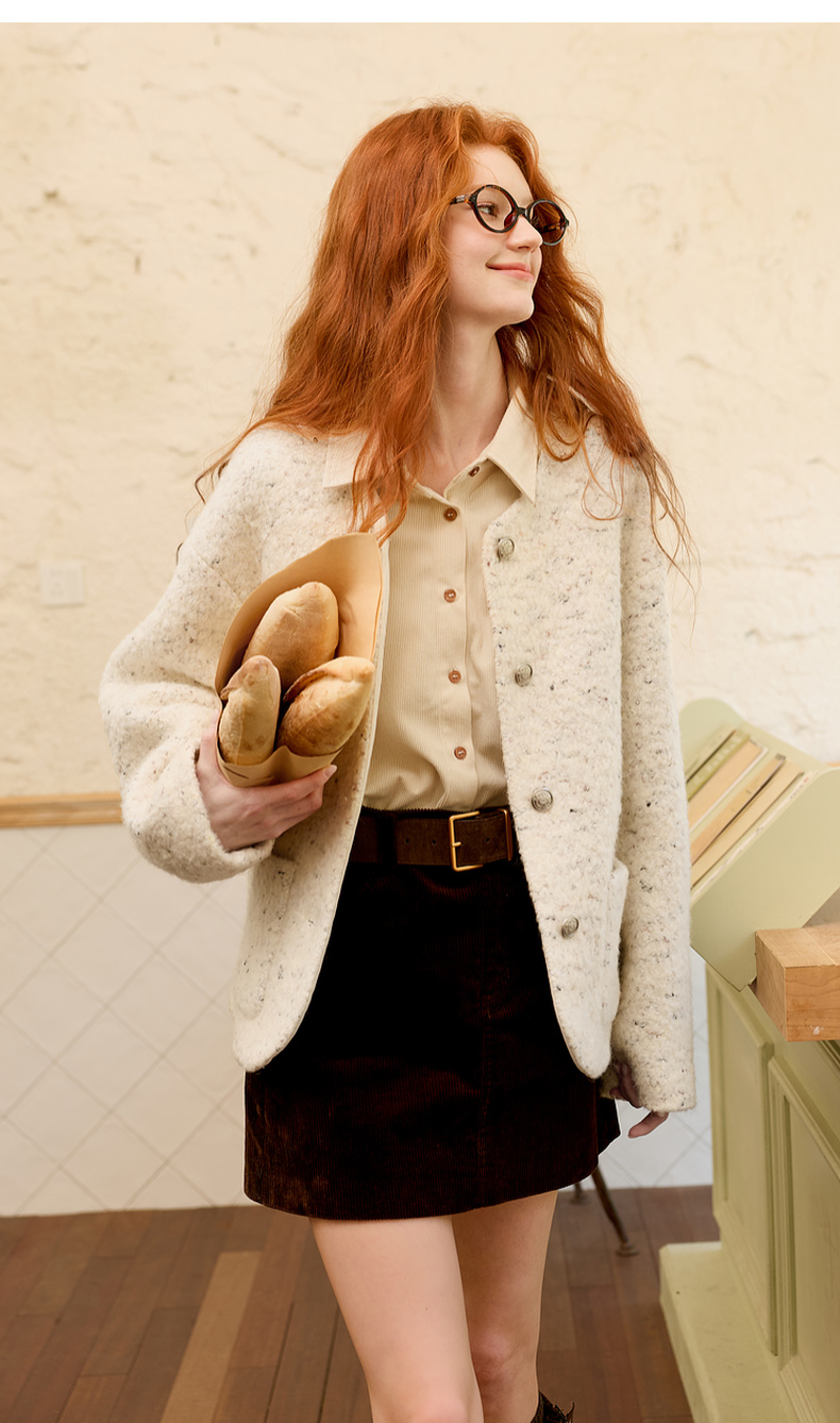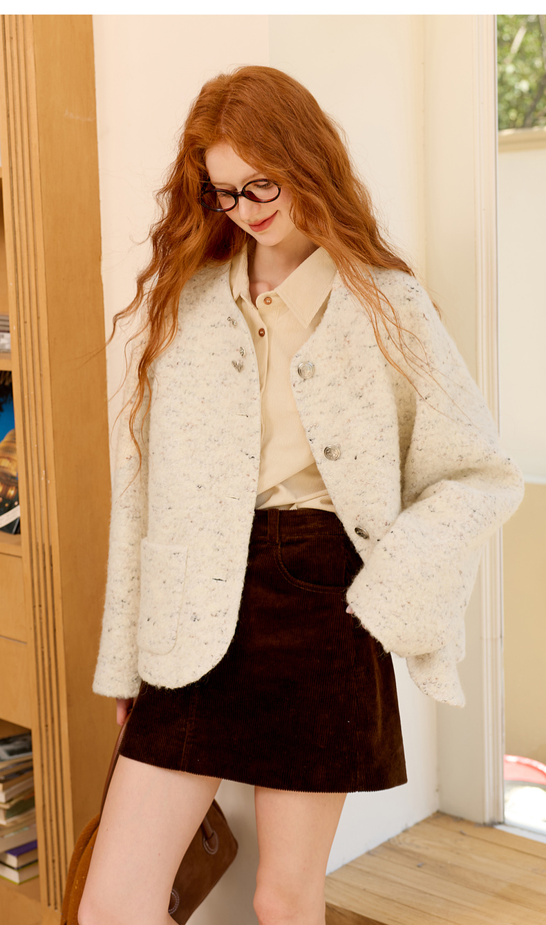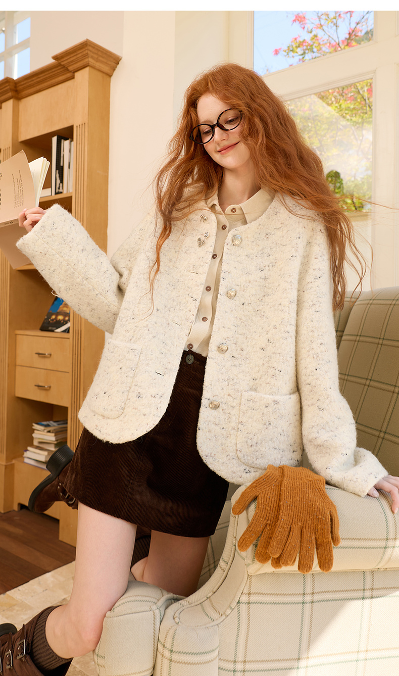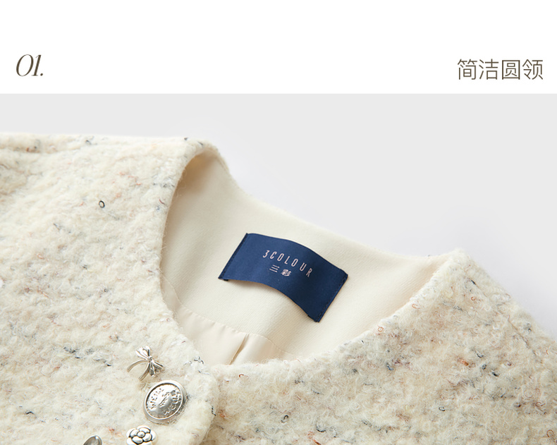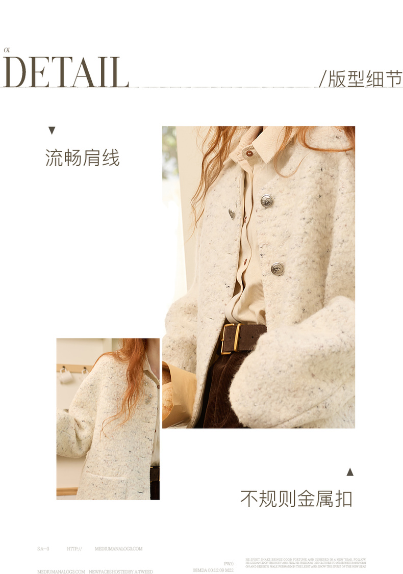【绵羊毛】三彩2025冬季新款彩点圈圈呢大衣毛呢外套宽松温柔风M