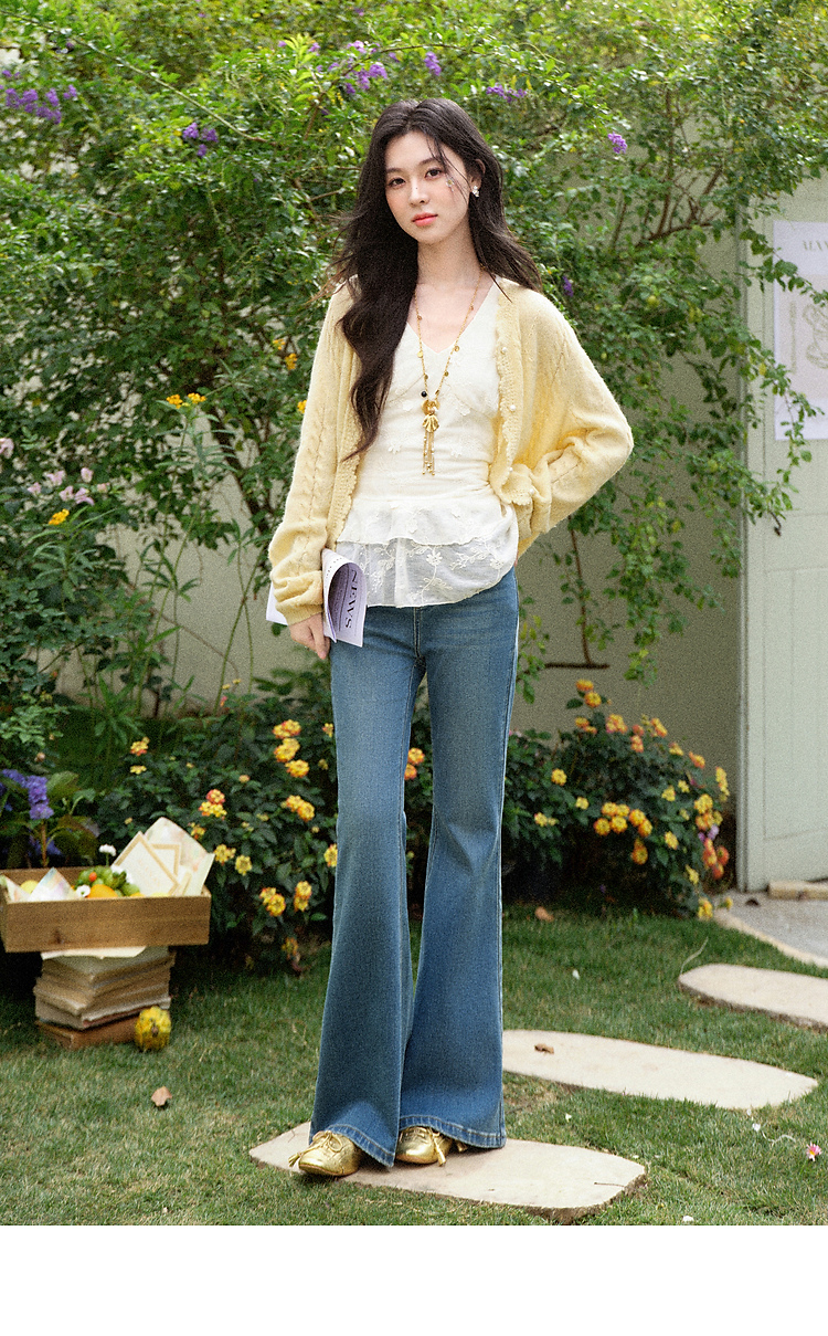 鹿向南「芒芒奶冻」高级感黄色针织衫女春季新款洋气长袖开衫上衣