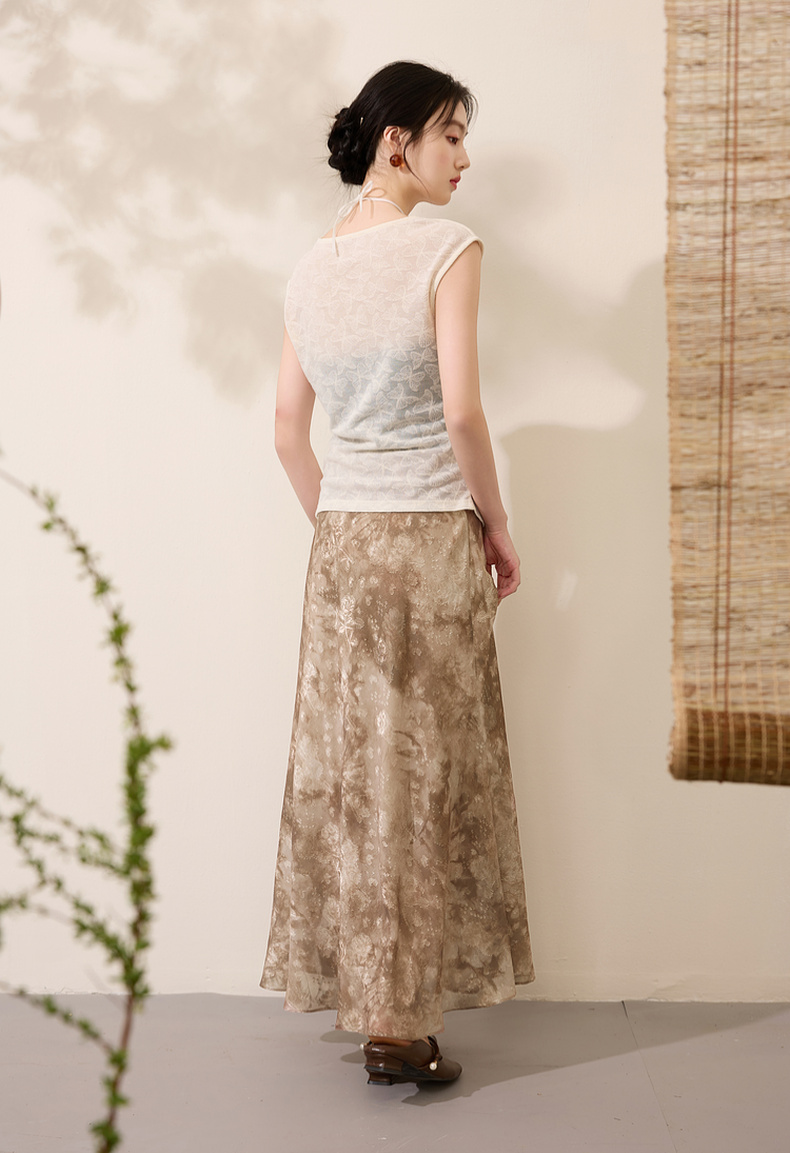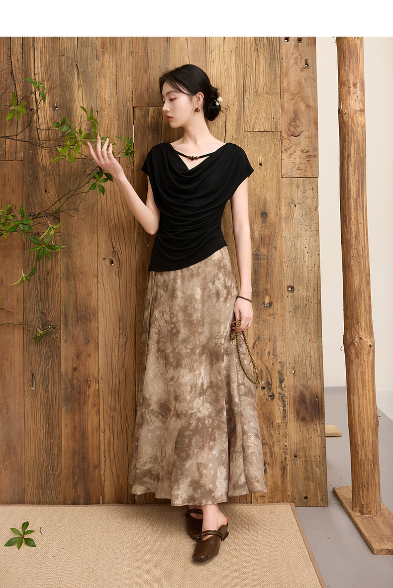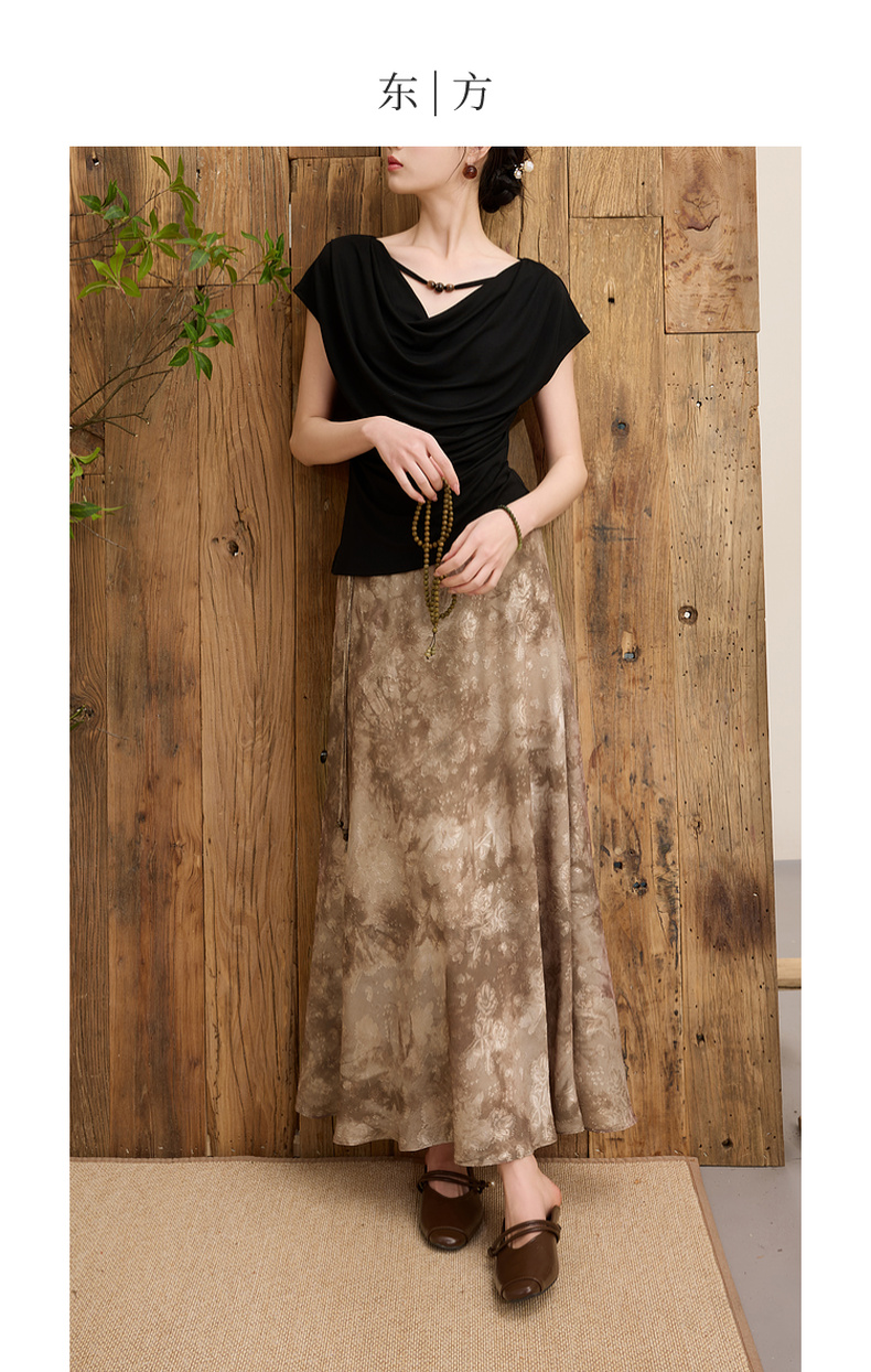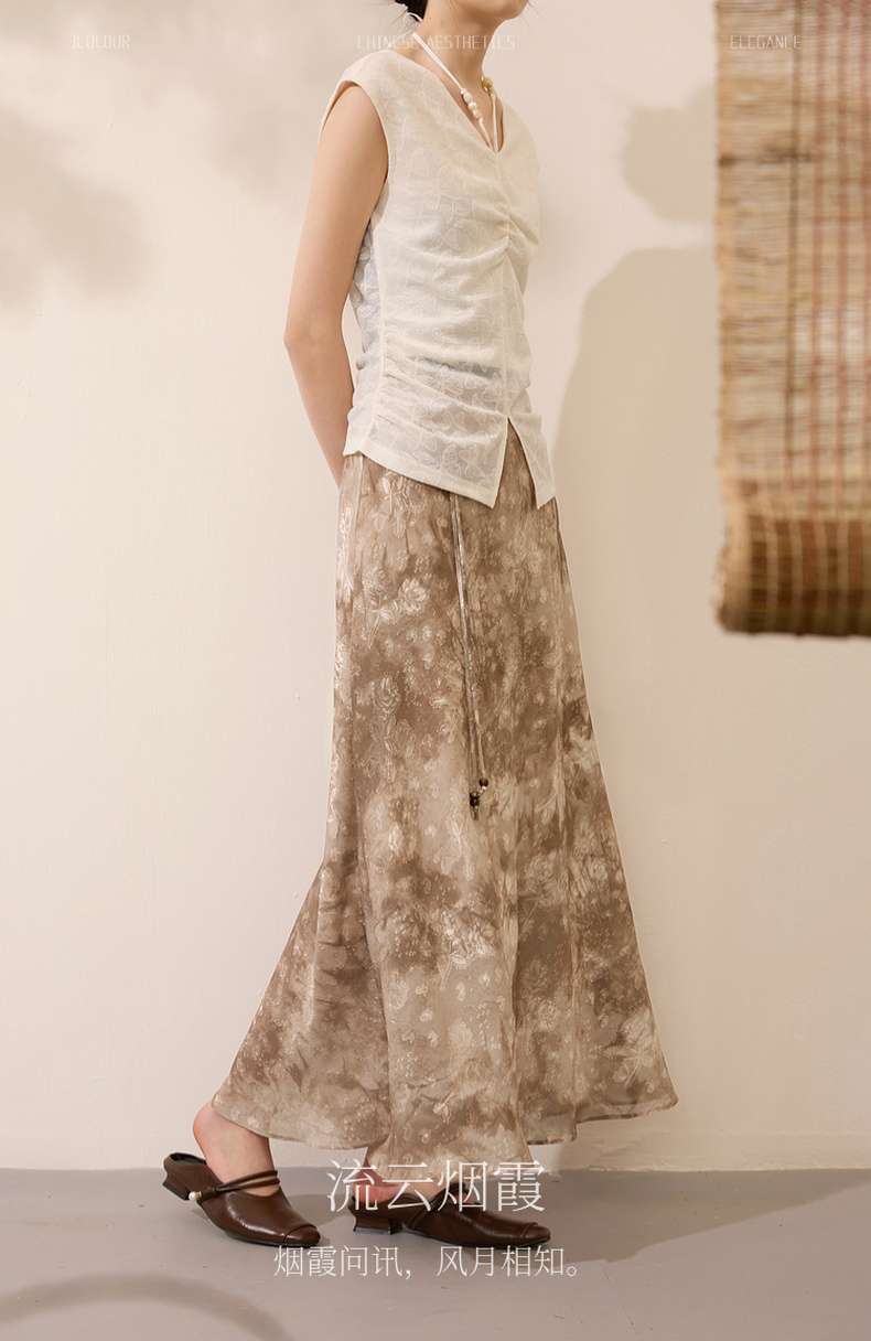 三彩【流云烟霞】2025春季新款新中式半身裙提花印花鱼尾长裙C