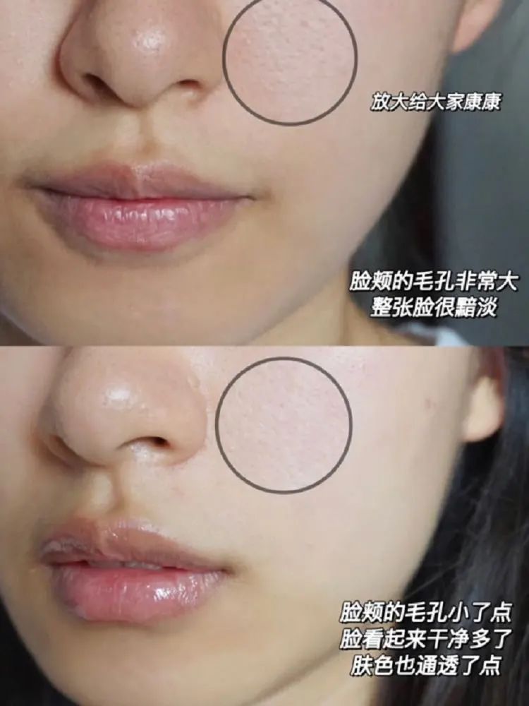 我自己用了有一个月,明显感觉T区两侧的毛孔变细了,肌肤变得匀净透亮,脸颊的暗沉、泛黄也都明显有改善。