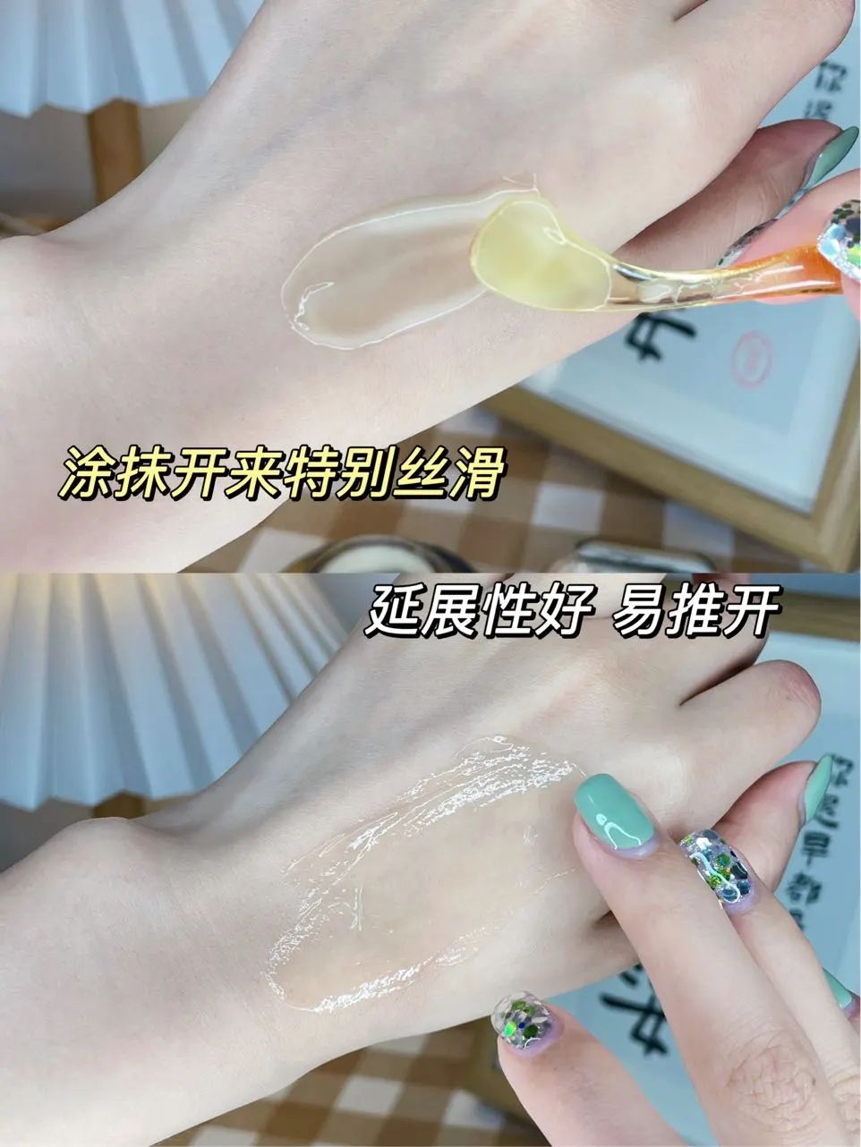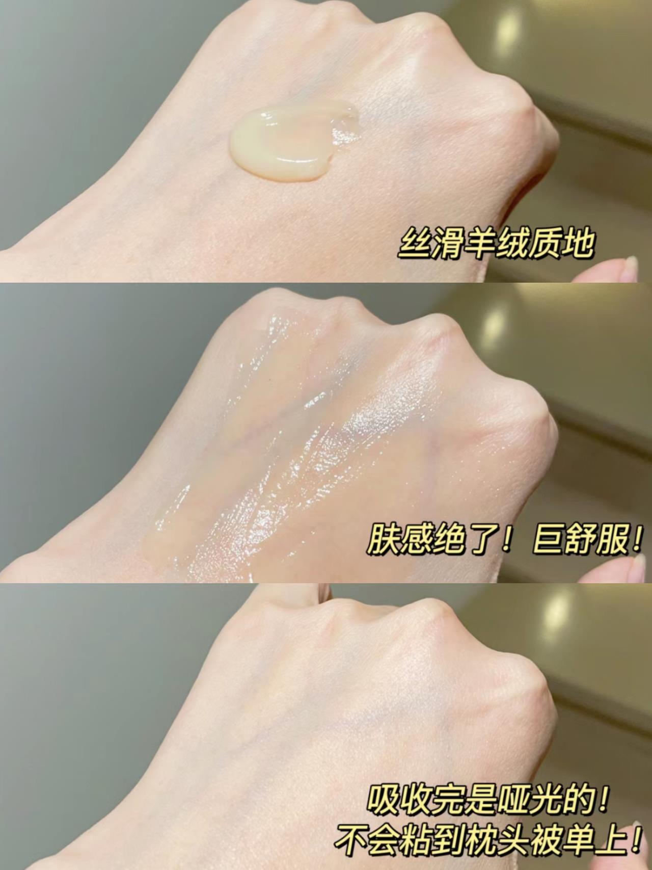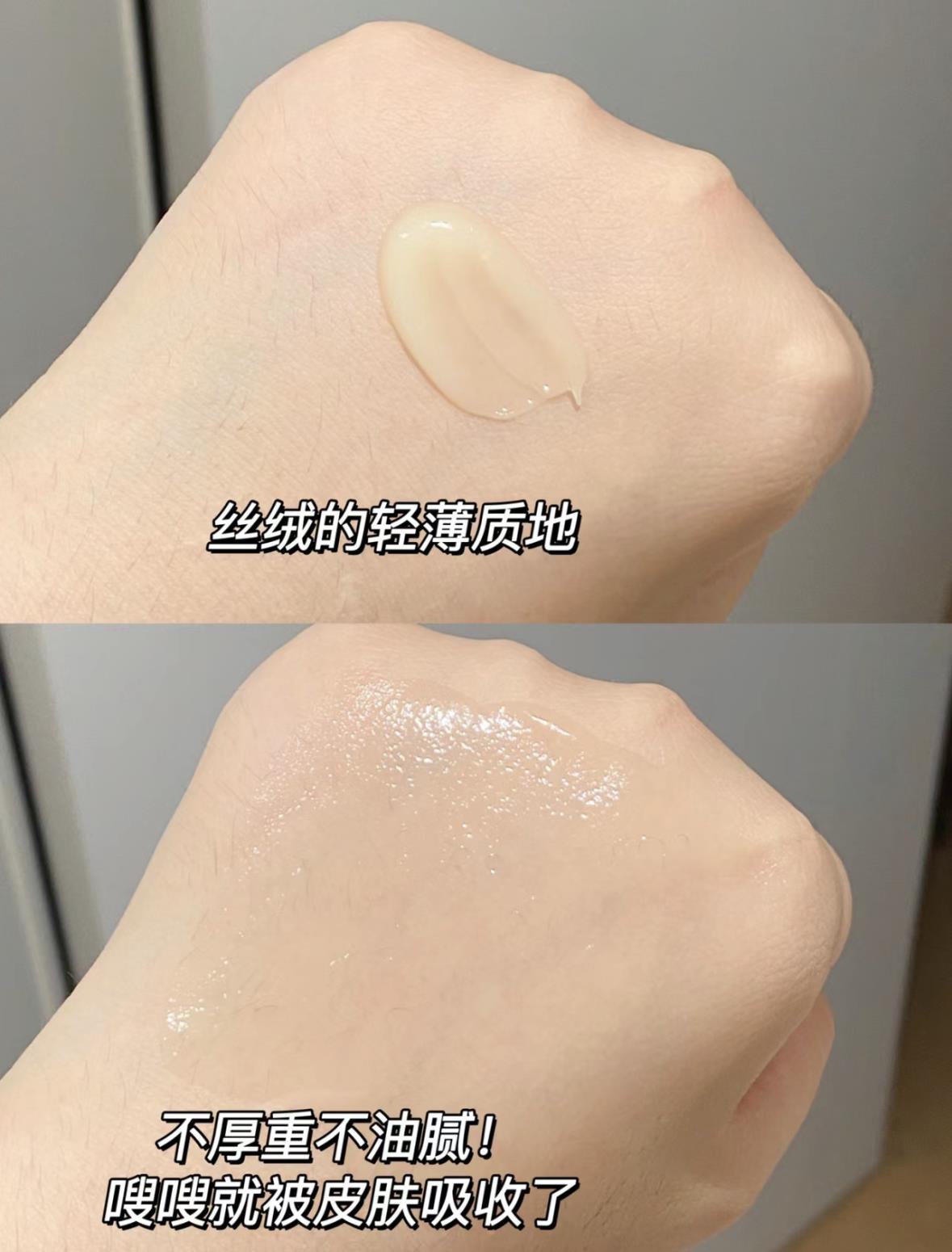 肤感冰冰凉凉的,丝绒绵密质地,一抹就推开,完全不粘腻!