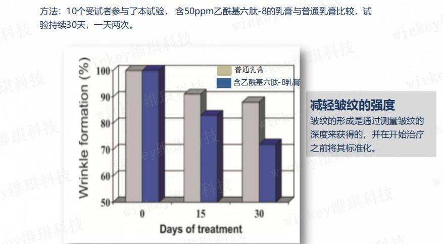 通过体内及体外实验可以明显看出,涂抹了乙酰基六肽-8后皱纹大幅度减淡!