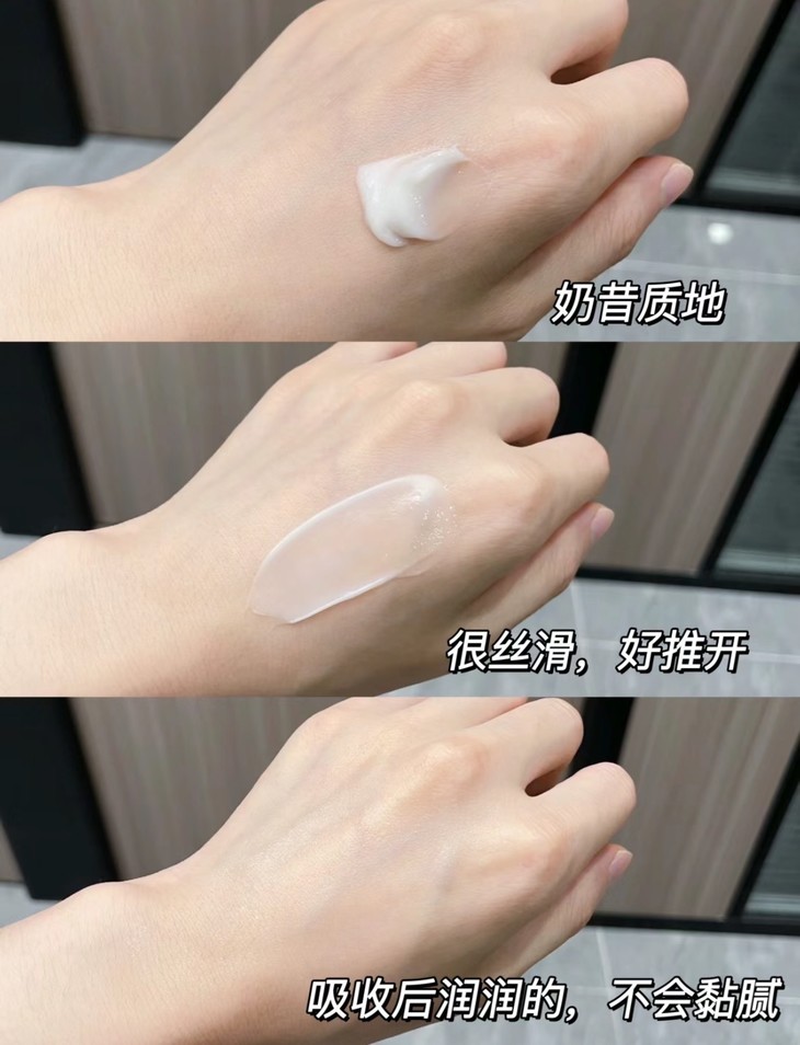 奶白色冰淇淋质地,有淡淡的香味!一抹就化开,不油腻不闷肤,夏季用它正合适,还能保湿肌肤!