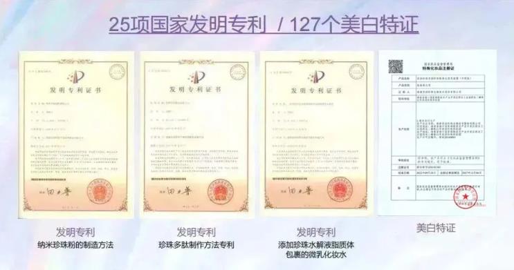 毕竟是几十年的国民老牌,从1994年创办至今——拿到手25项国家发明专利,127个美白特证。