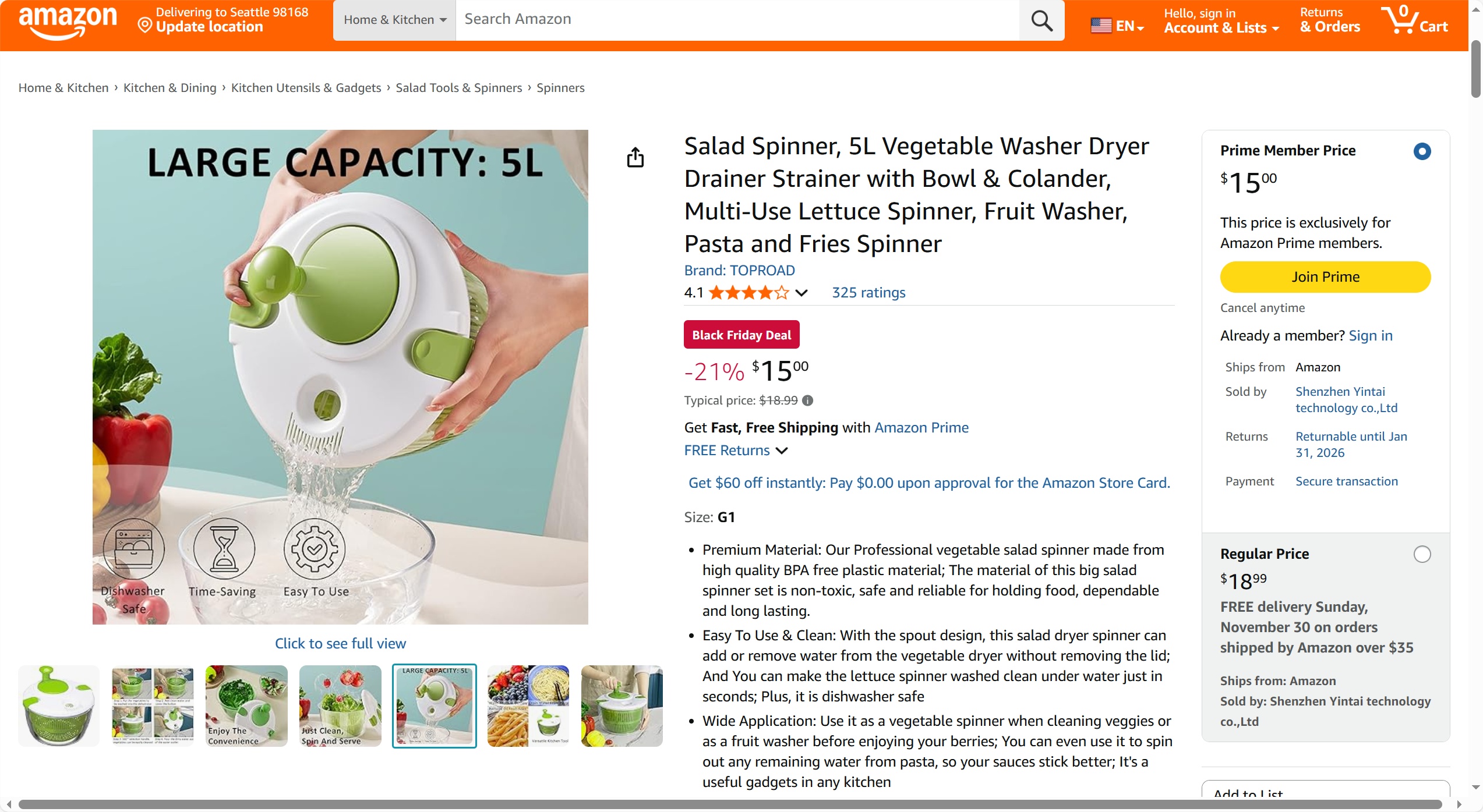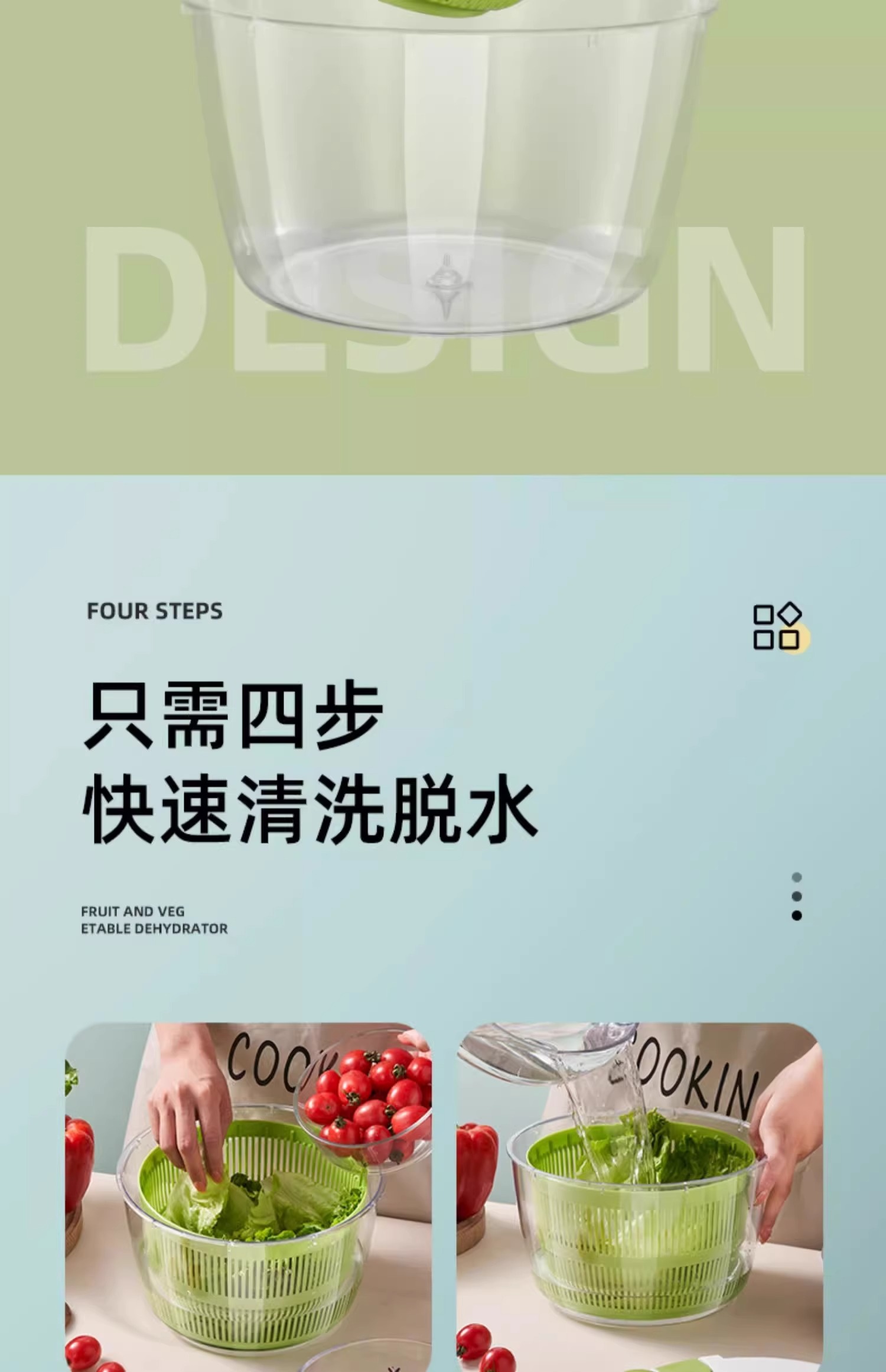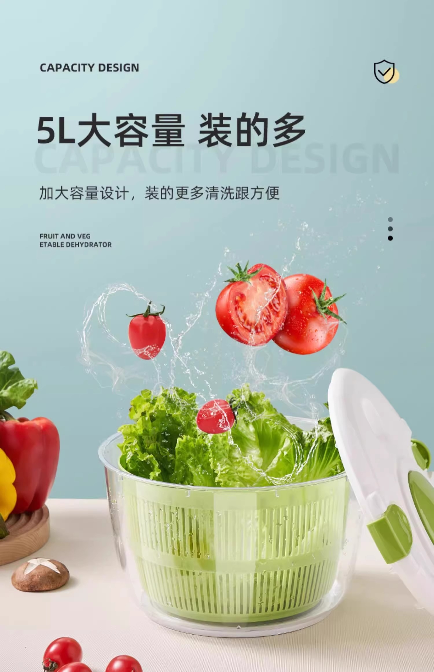 果蔬清洁脱水器 沥水篮5L大容量 沙拉蔬菜脱水机