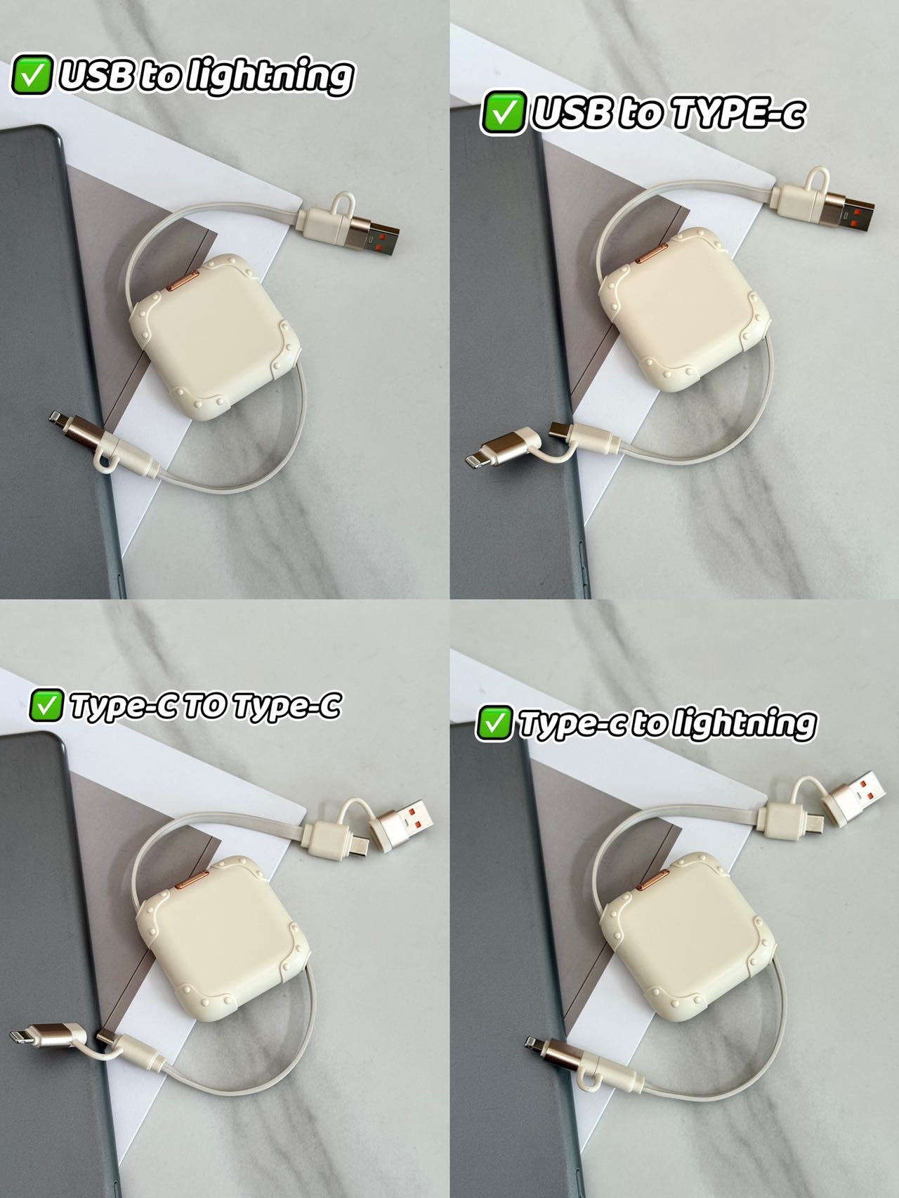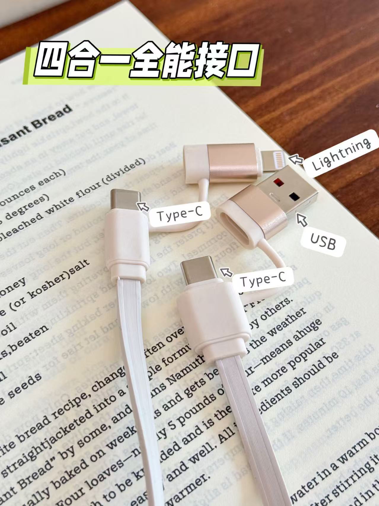 ✅四合一接口,匹配各种手机、笔记本电脑、耳机、音箱等设备 家里设备接口多?有它一根就够了—— USB/Type-C双输入插头,灵活切换 搭配Type-C➕苹果lightning双输出口 相当于: 1️⃣Type-C→Type-C 2️⃣USB-A→Type-C 3️⃣Type-C→Lightning 4️⃣USB-A→Lightning 四线🧵合一 👉🏻Type-C接口支持240W极速快充,苹果15-17、华为/小米/OPPO/VIVO等品牌安卓机型充电速度狂飙,最快30分钟🉑充🈵 👉🏻Lightning接口适配苹果8-14系列机型,PD快充协议加持,充电稳定不弹窗 充电速度直接拉满❗️比普通数据线快3倍都不止,喝杯咖啡的功夫,设备电量全补满❗️ 出差赶时间、通勤路上、居家刷剧、办公赶方案,随时快速满血复活🔋 一根顶四根,旅行时不用纠结带哪根,出差时同事借线也能轻松应对❗️