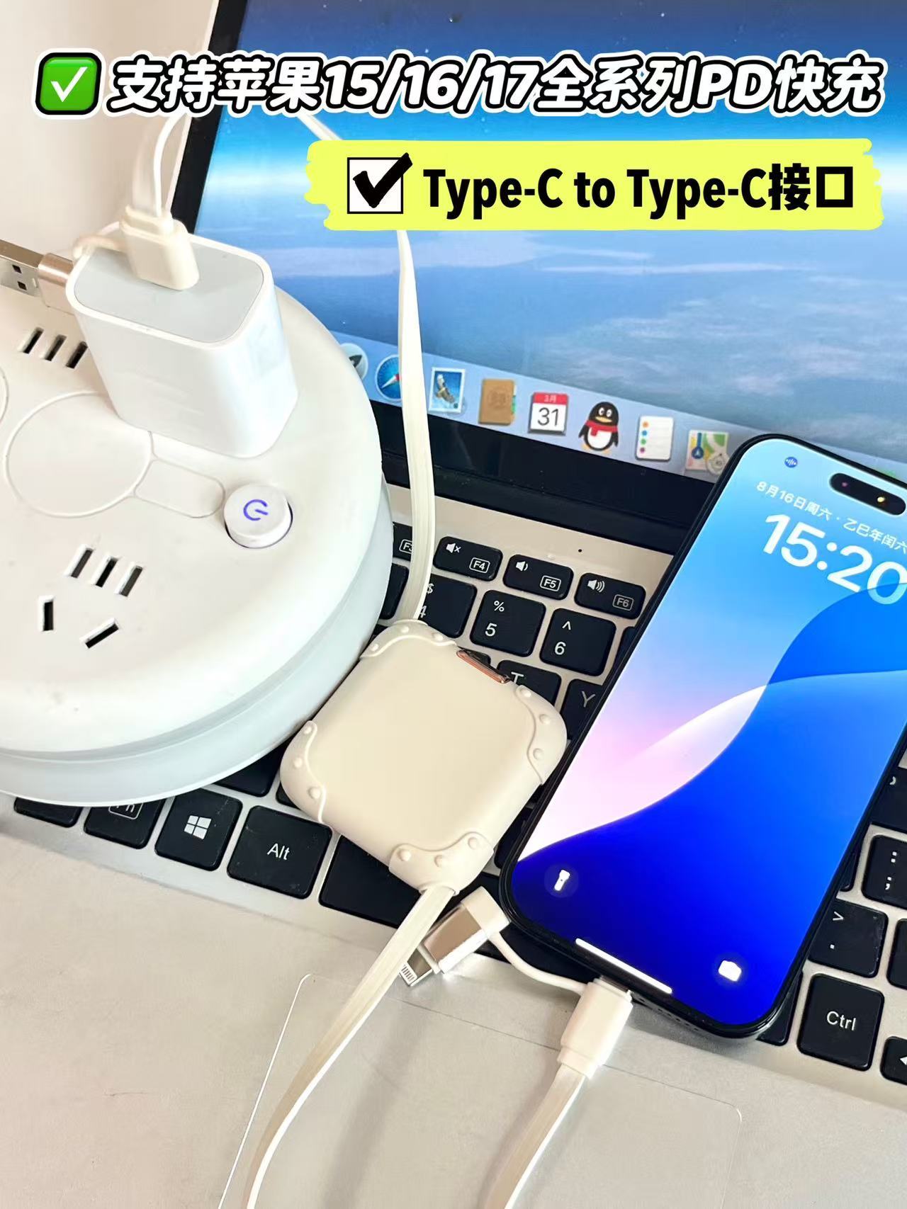 这根线直接把“快充兼容性”拉满👇 🔹Type-C→Type-C:240Wmax超猛输出,极速能量补给新标准⚡️幻响行李箱数据线搭载240W大功率快充技术,突破传统数据线的充电效率瓶颈❗️同时向下兼容华为/小米等品牌120W/100W/66W/40W/22.5W超级快充,满电快,不等待笔记本、旗舰机瞬间满血 🔻Type-C支持苹果15/16/17系列PD快充 🔻支持华为/小米/OPPO/VIVO等品牌手机/平板快充协议 🔻适配笔记本电脑充电(需搭配45W以上适配器)、平板/耳机等设备,满足移动办公与日常使用的多元需求❗️ 🔹Type-C→Lightning:支持苹果8-14系列pd快充,高效补能,iPhone/iPad充电稳又快 🔹USB→Type-C:100Wmax超猛输出,同时向下兼容华为/小米等品牌66W/40W/22.5W超级快充,满电快,不等待笔记本、旗舰机瞬间满血,给平板、安卓设备快充毫无压力 🔹USB→Lightning:老苹果设备、小数码也能稳稳充电 四种连接全覆盖,新老设备一根通吃,再也不用备一堆线啦~