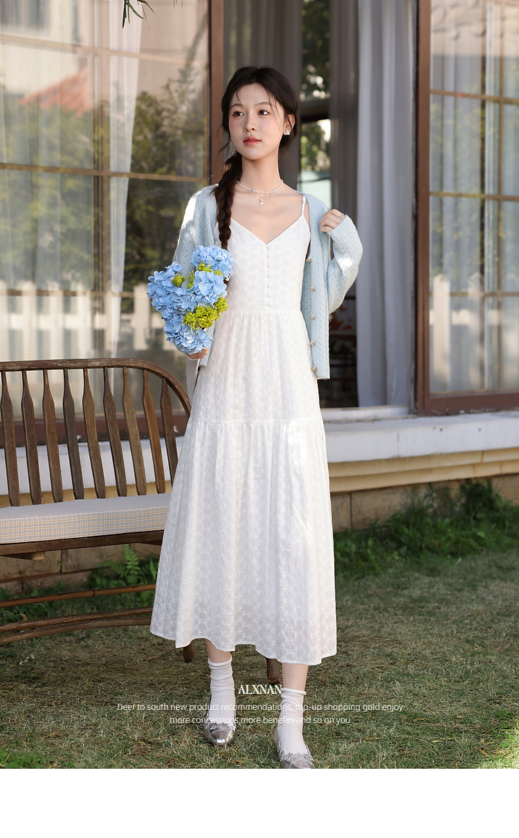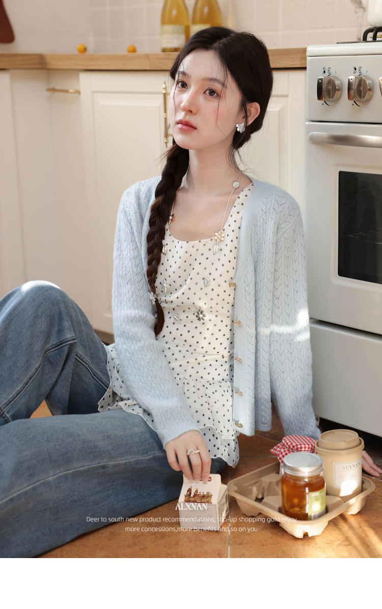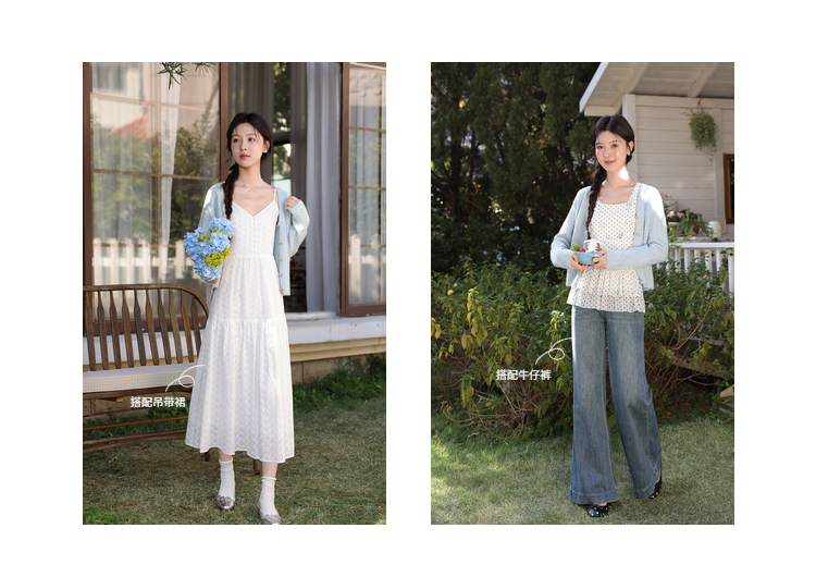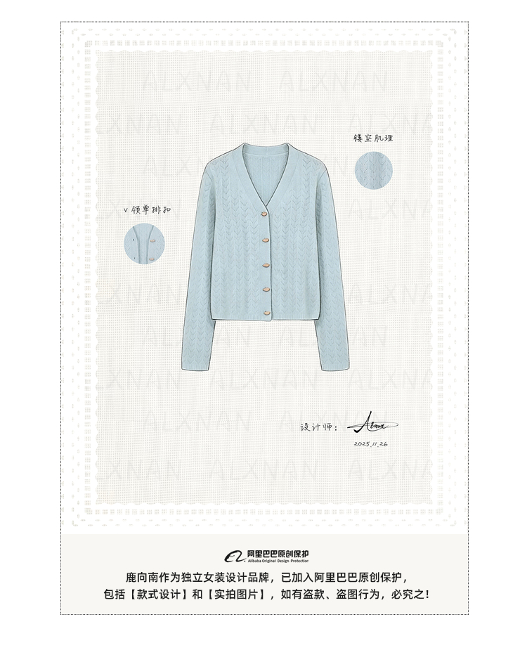 鹿向南「蓝岛晴空」温柔风蓝色针织开衫女装春季新款叠穿长袖上衣