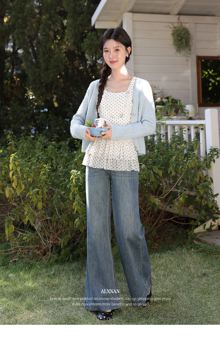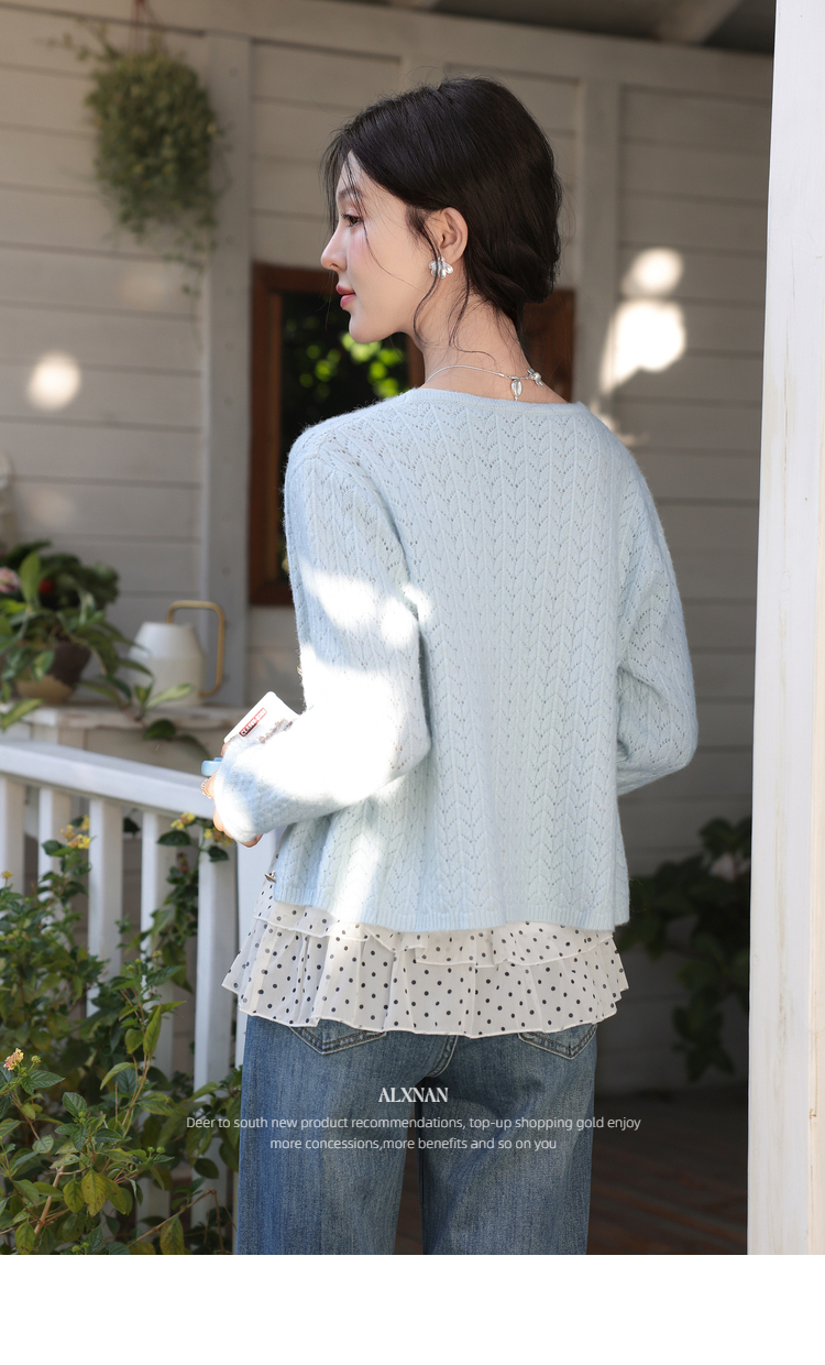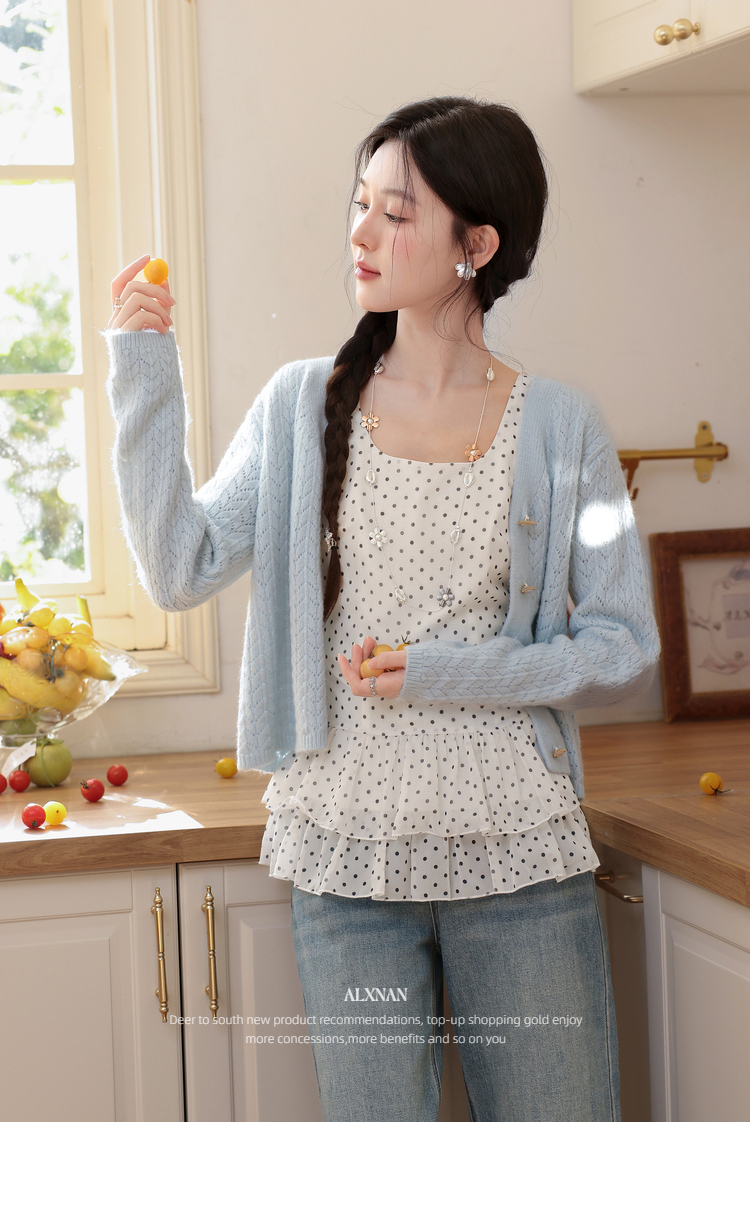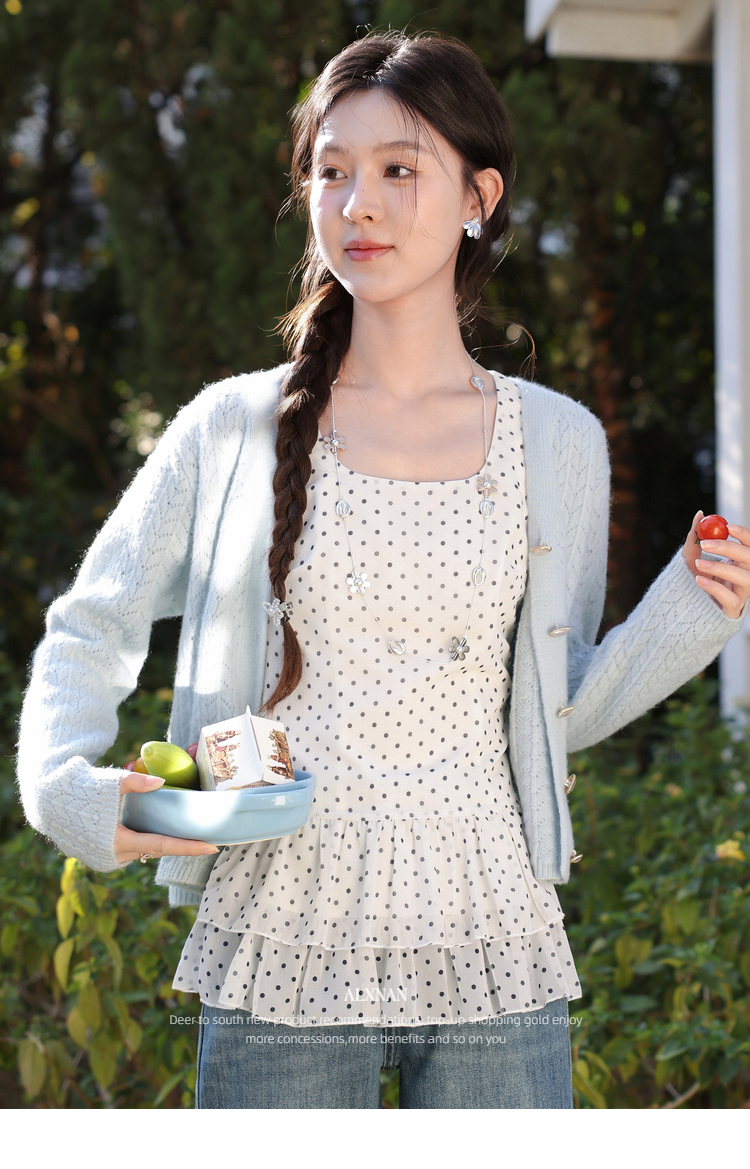 鹿向南「蓝岛晴空」温柔风蓝色针织开衫女装春季新款叠穿长袖上衣