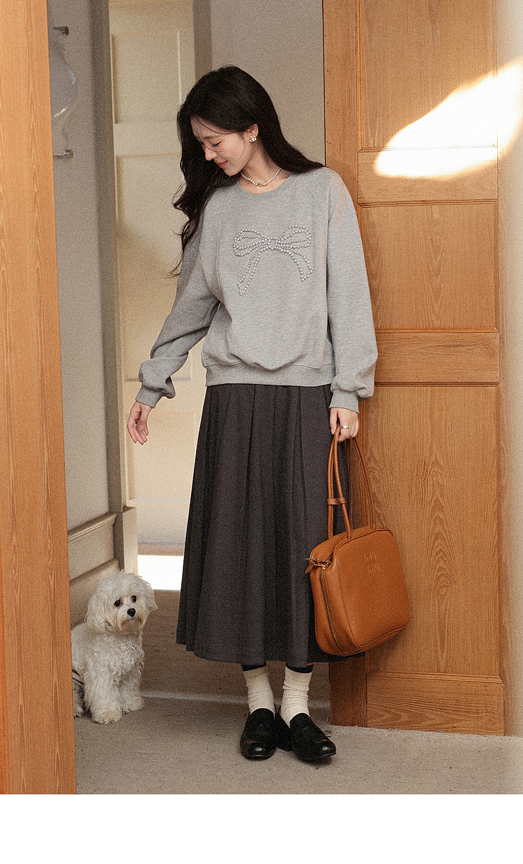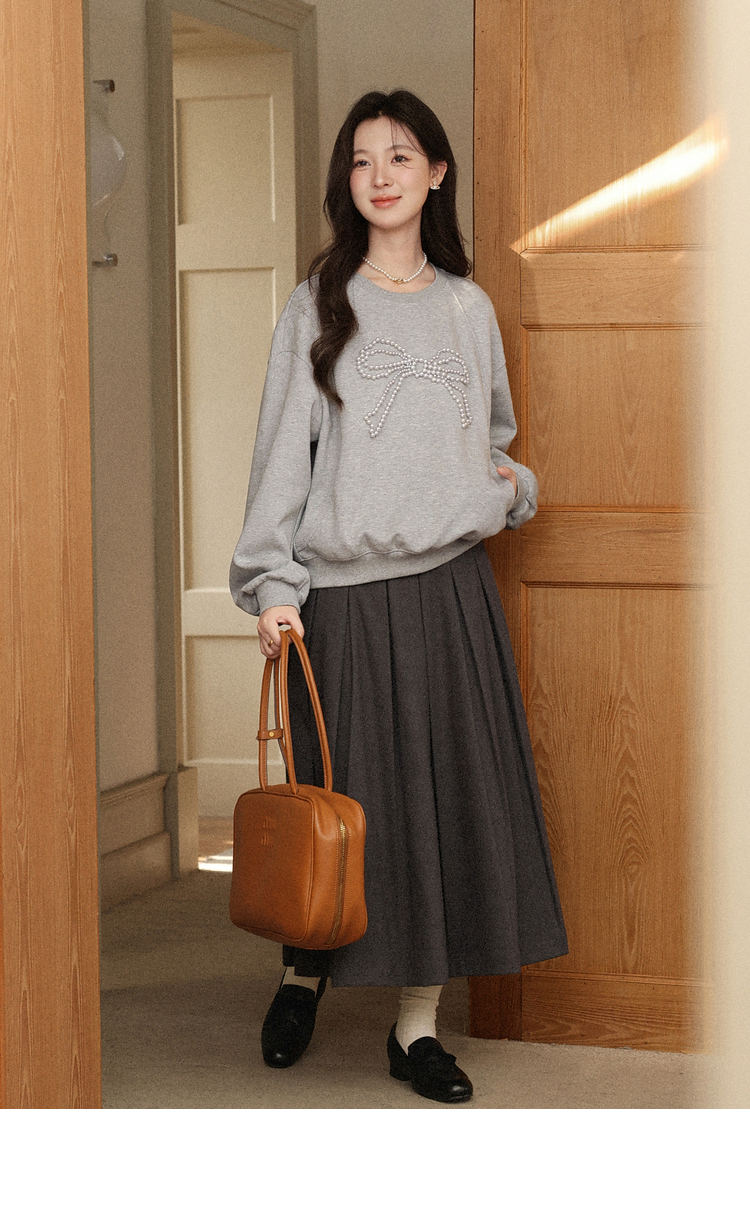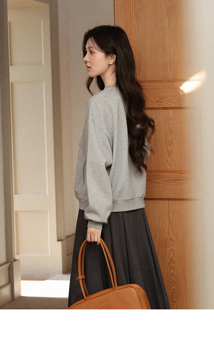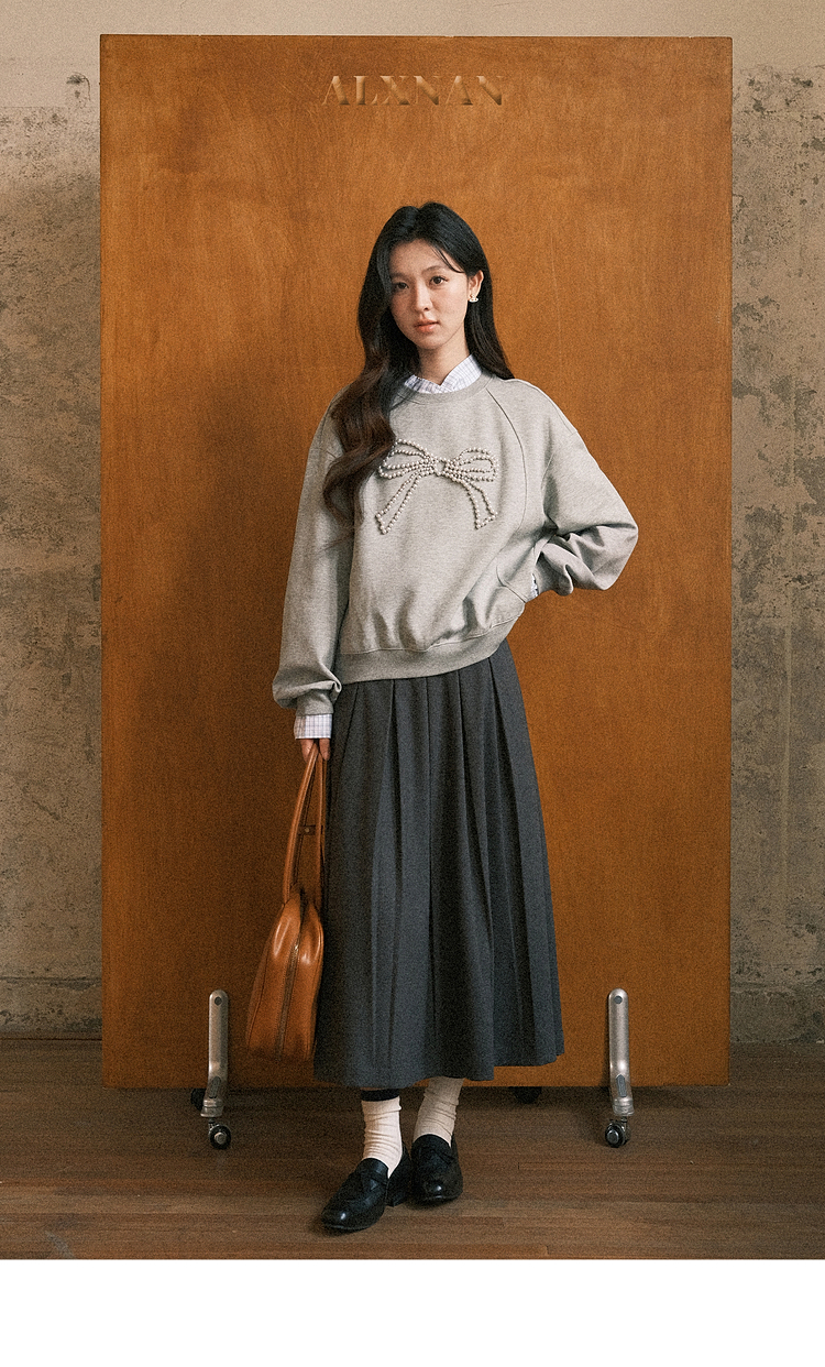 【6折秒杀】鹿向南「盐渍樱花糖」灰色蝴蝶结圆领长袖卫衣宽松显瘦上衣女早秋