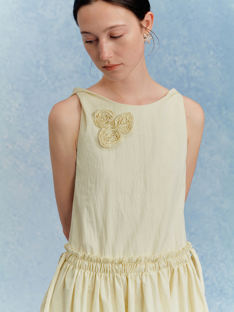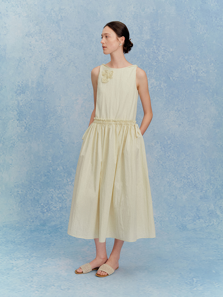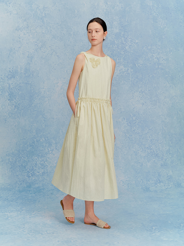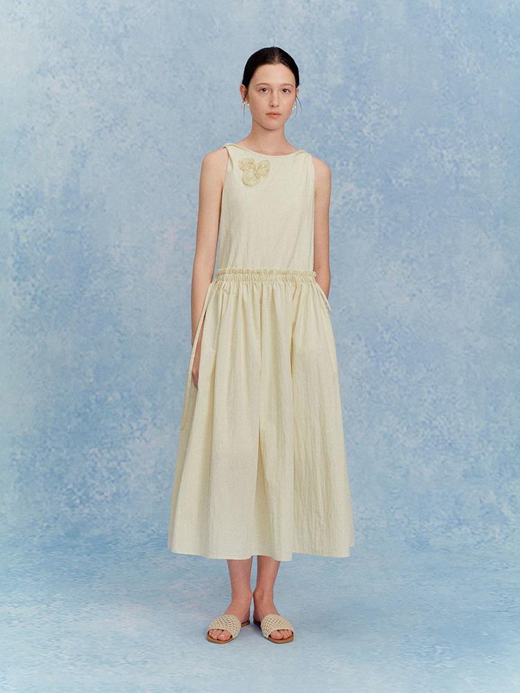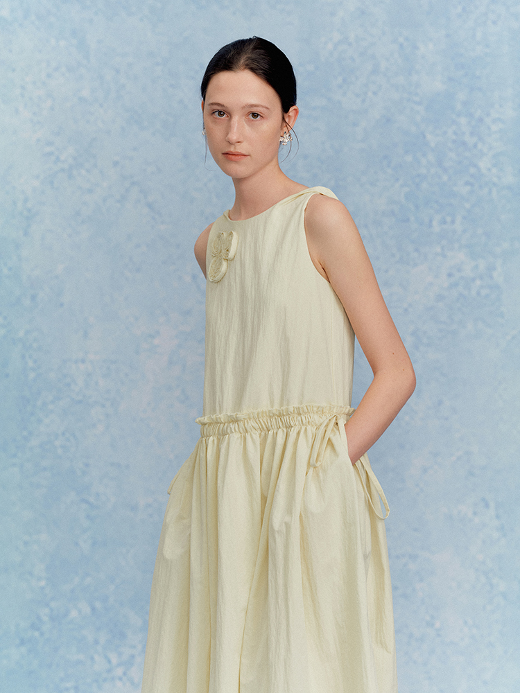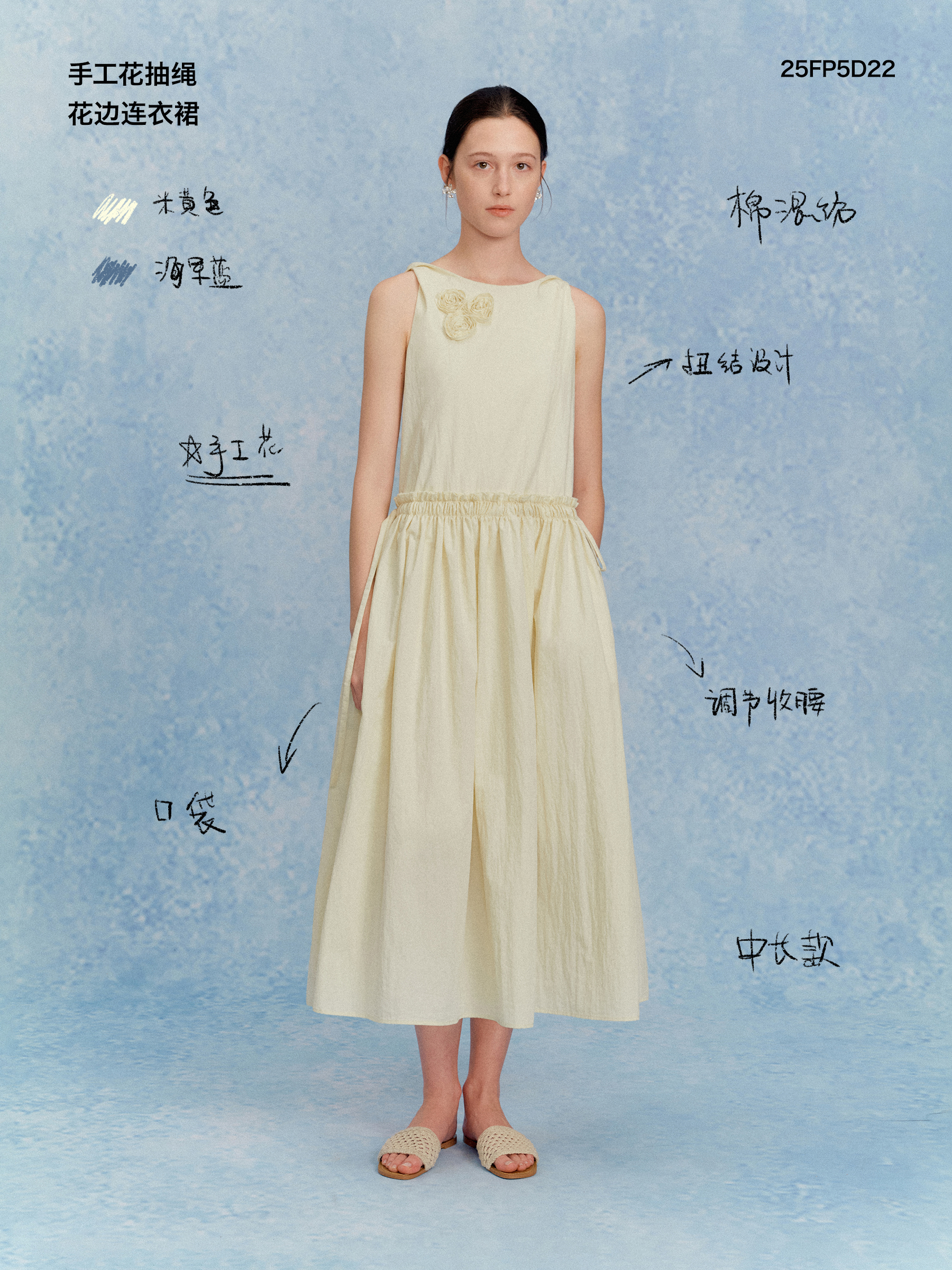 ForPoem 现货 25/SS原创设计纽结无袖手工花抽绳花边连衣长裙