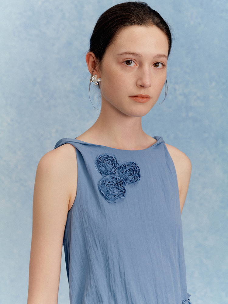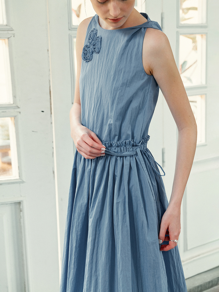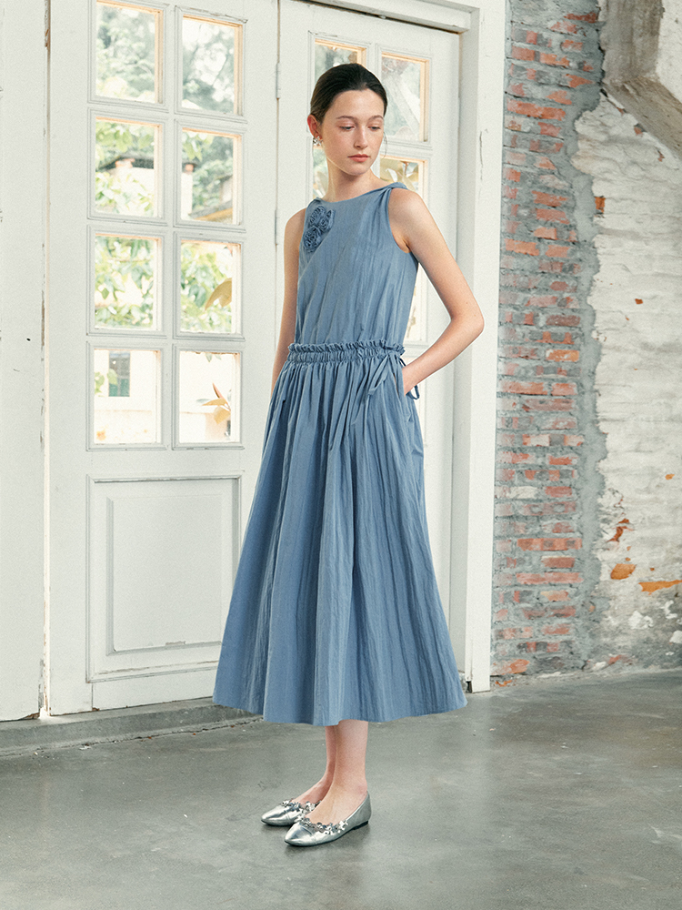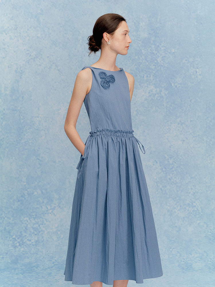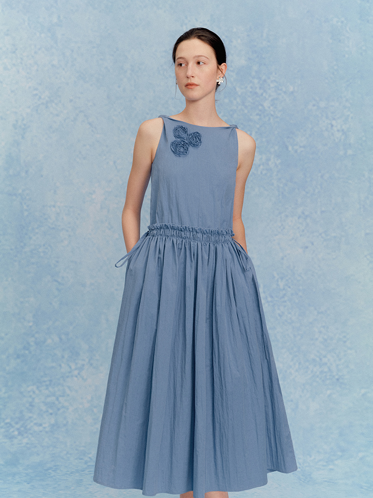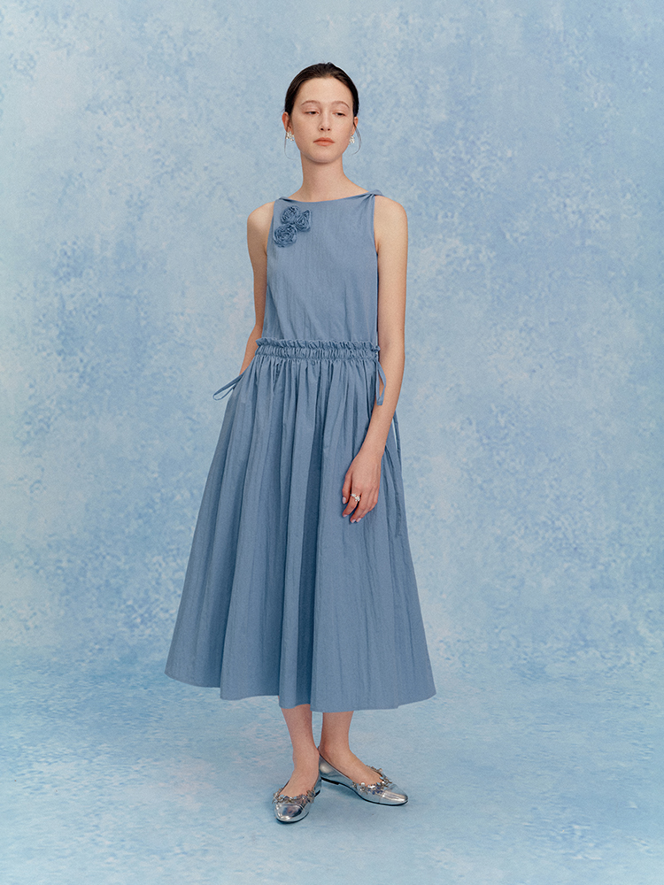 ForPoem 现货 25/SS原创设计纽结无袖手工花抽绳花边连衣长裙