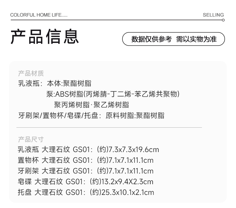 大理石纹 GS01 皂碟/托盘/漱口杯/牙刷架/乳液瓶