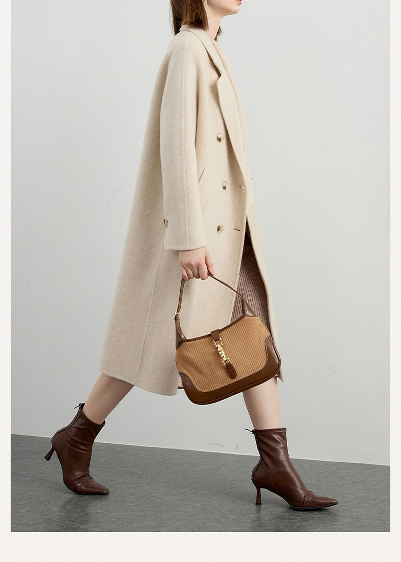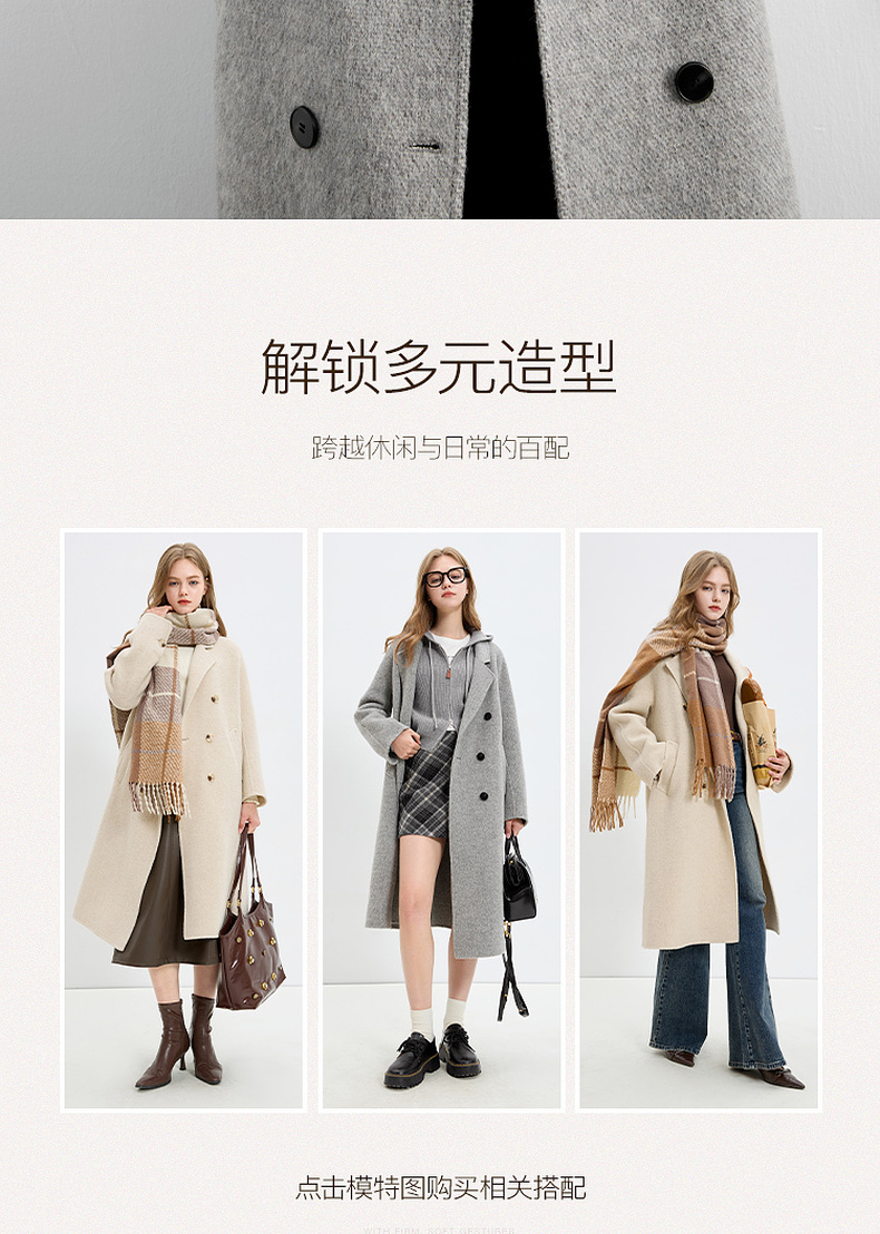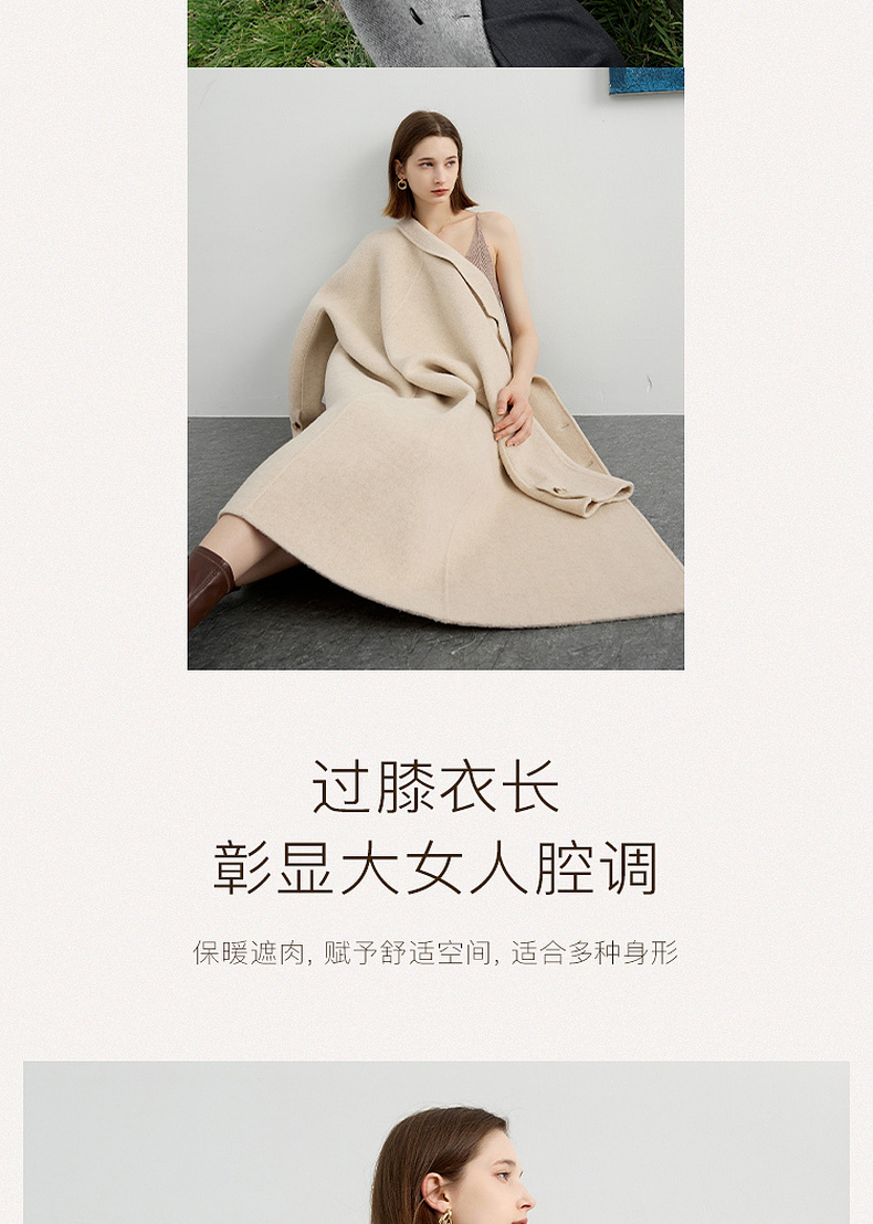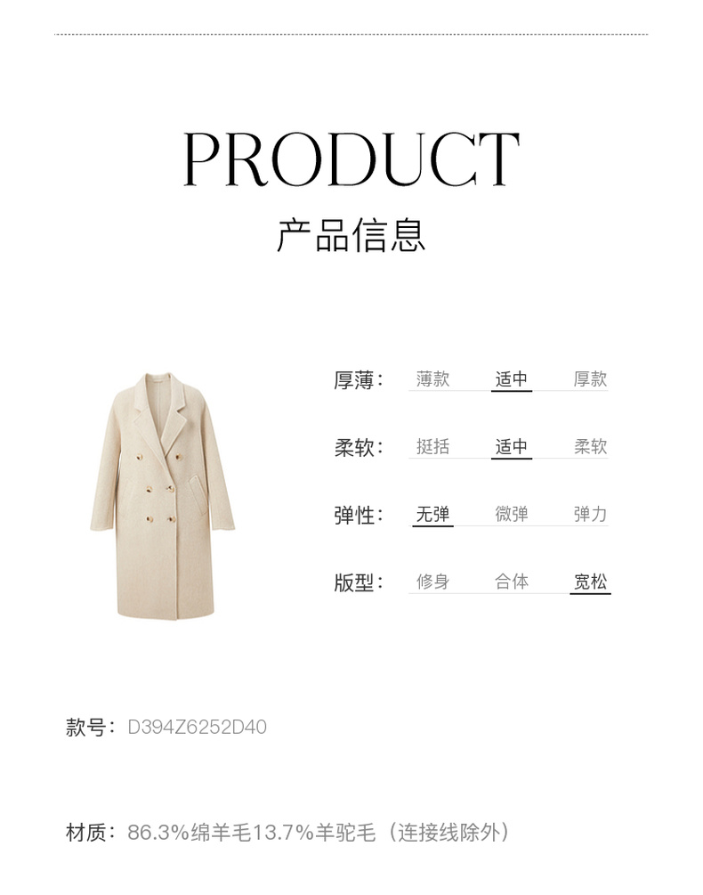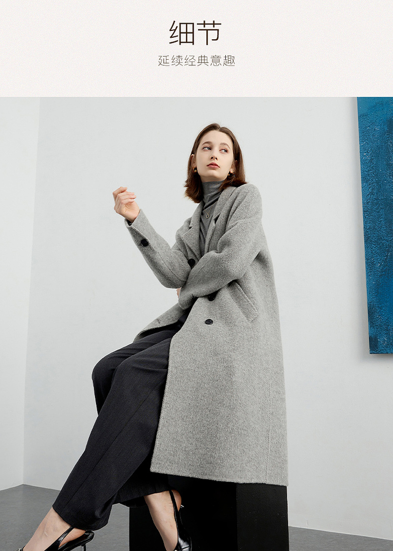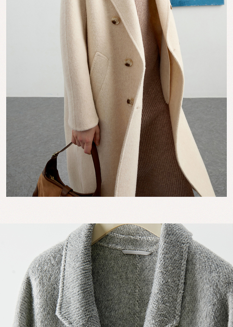 三彩2024冬季新款静奢风阿尔巴卡双面呢毛呢大衣外套长款女M