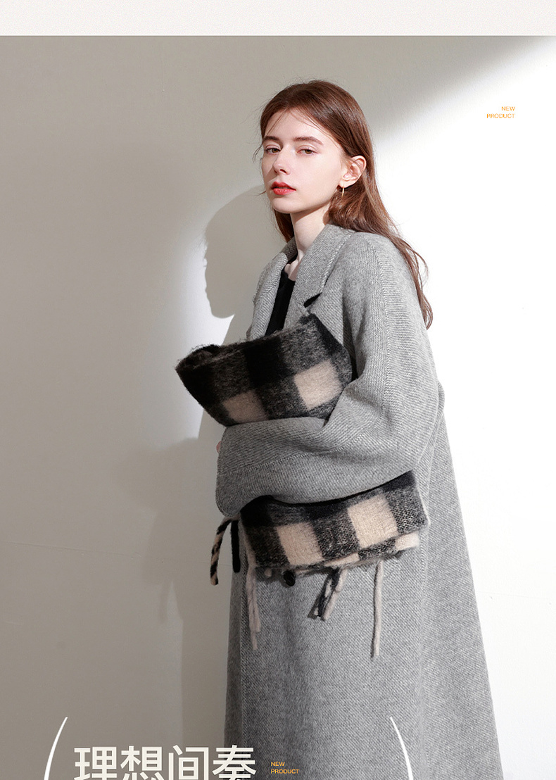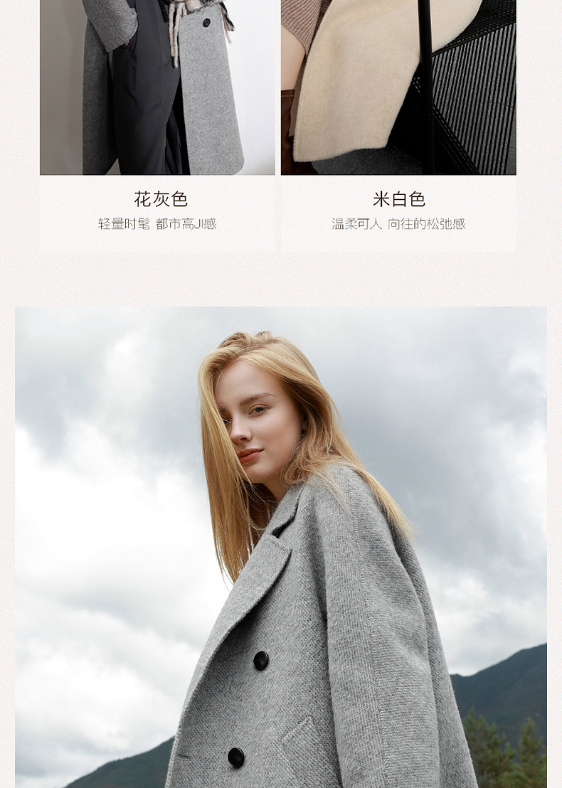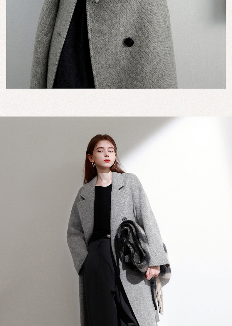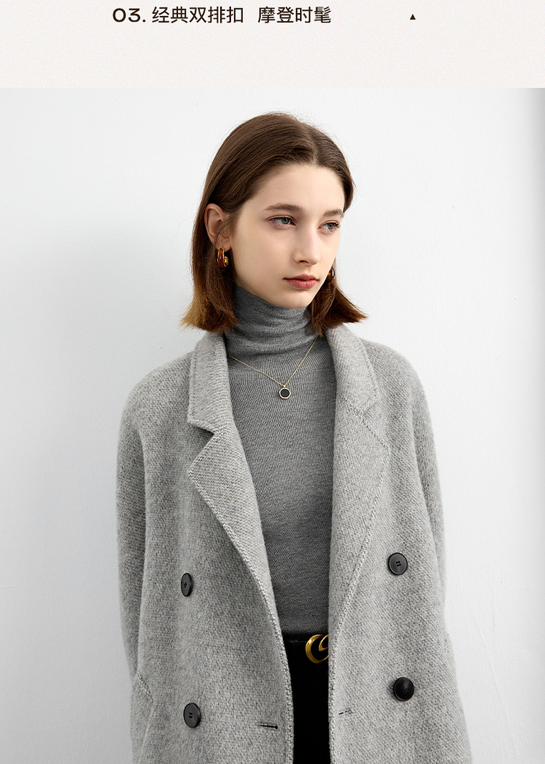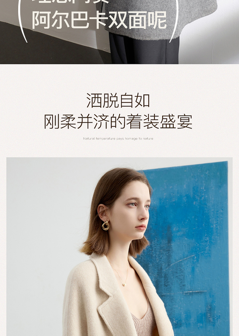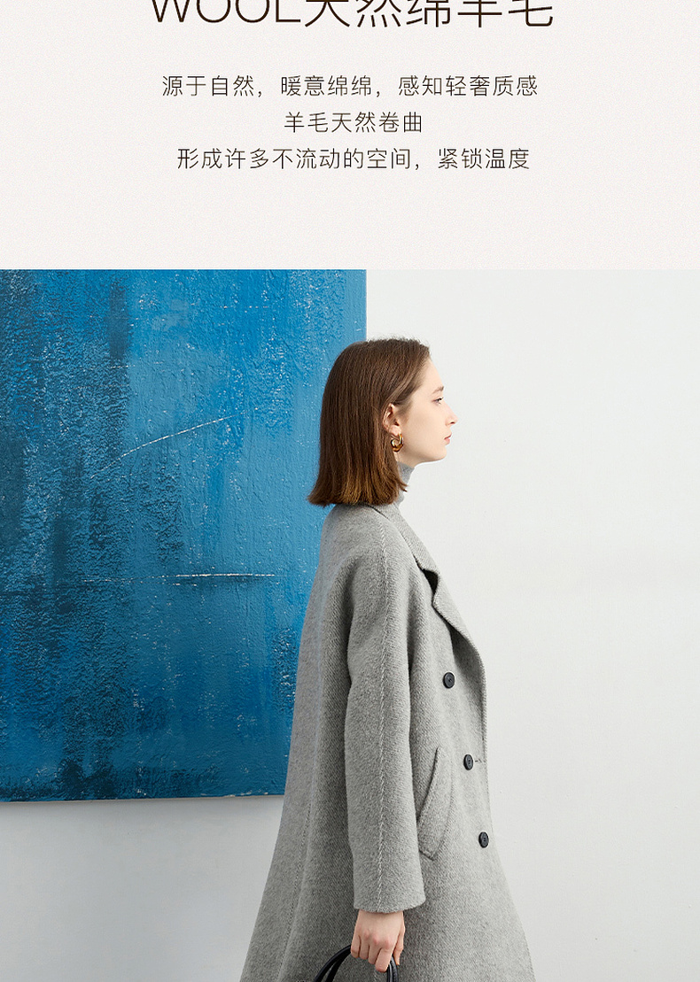 三彩2024冬季新款静奢风阿尔巴卡双面呢毛呢大衣外套长款女M
