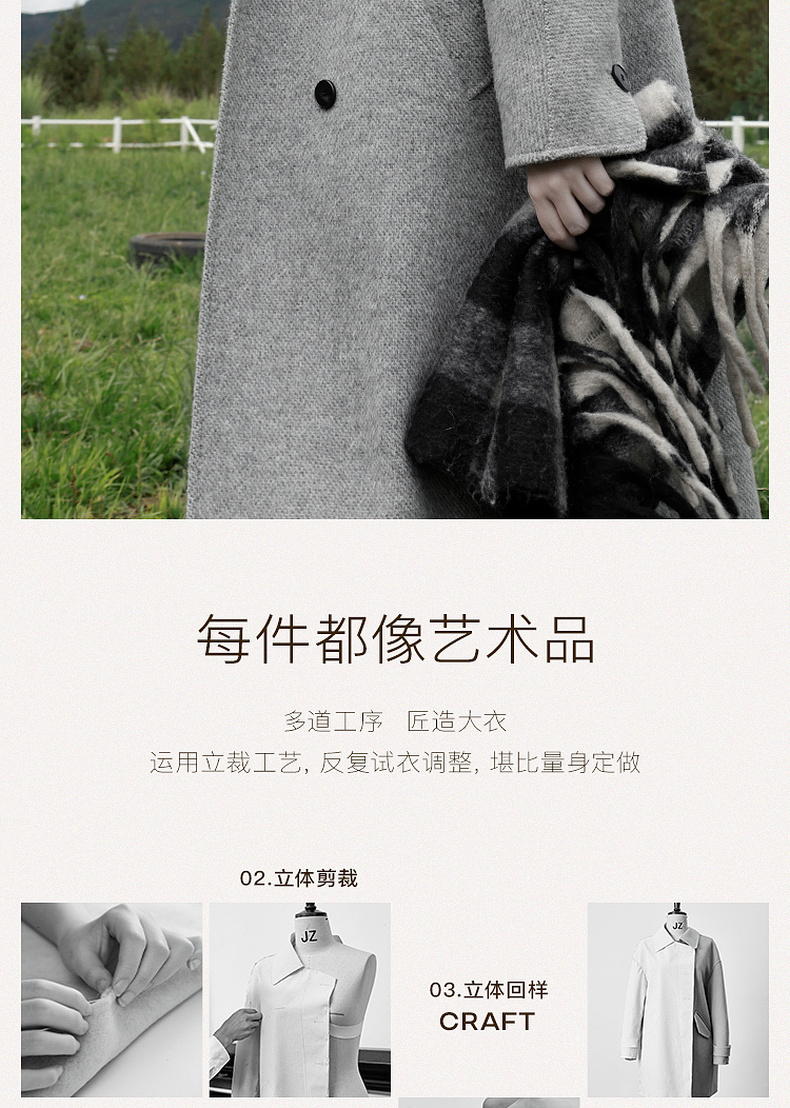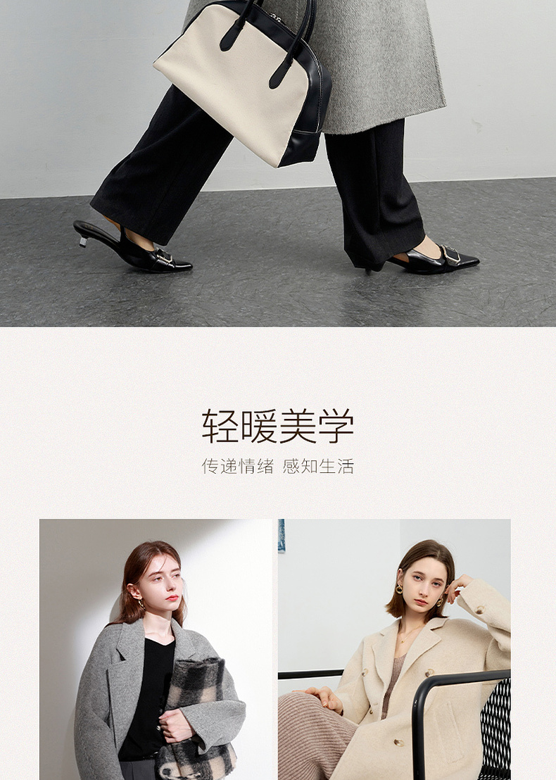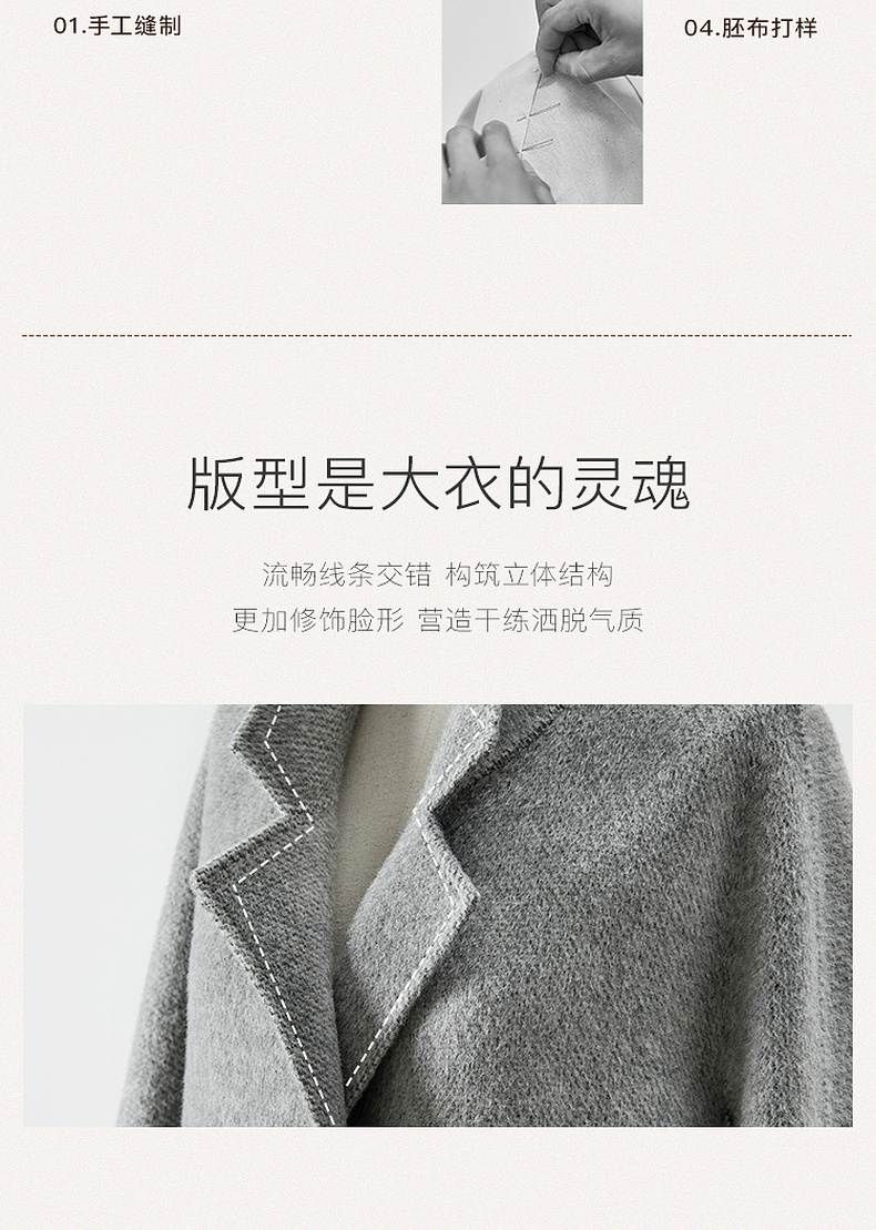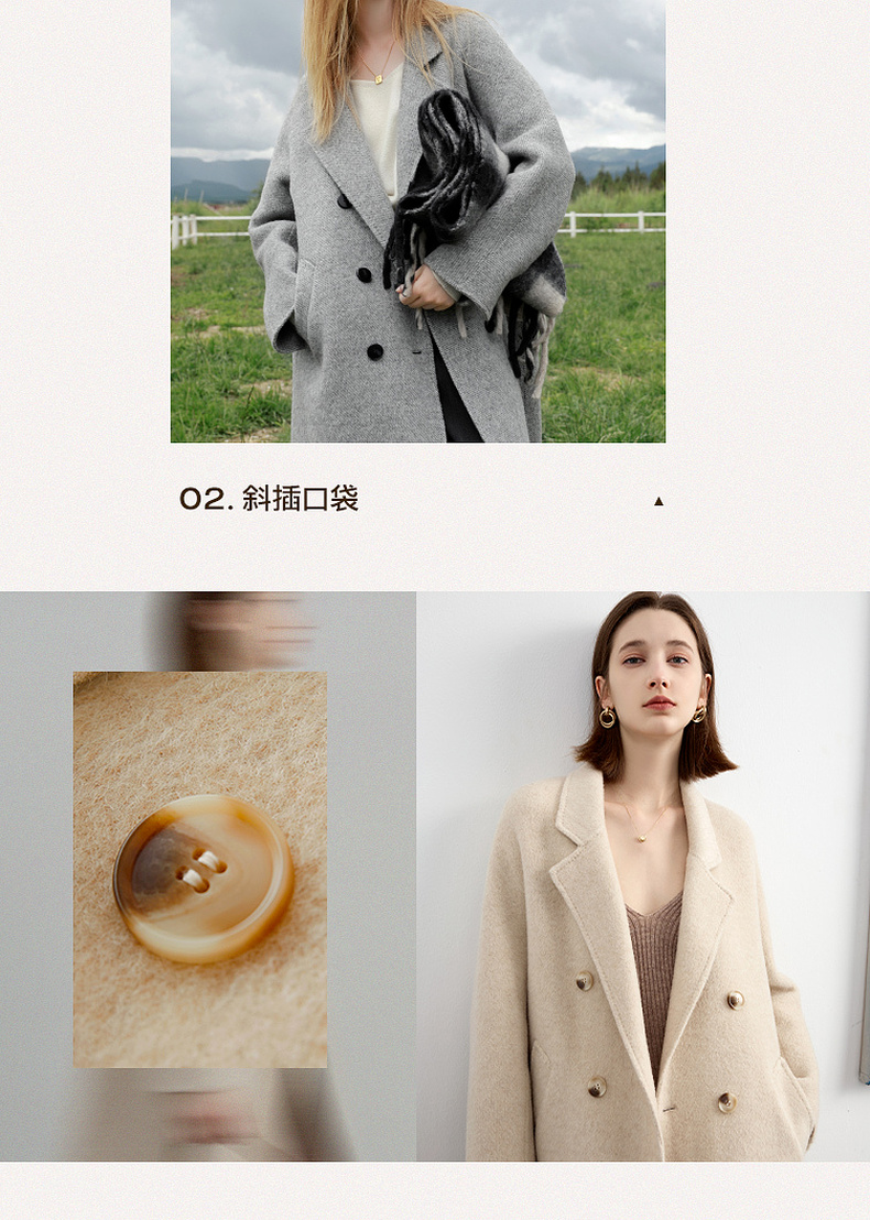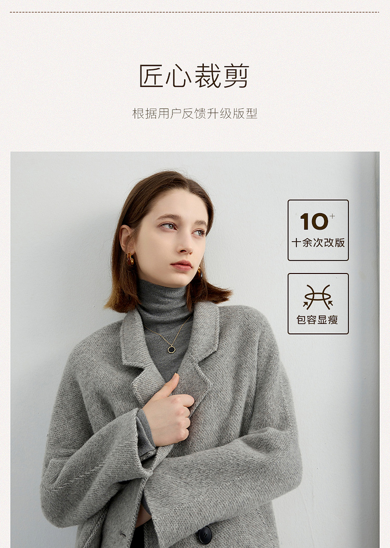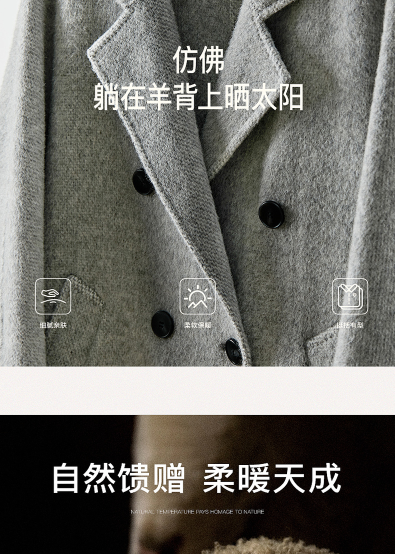 三彩2024冬季新款静奢风阿尔巴卡双面呢毛呢大衣外套长款女M