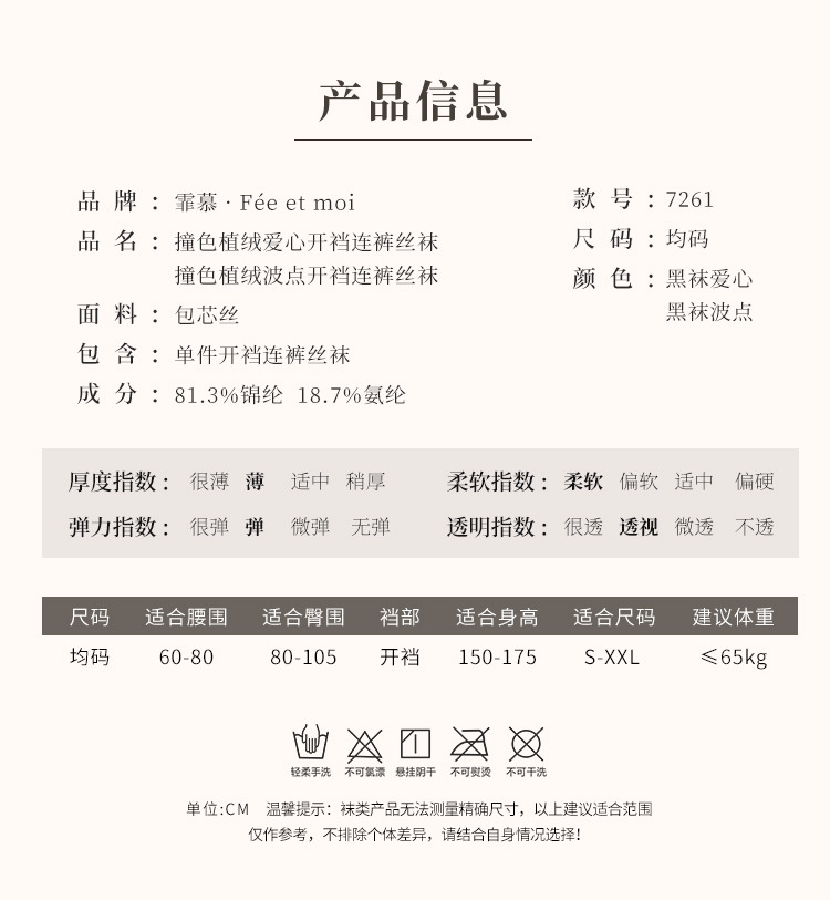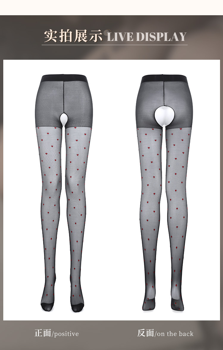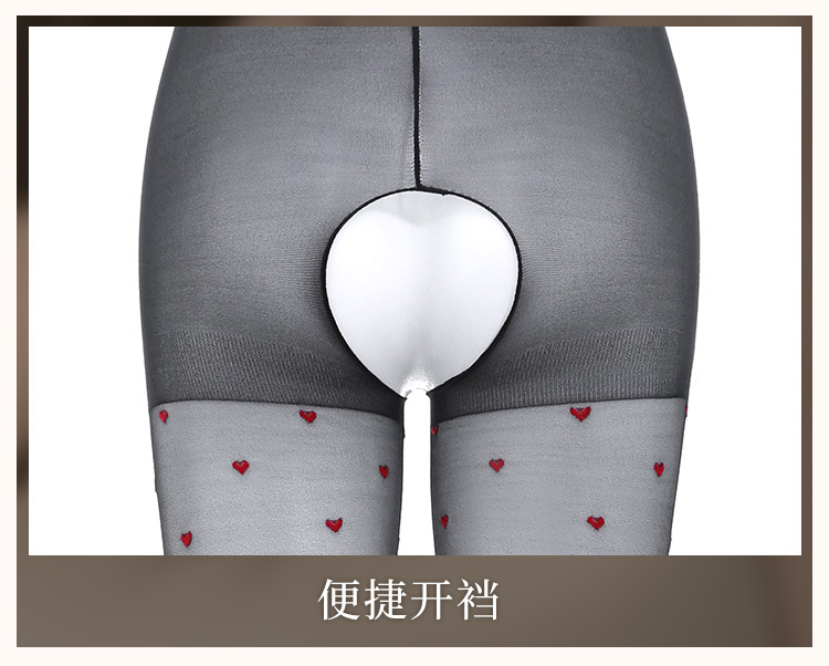 【霏慕】撞色植绒爱心开裆连裤丝袜7261情趣性感透肤黑丝穿搭配