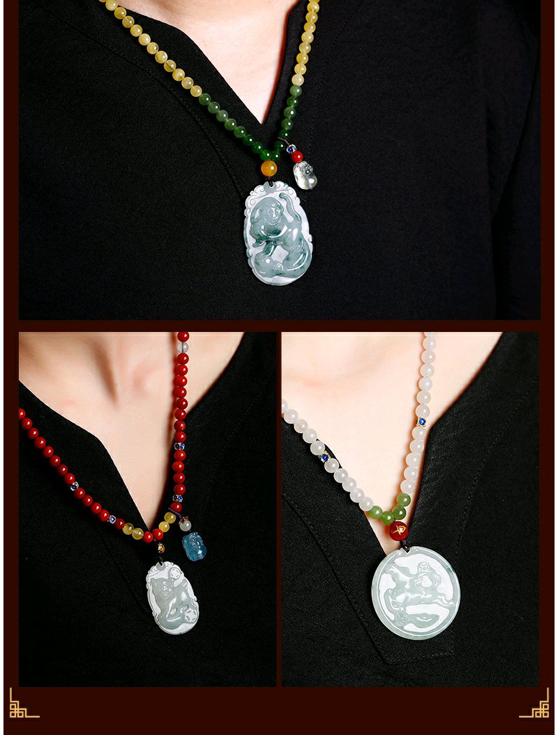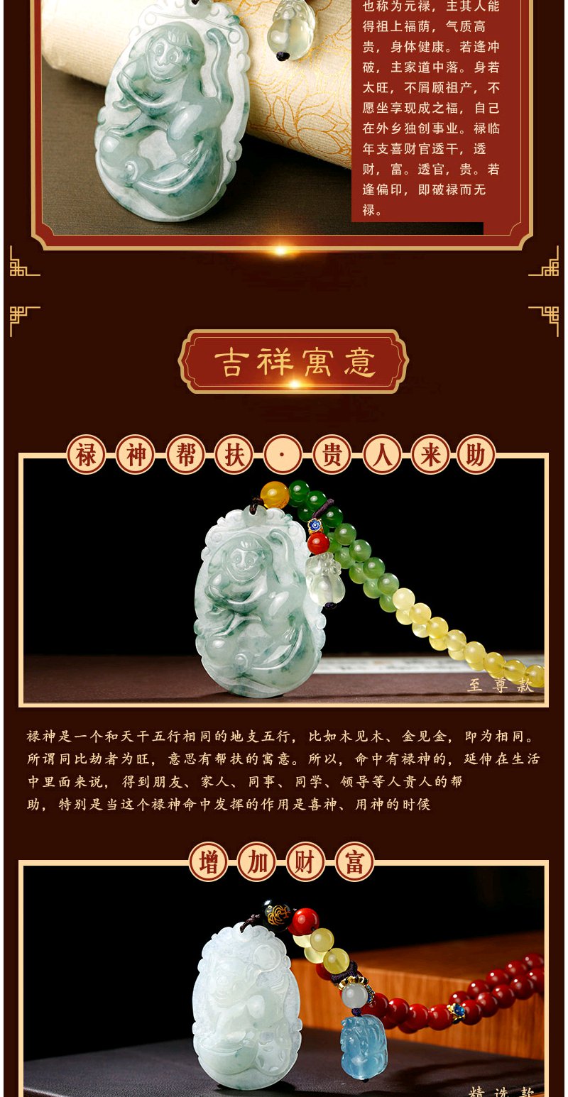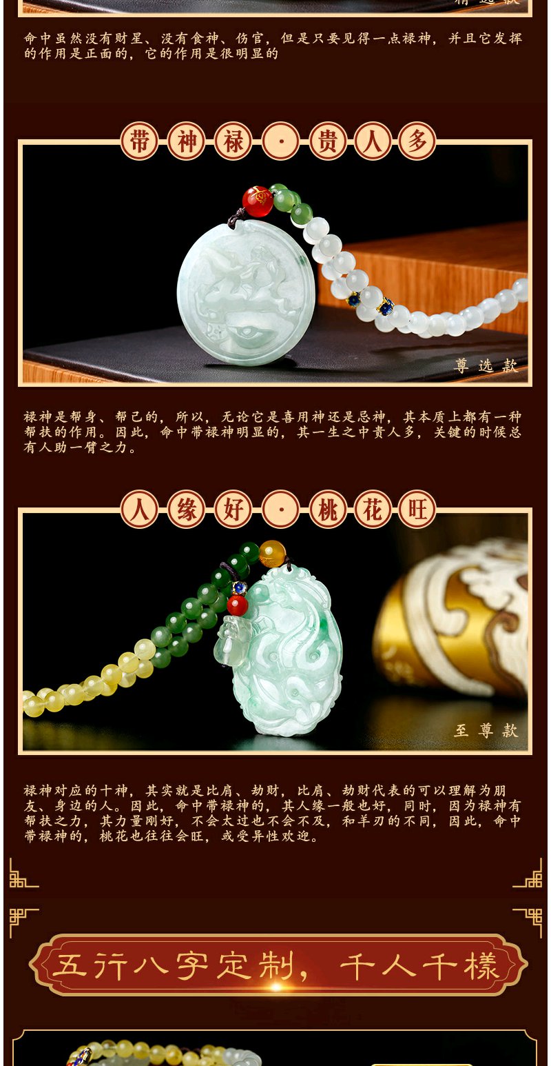 慈元阁禄神长生五行生辰定制翡翠吊坠招财旺运平安玉牌项链