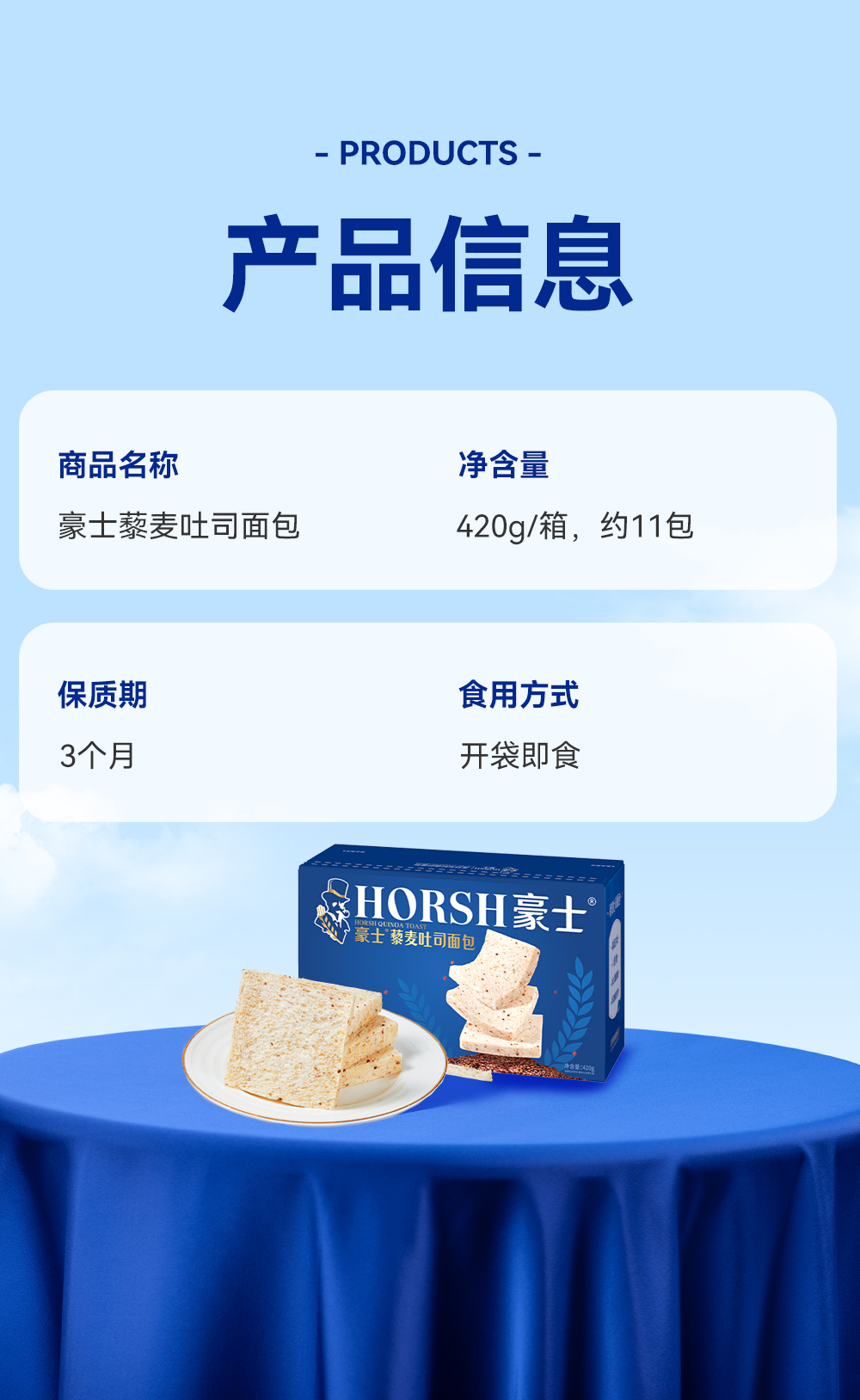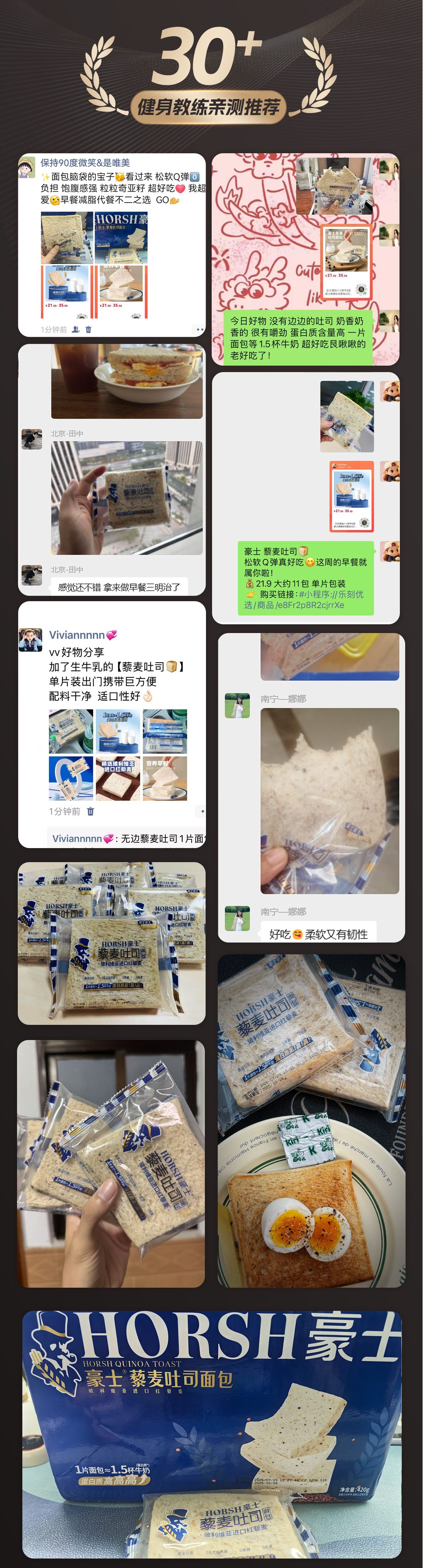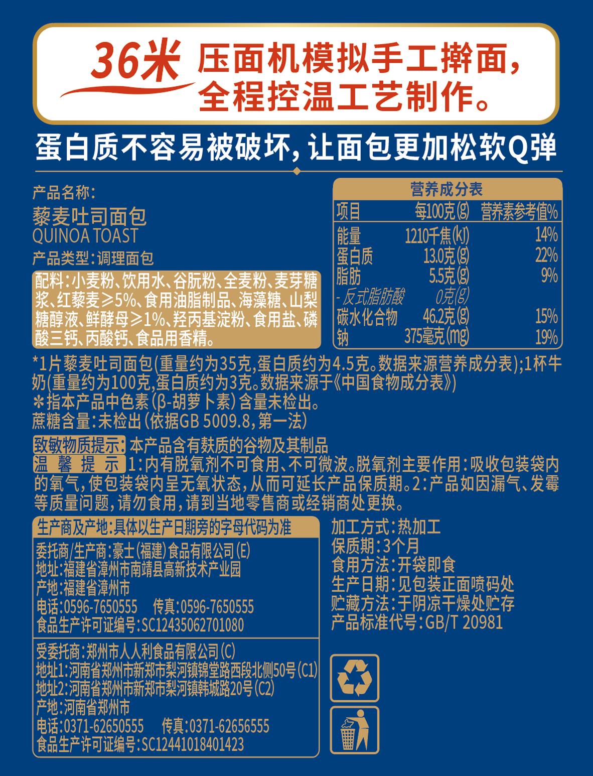 【1片面包≈1.5杯牛奶】豪士藜麦吐司面包420g*箱