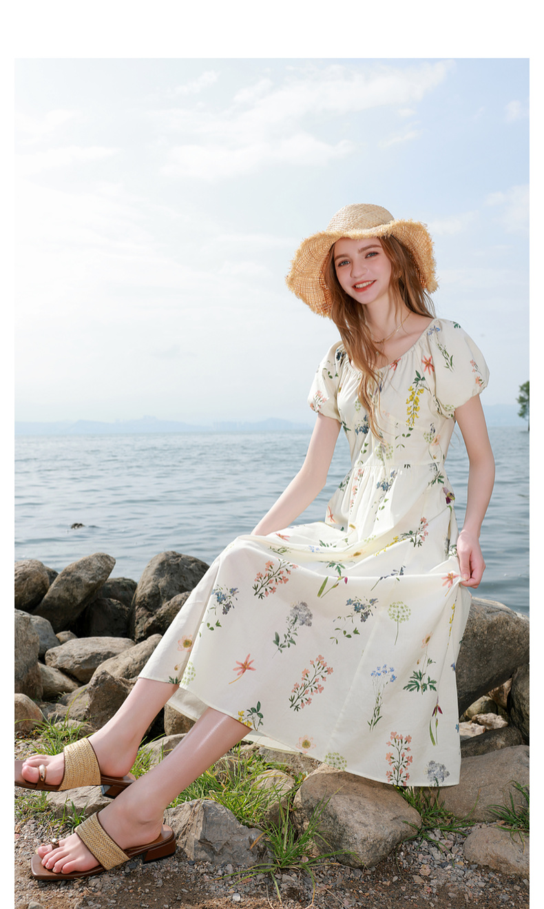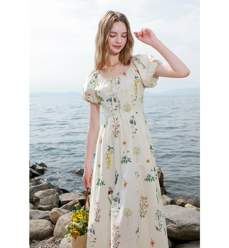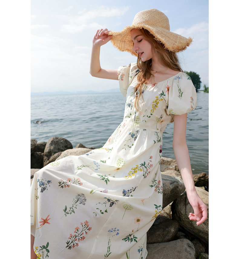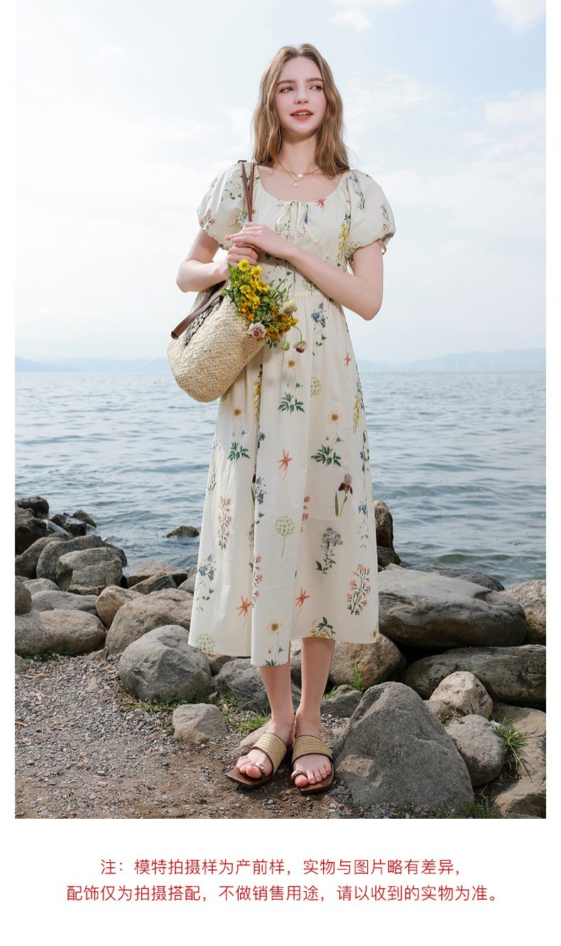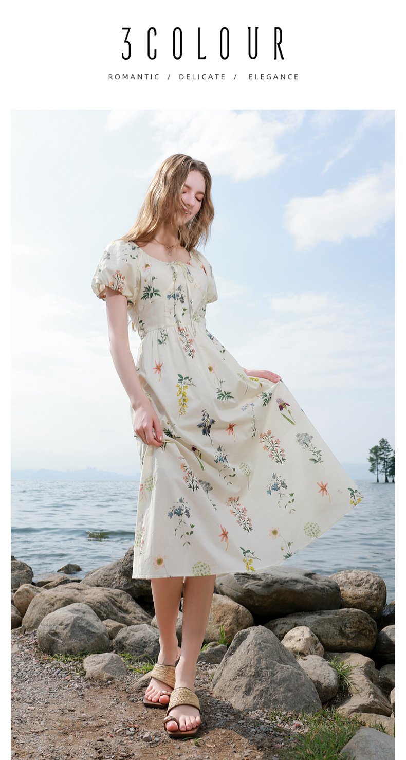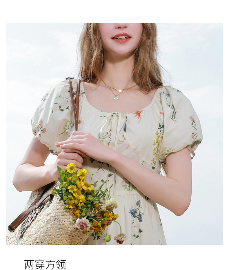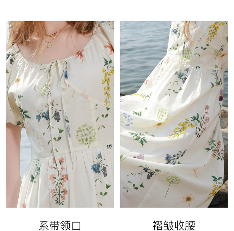 【100棉】三彩2025秋季新款法式方领连衣裙高腰A字大摆长裙M