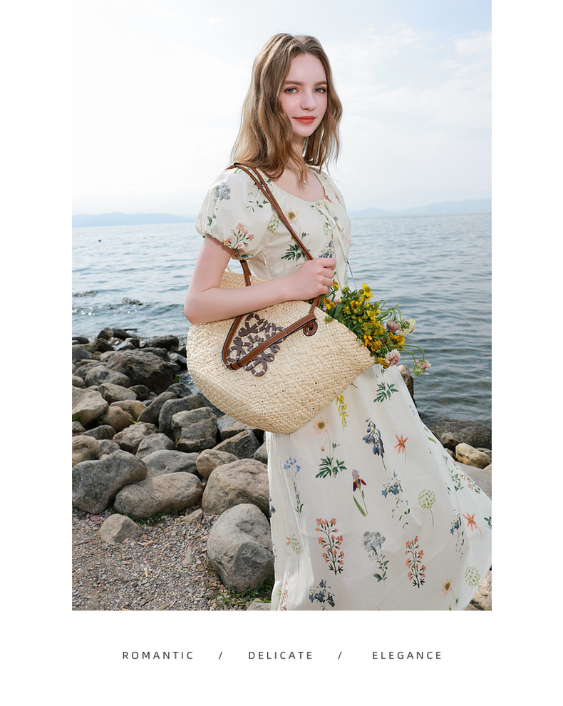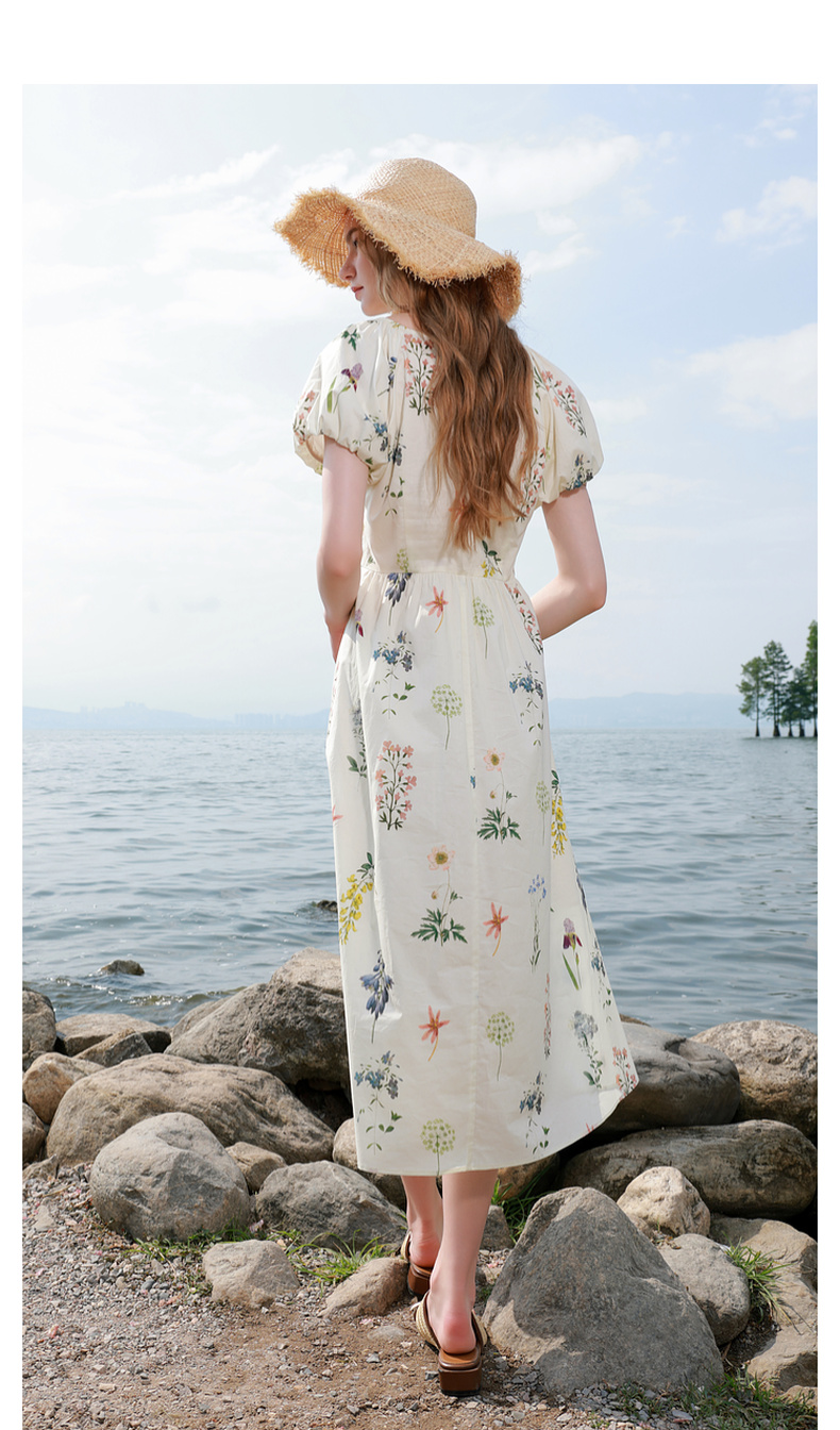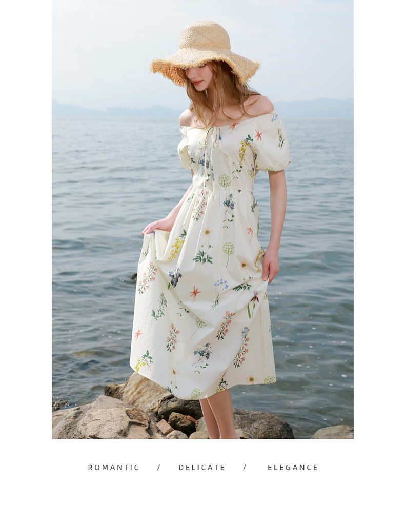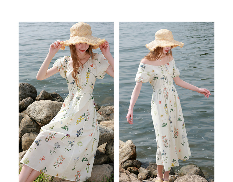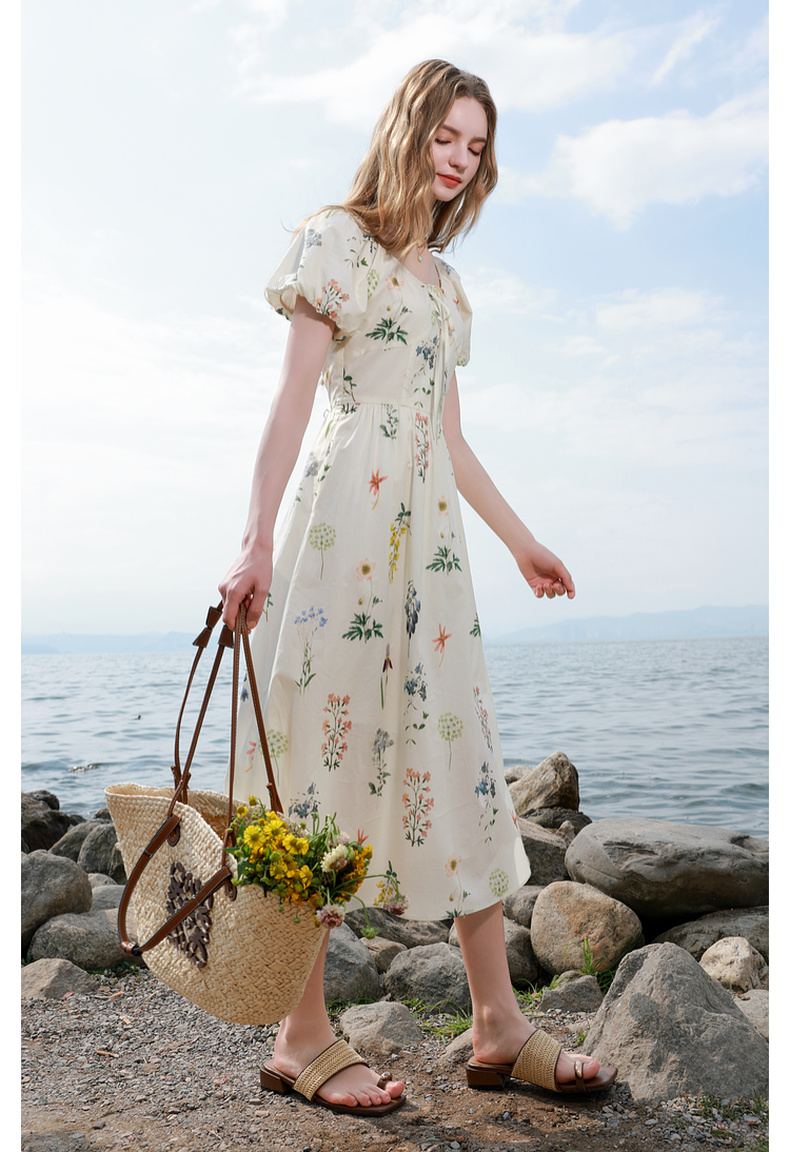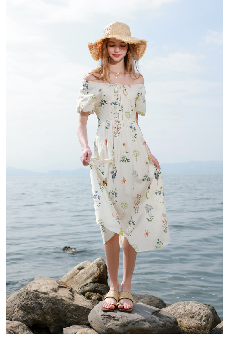 【100棉】三彩2025秋季新款法式方领连衣裙高腰A字大摆长裙M