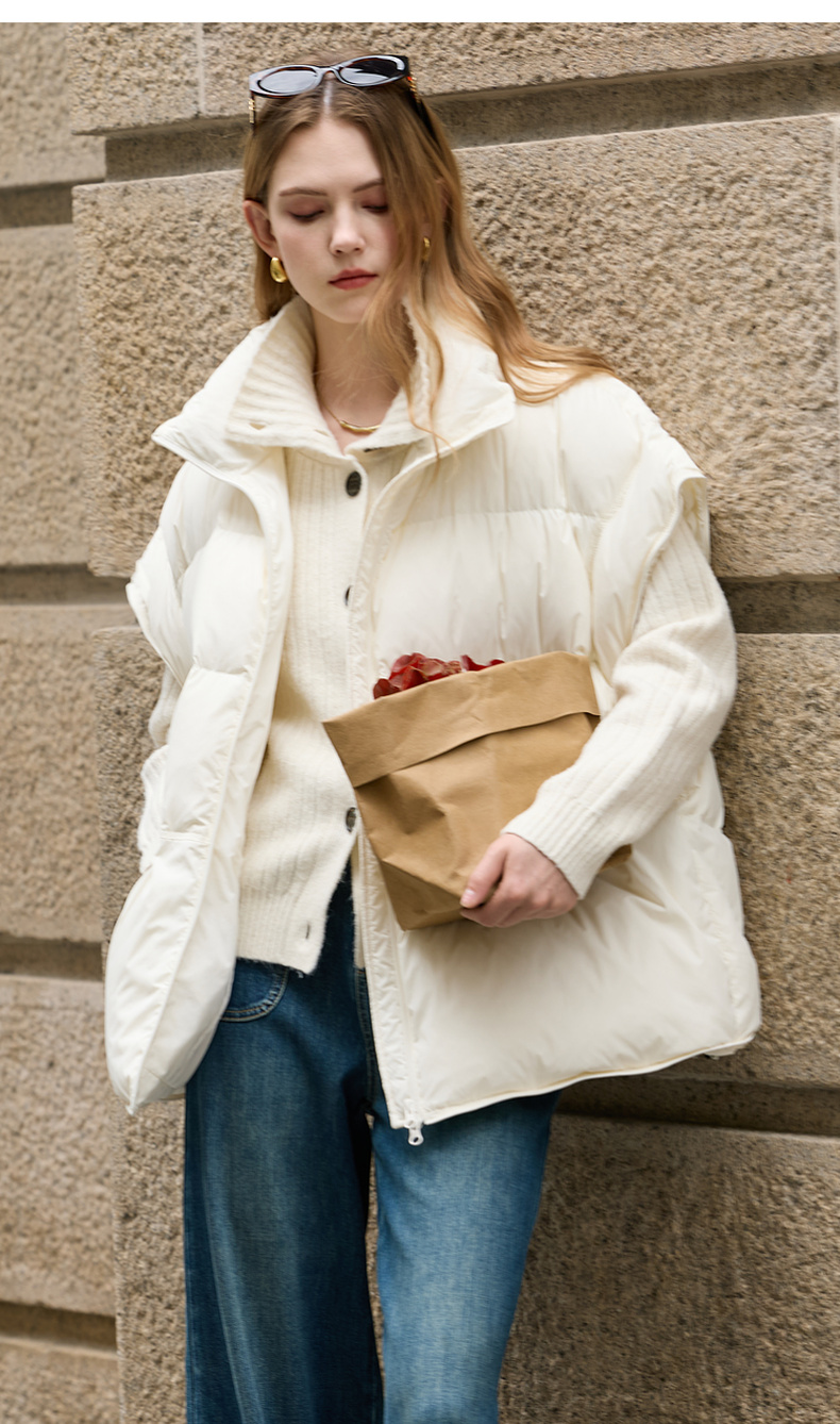 【易打理】三彩2025冬季新款90白鸭绒羽绒马甲宽松外穿时髦M