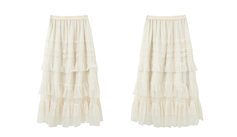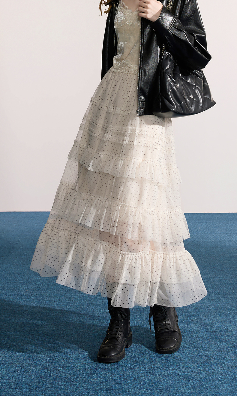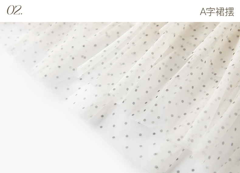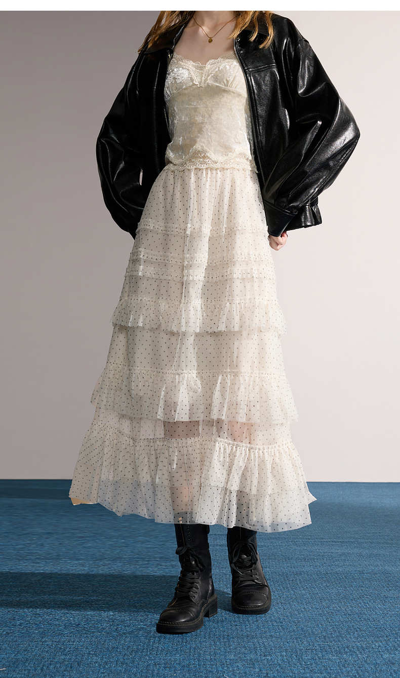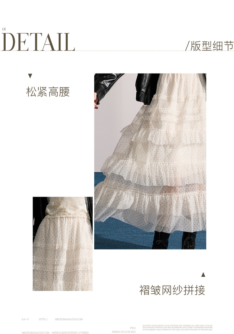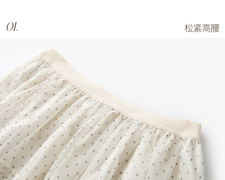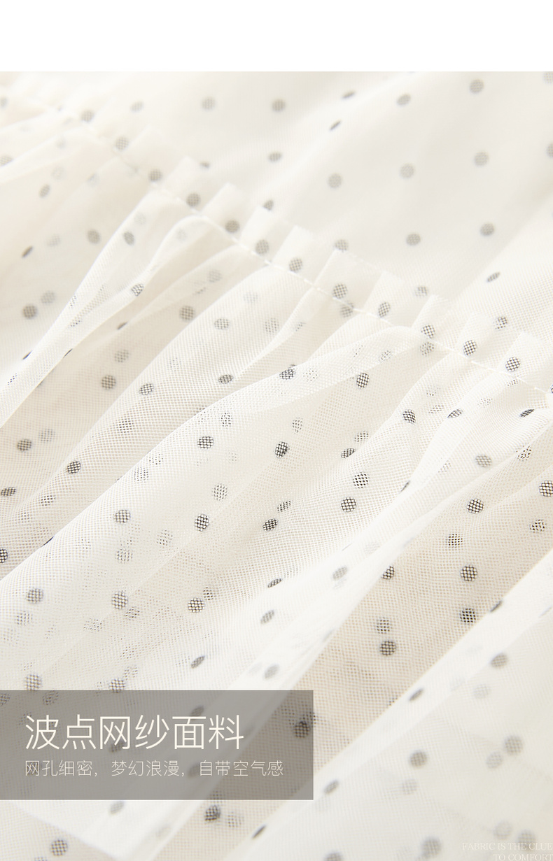 三彩2025秋季新款波点网纱半身裙高腰蓬蓬裙A字裙蛋糕裙长裙M