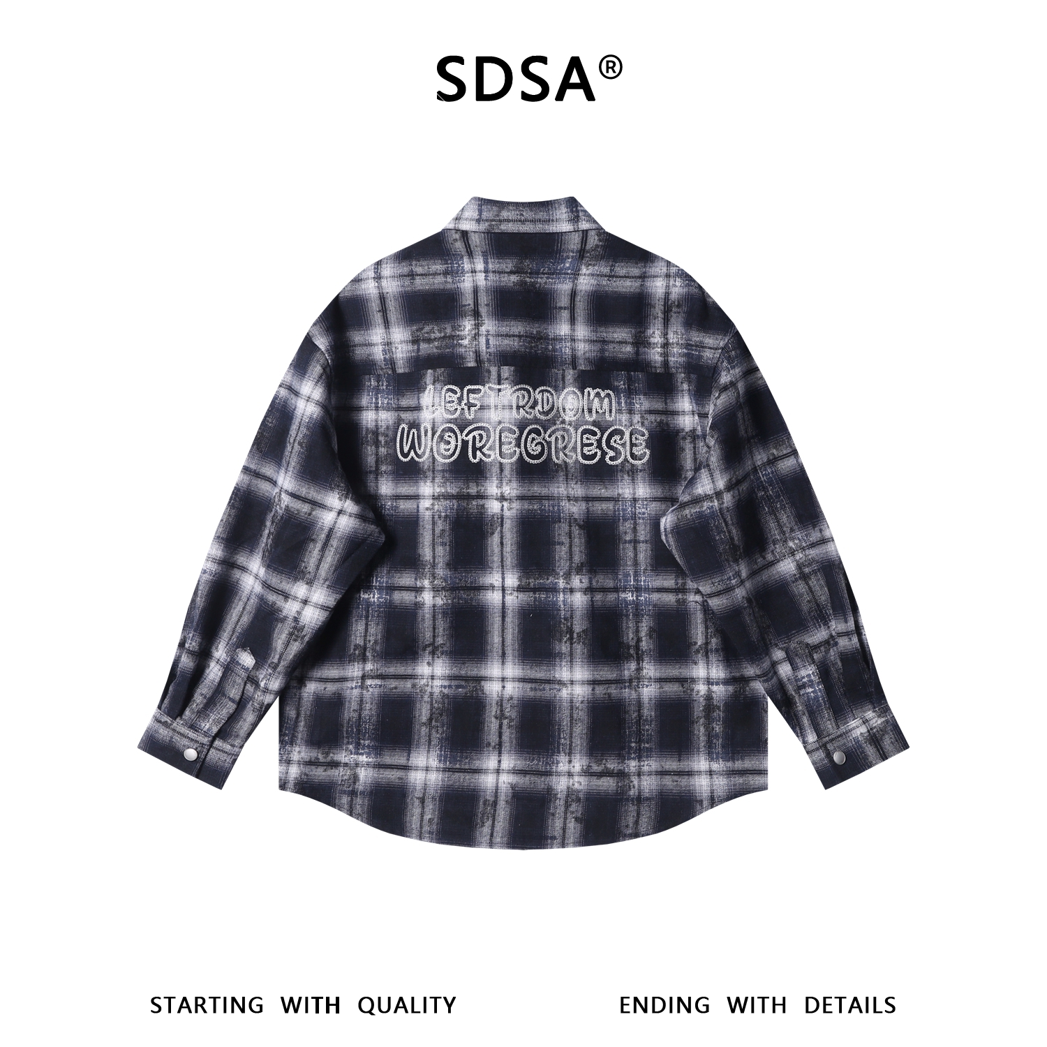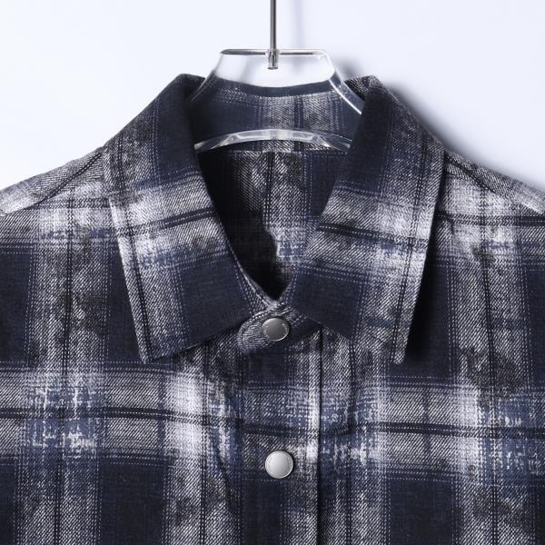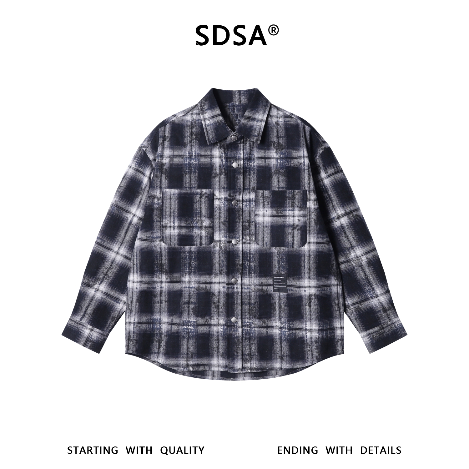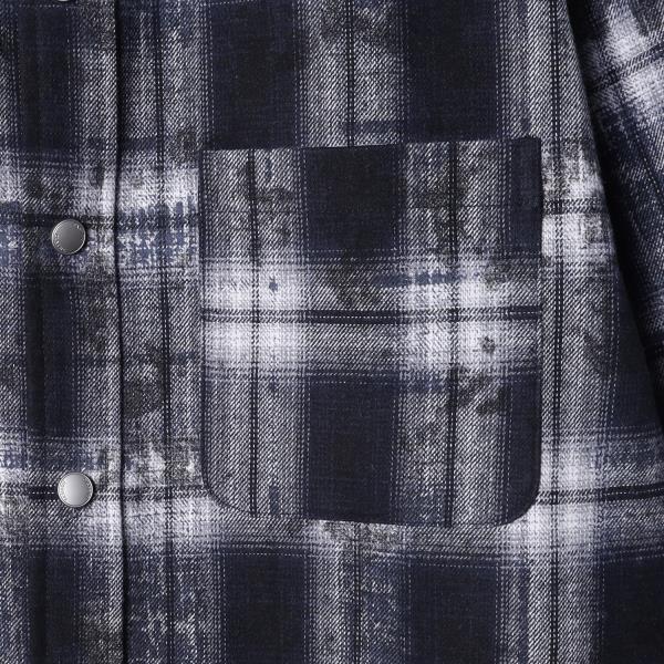 5719SDSA秋冬新款痞帅男装复古扎染格纹格子按扣长袖衬衫百搭休闲衬衣