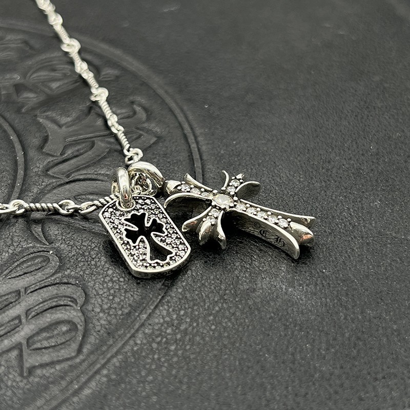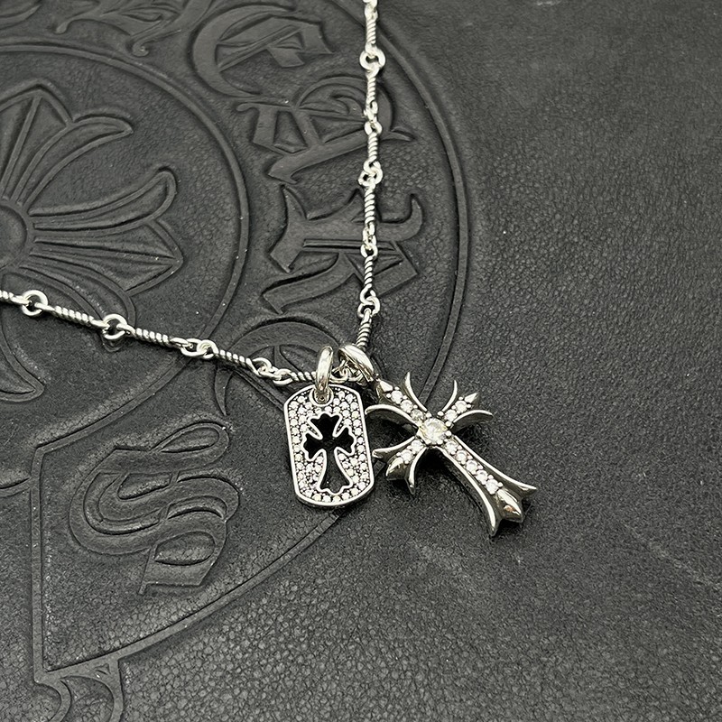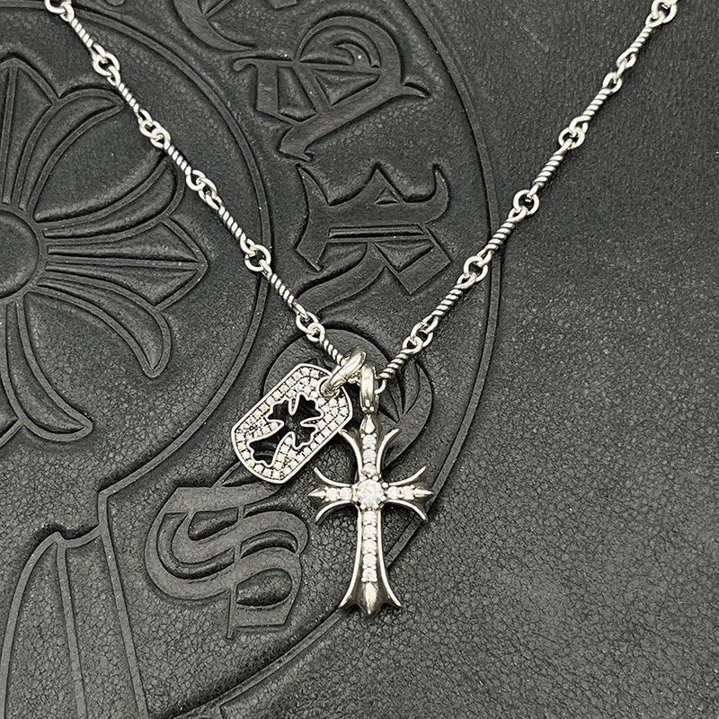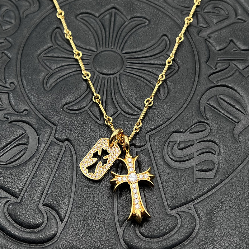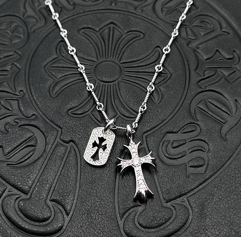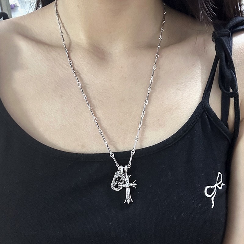潮款项链泰银复古十字架满钻小吊牌项链男女毛衣链吊坠首饰