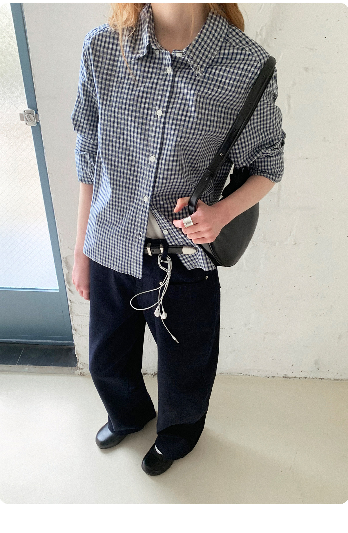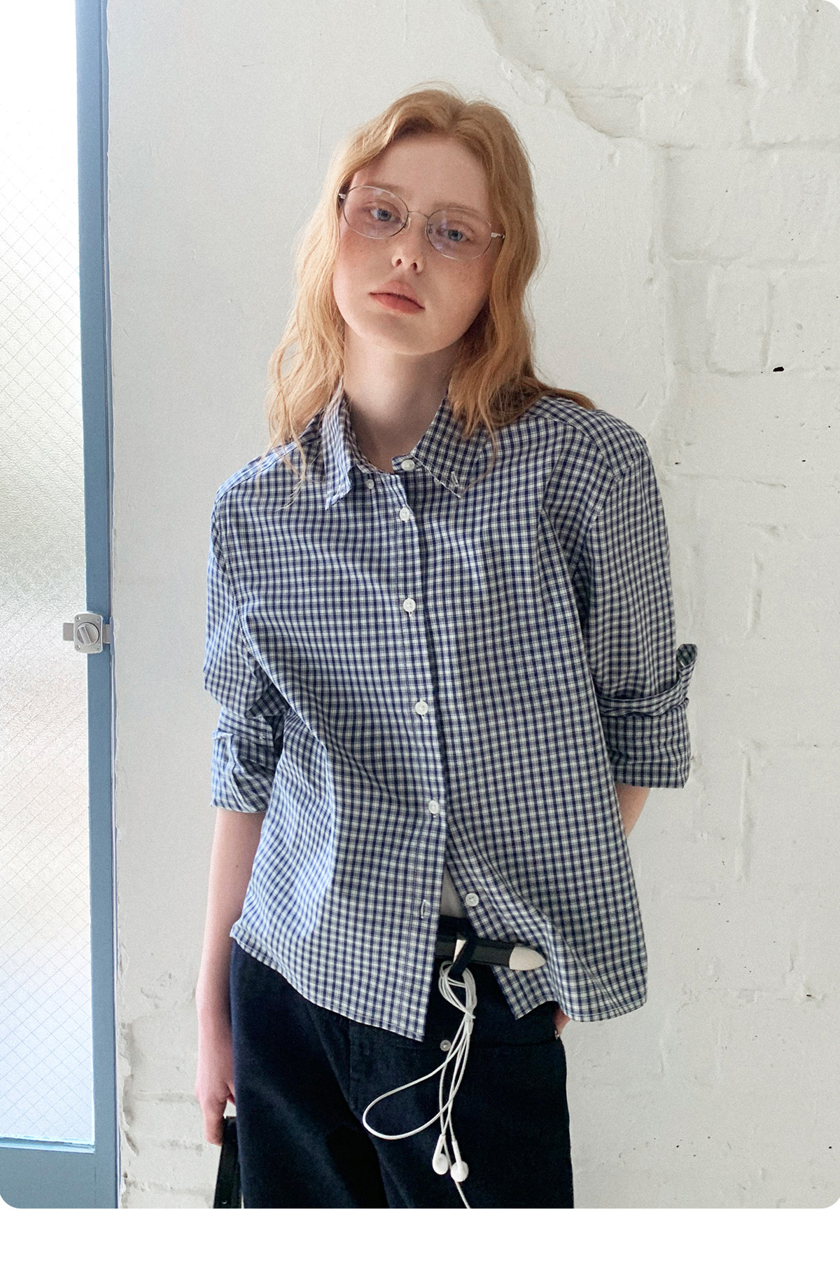 714street美式复古蓝白格纹长袖衬衫2026春季潮牌宽松纯棉衬衣女