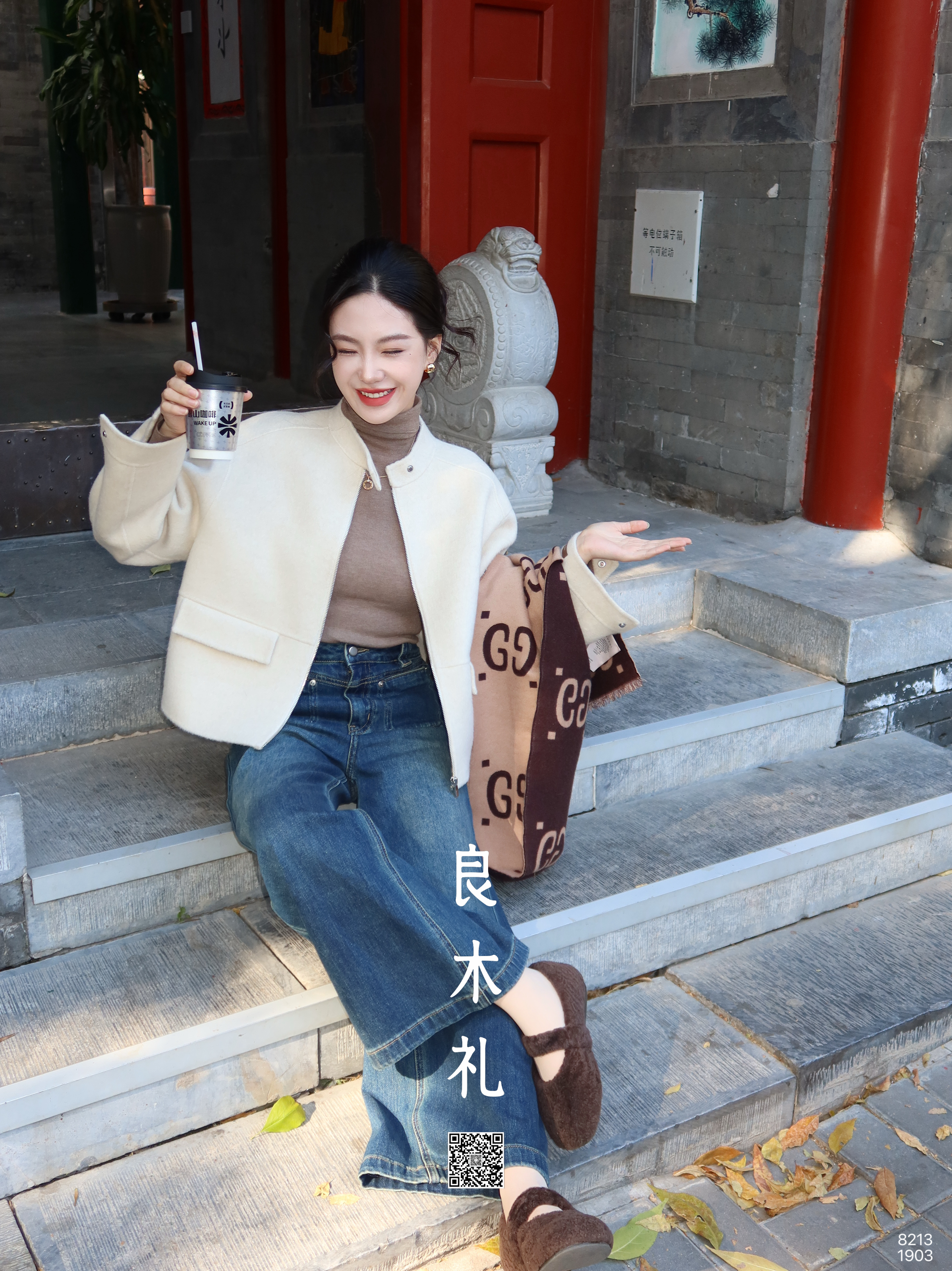 【特价不退换】【预售7天/加绒】良木礼阔腿牛仔裤(小咖啡)(3849)