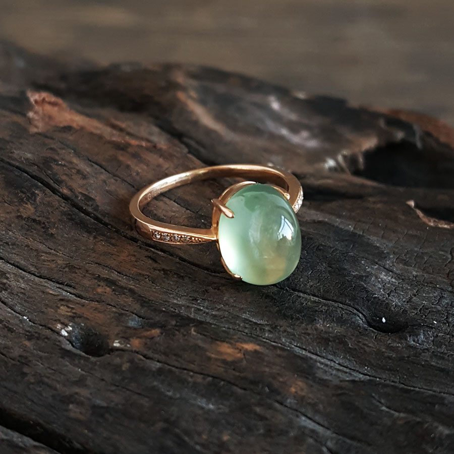 名称 | AU750玫瑰金镶天然葡萄石(希望、幸运)戒指 |