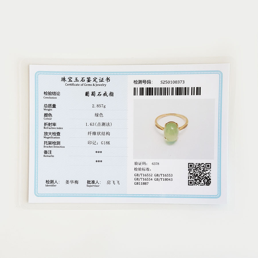 【天然正品】AU750玫瑰金镶天然葡萄石(希望、幸运)戒指13号(戒圈可改)171124TJ01 现售价:2580
