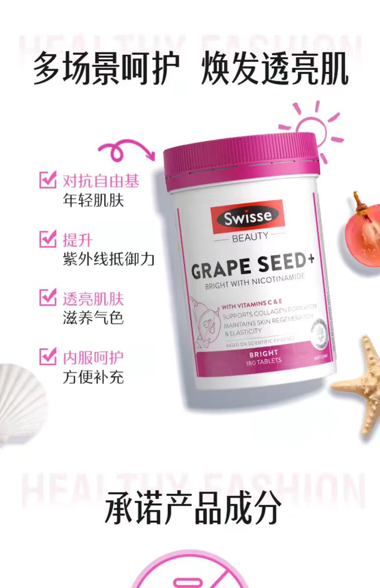 Swisse斯维诗 葡萄籽精华片保持皮肤健烟酰胺片180粒
