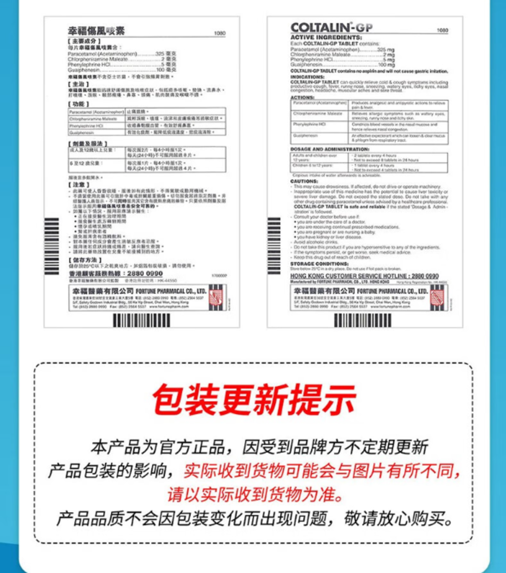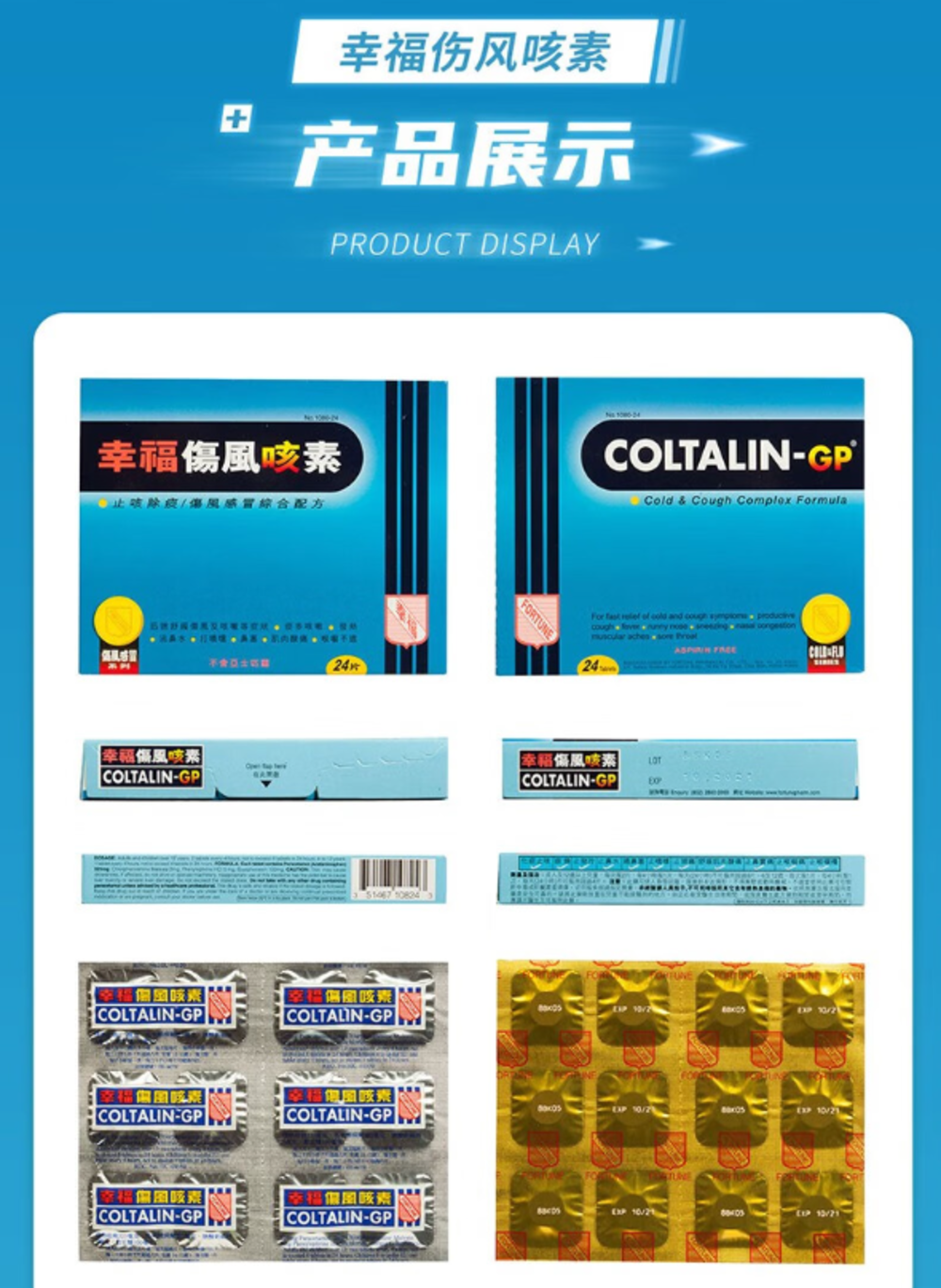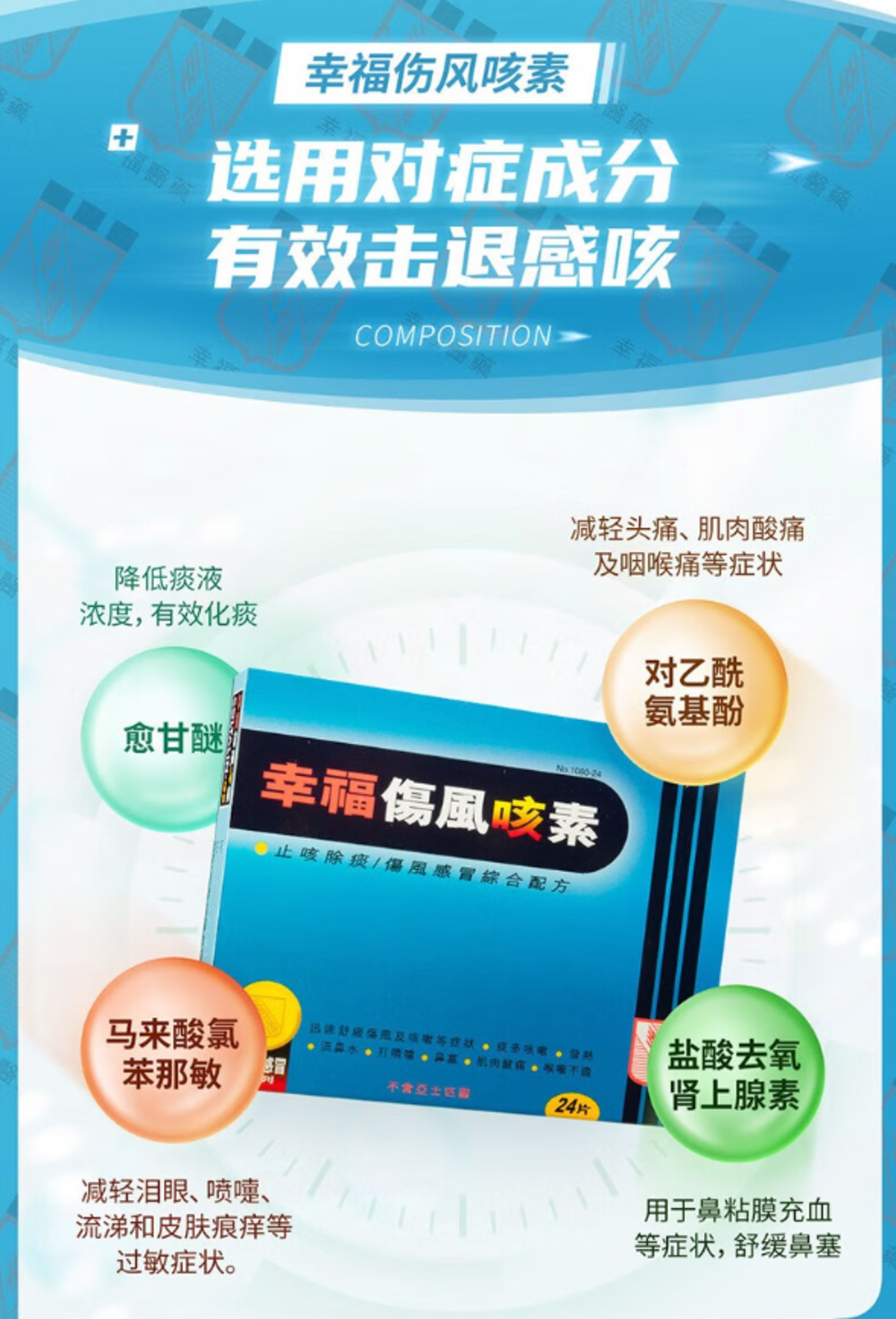 【香港直邮】发烧痰多鼻塞肌肉痛喉咙痛 正品幸福伤风咳素(24片装)
