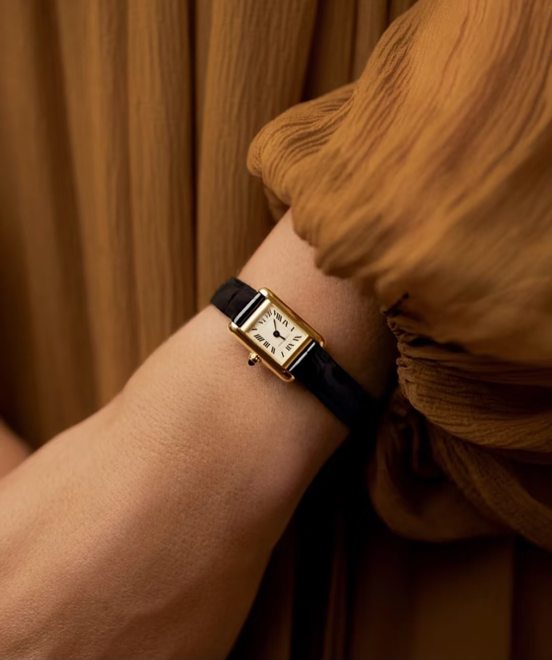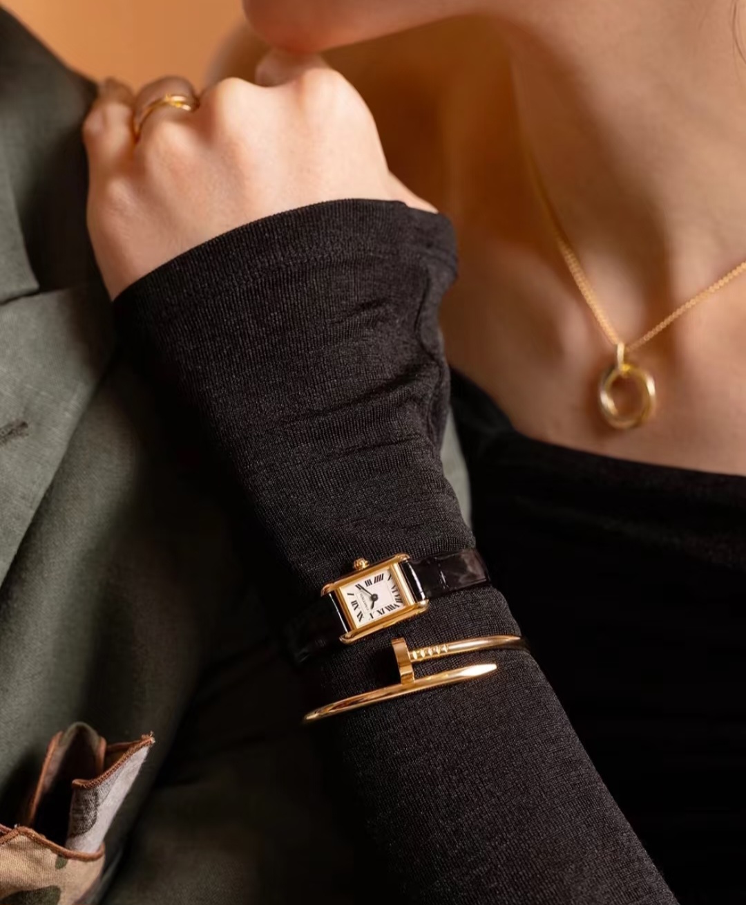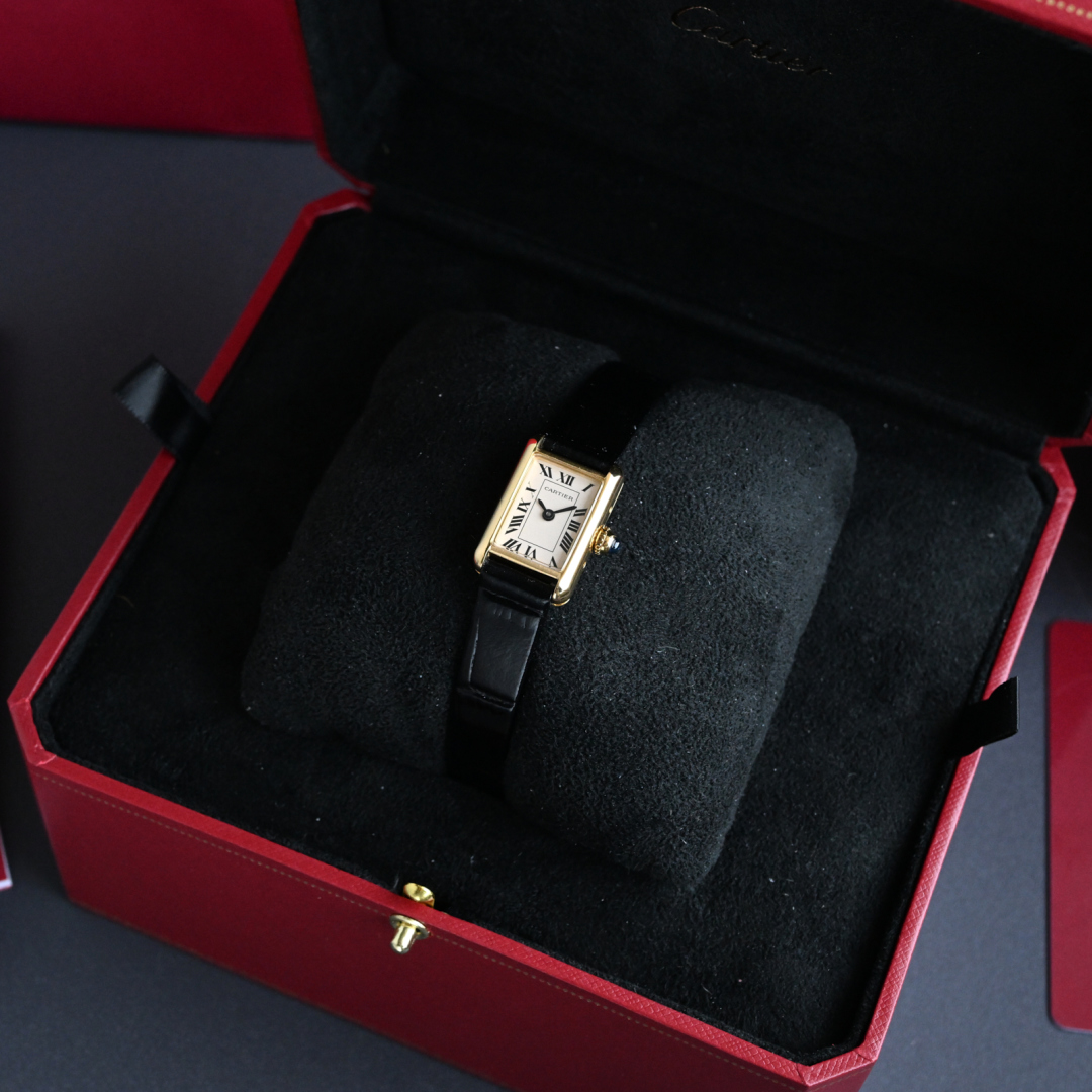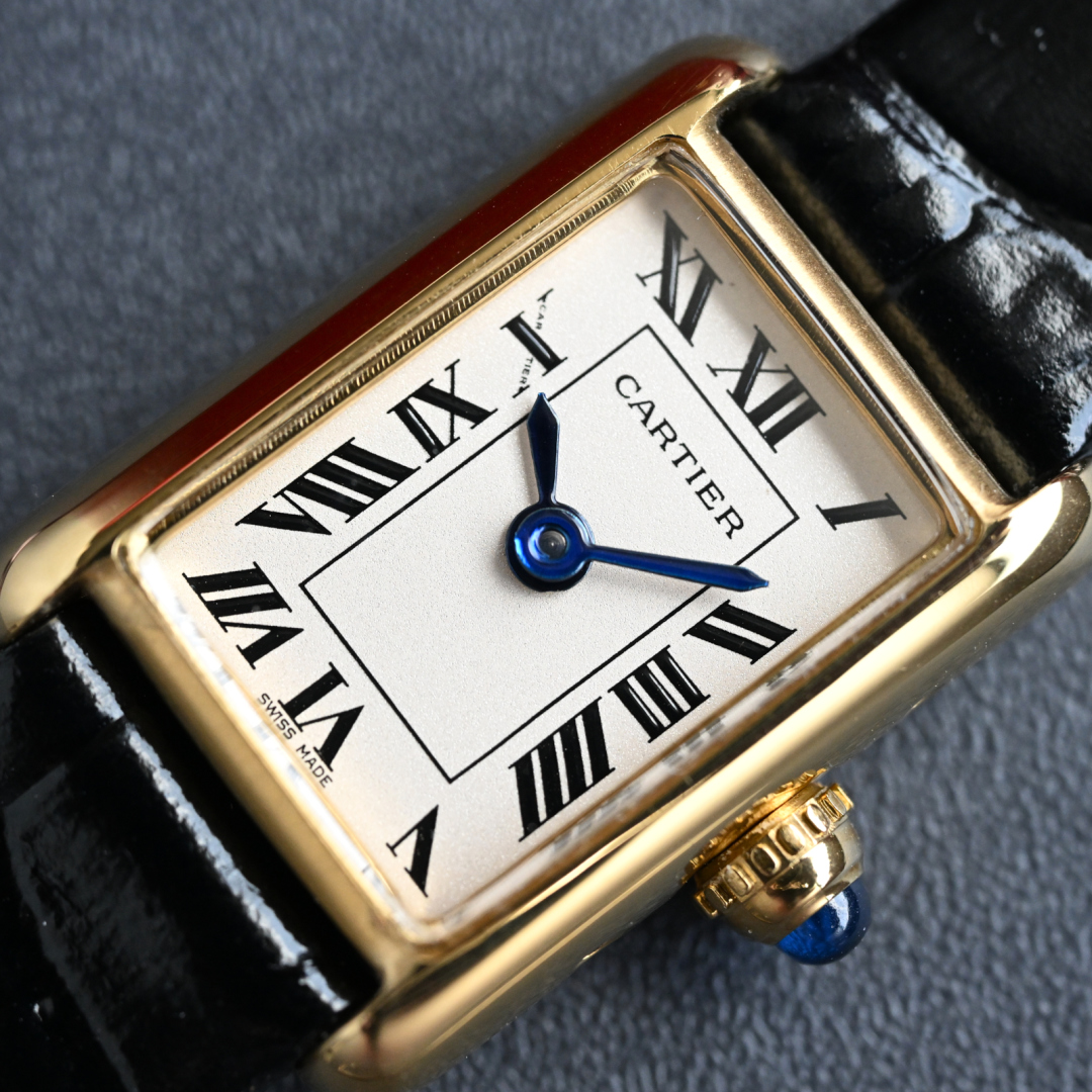 新款卡地亚坦克迷你小号24*16 CARTIER-Tank爆款推出,卡地亚坦克WGTA0212尺寸为24毫米×16mm,厚度仅为6.3,这种小巧精致的设计使其成为女士腕表的不二之选。表壳的线条流畅而硬朗,展现出一种独特的力量感与优雅并存的风格。尤其是表壳的抛光处理,使其在光线下呈现出迷人的光泽,而侧面的拉丝工艺则进一步提升了质感。这款表的设计理念围绕"少即是多"展开,每一个元素都经过精心考量。矩形表壳的比例遵循黄金分割,表耳与表壳的衔接流畅自然,整体造型既刚毅又优雅。表盘上的罗马数字时标和蓝钢指针保留了卡地亚最经典的设计语言,而分钟轨道的精细刻度则体现了对细节的极致追求。表壳采用316L精钢材质,经过多道工序精细打磨。首先,原材料经过精密切割,形成表壳的雏形。随后,经验丰富的工匠使用传统工具手工打磨每个棱角,确保线条的流畅与精准。表壳侧面采用拉丝处理,增强质感的同时也提高了抗刮擦性能;而表圈则经过镜面抛光,呈现出如镜面般的光泽。 表壳的弧度是复刻过程中的一大难点。原版卡地亚坦克的表壳具有独特的微弧设计,既符合人体工程学,又增加了视觉上的轻薄感。复刻团队使用3D扫描技术获取原版表壳的精确曲线数据,然后通过CNC数控机床进行精密加工,最后再由资深工匠手工调整,确保每一个弧度都与原版无异。表镜方面采用蓝宝石水晶玻璃,具有极高的硬度和透光性。表镜经过双面防眩处理,在不同角度下都能保持清晰的读时体验。值得一提的是,特别注重表镜与表壳的接合处处理,使用特殊的密封胶和压力装配技术,确保防水性能达到日常生活防水标准(30米防水)。表冠是卡地亚坦克系列的标志性元素之一,WGTA0212的表冠镶嵌一颗多切面合成蓝宝石,切割工艺精湛,在不同光线下能折射出迷人的光芒。表冠齿轮的细密度经过精确计算,既保证了调时的顺畅度,又维持了原版的美学比例。