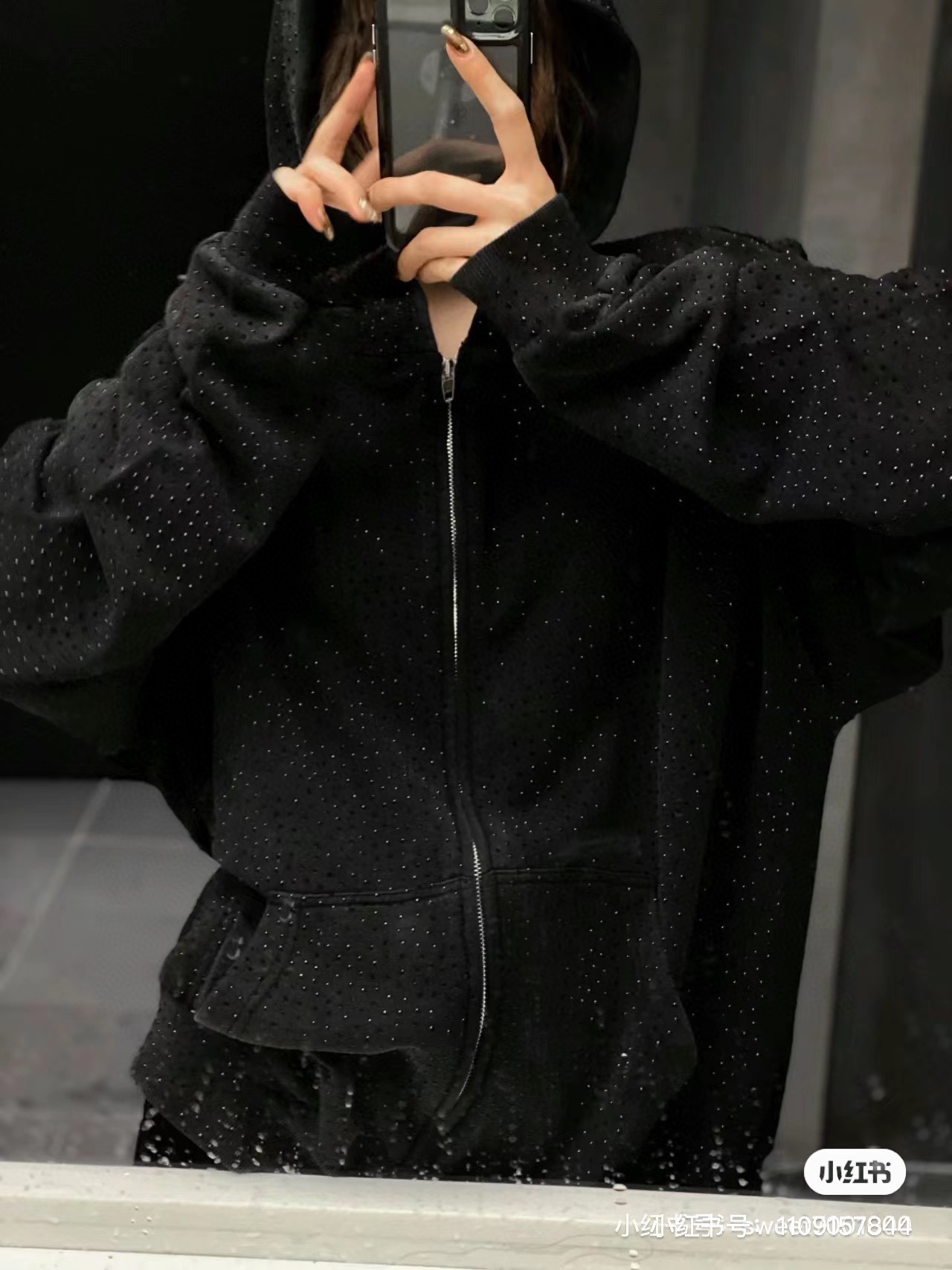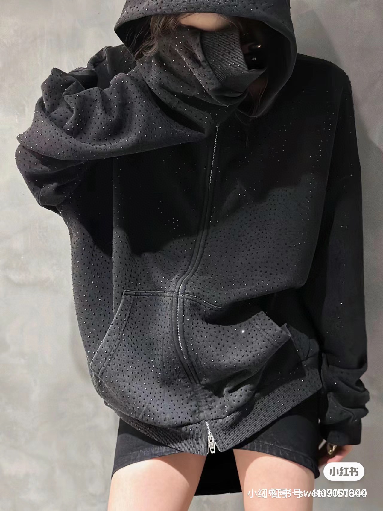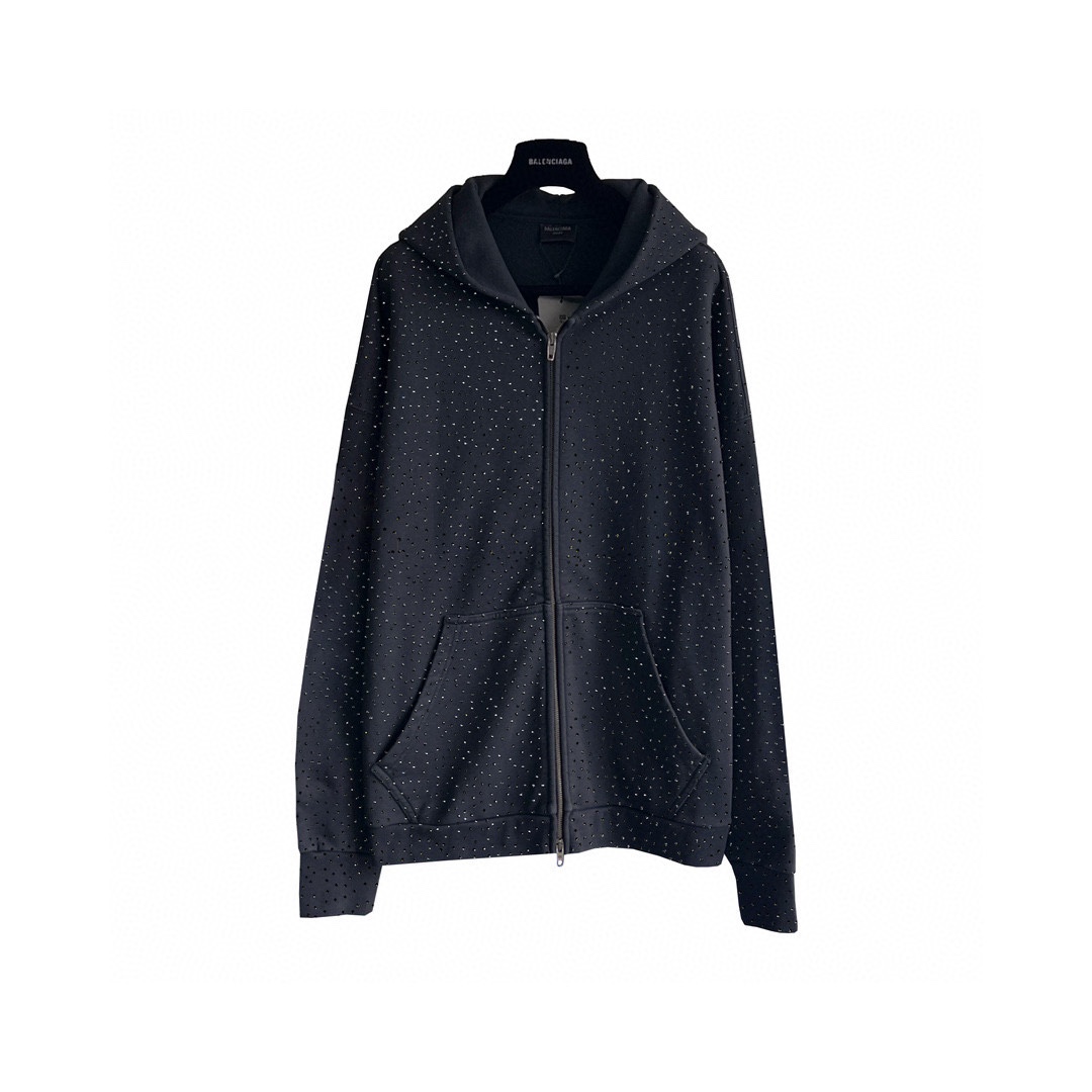 巴黎世家Balenciaga 满钻连帽卫衣 23年新主麦上身 采用成长洗水炒花做旧 再用进口热温滚钻轮 对位滚轮烧花 单件耗时120分钟 区别市场面料采用420g纯棉大卫衣 大货三标齐+码数贴+带Logo防尘纸