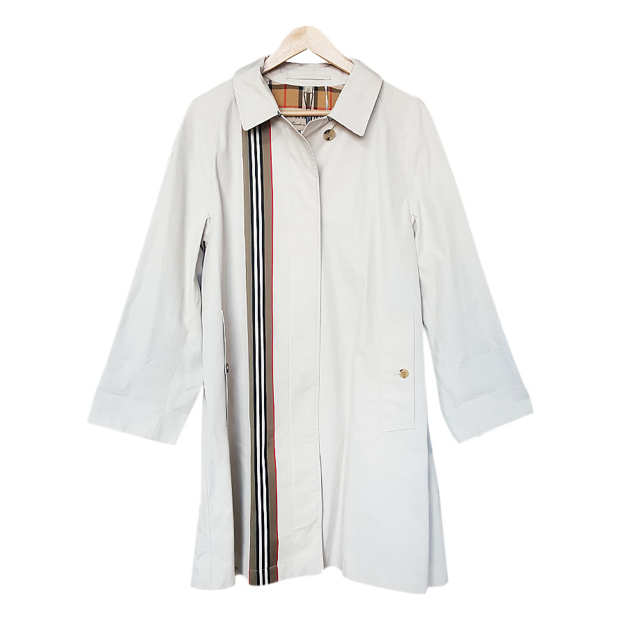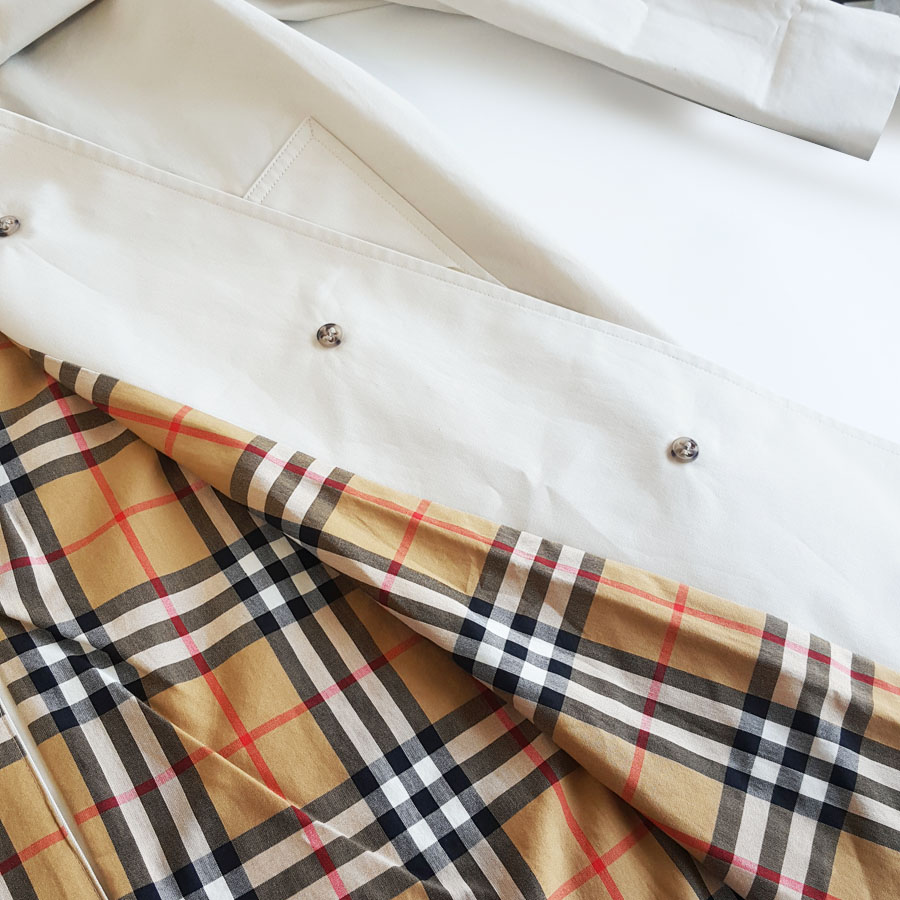 【95新】Burberry博柏利米灰色拼格纹风衣100%棉UK 8码(175/84A)女士现售价:3700!121124TJ18