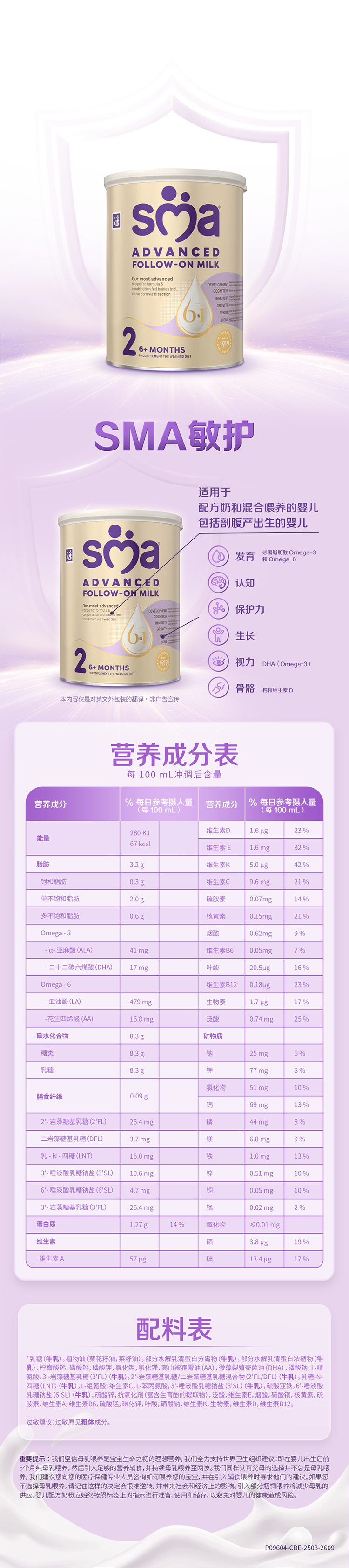 【品牌直供】Wyeth惠氏SMA敏护婴幼儿配方奶粉 2段 6-12月 800g