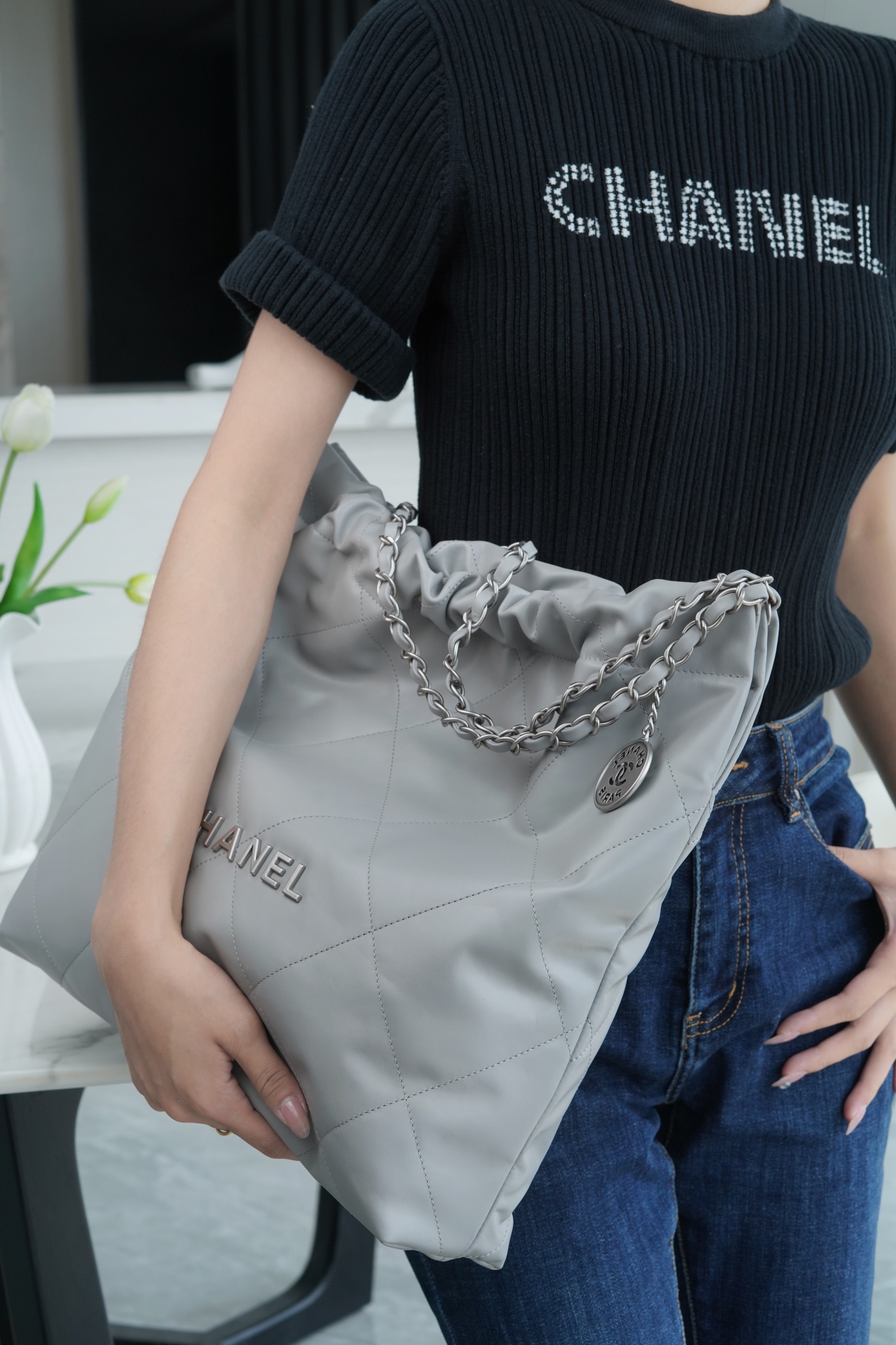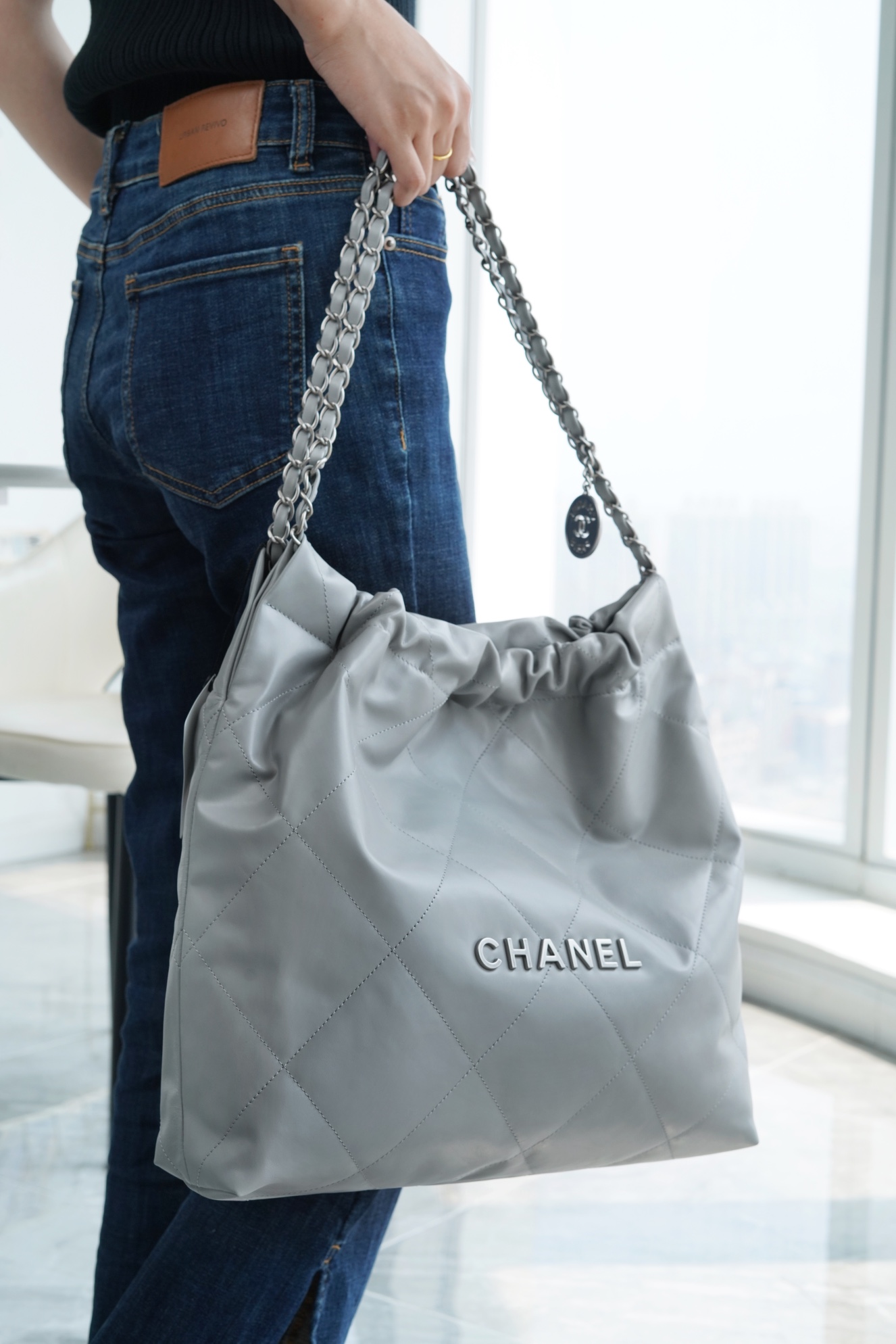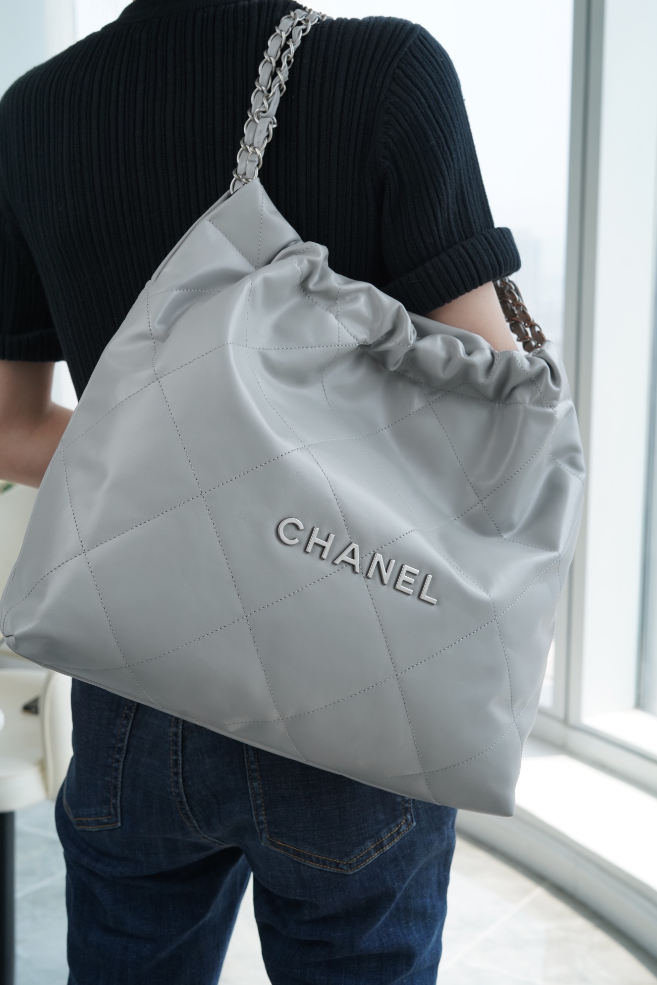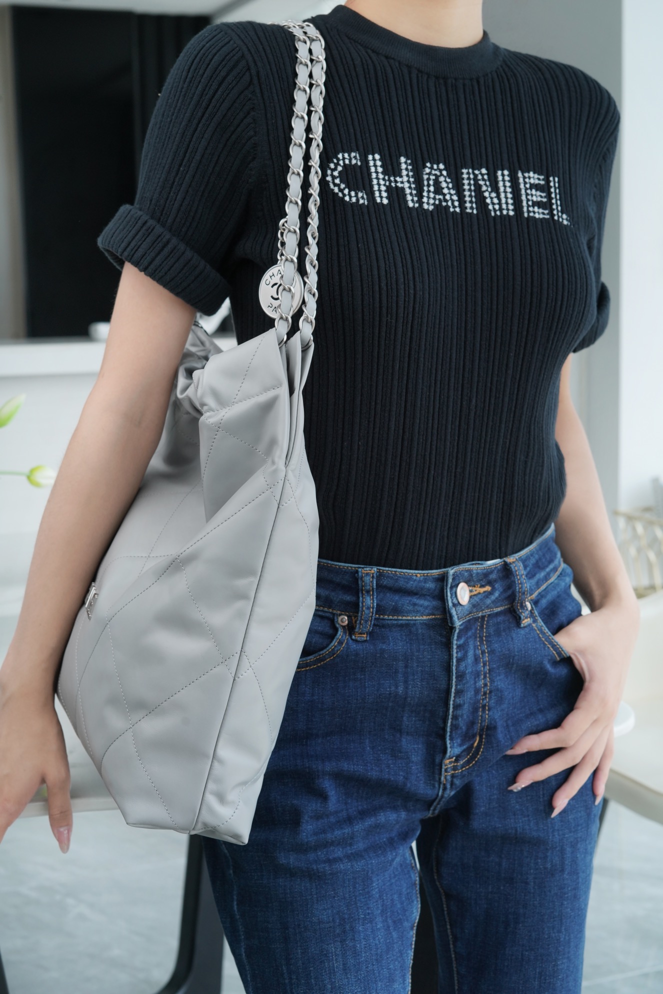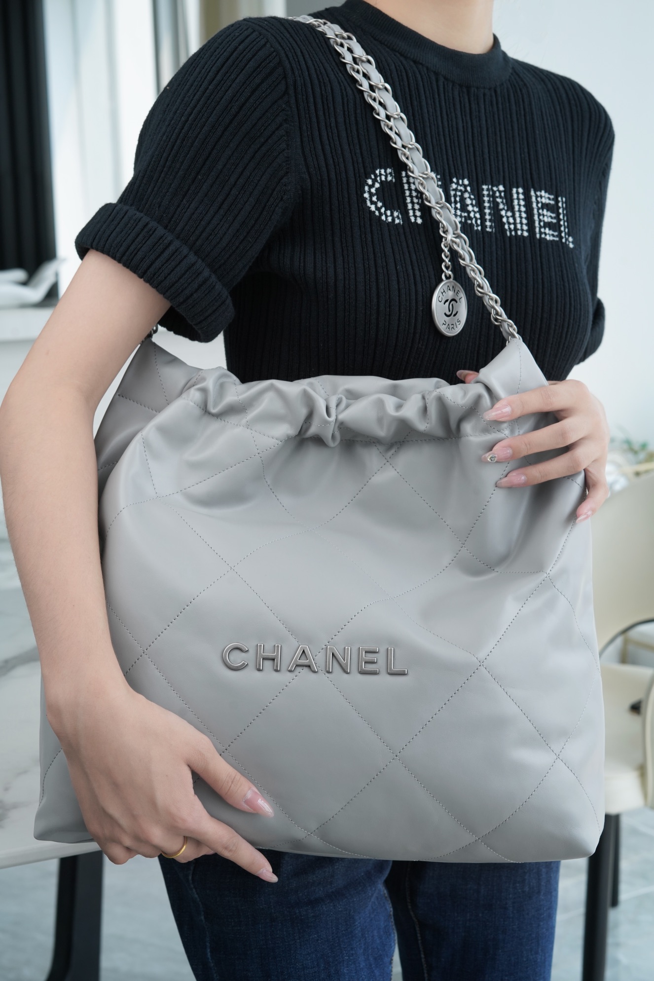 简简单单的外观却藏着不少设计师的高级设计,镂空的chanel logo,小小的点缀让整体气质提高了不止一个Level,满满的复古情怀,松松垮垮的慵懒感! ??