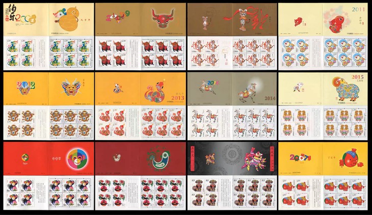 第三轮生肖邮票小本票,包含2004年猴年小本票到2015年羊年小本票。