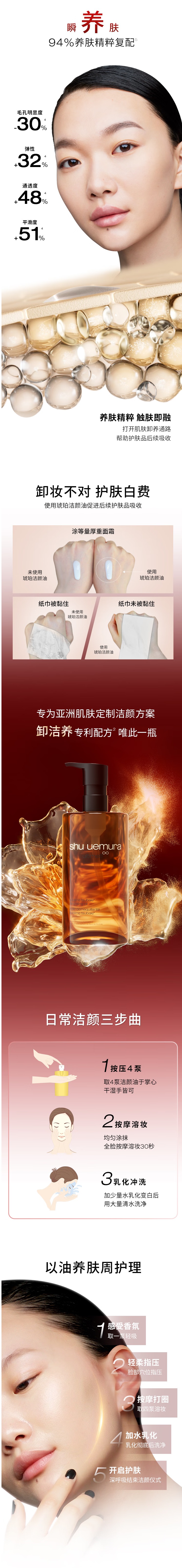 植村秀新臻萃养肤洁颜油琥珀150ml