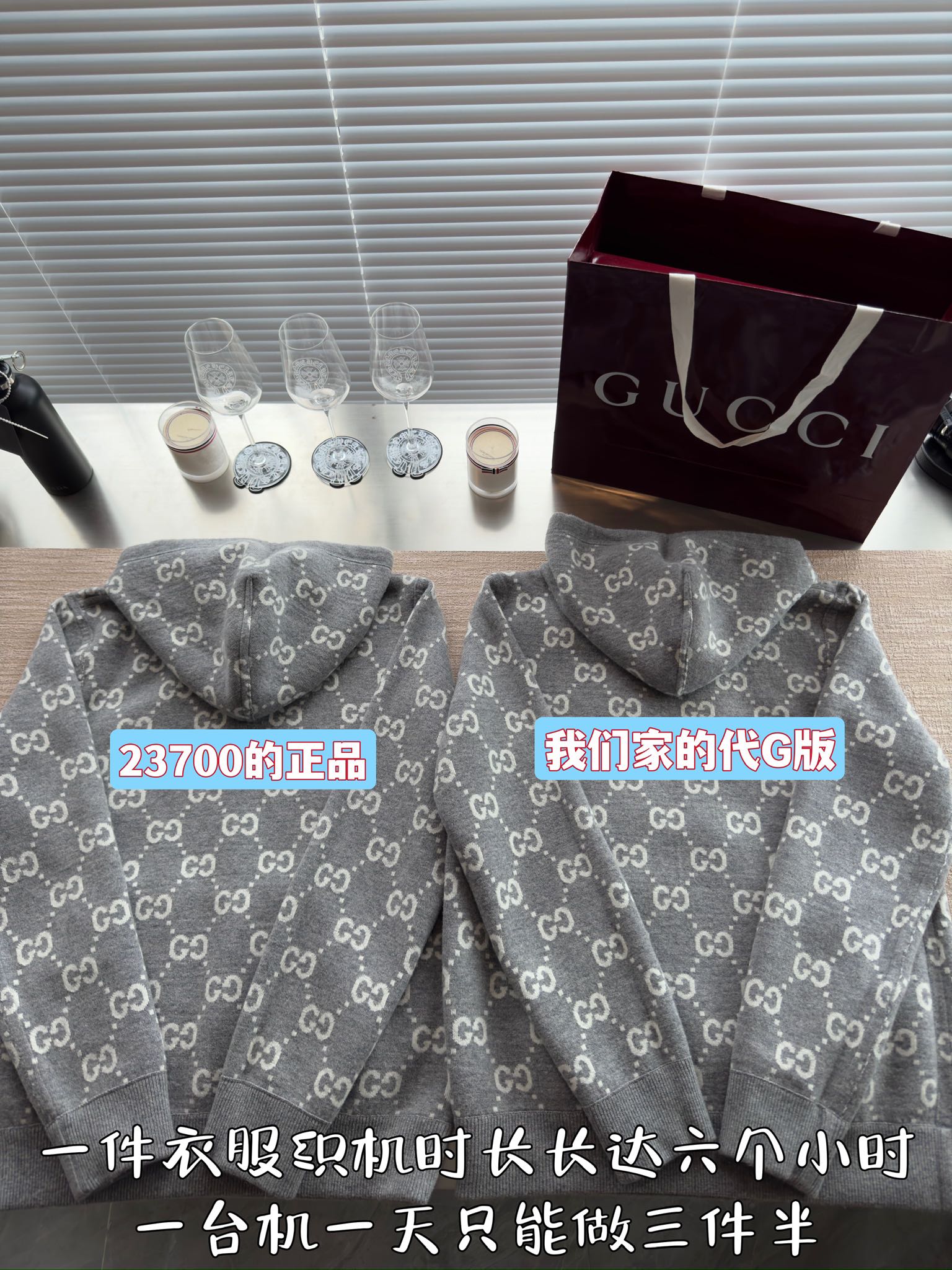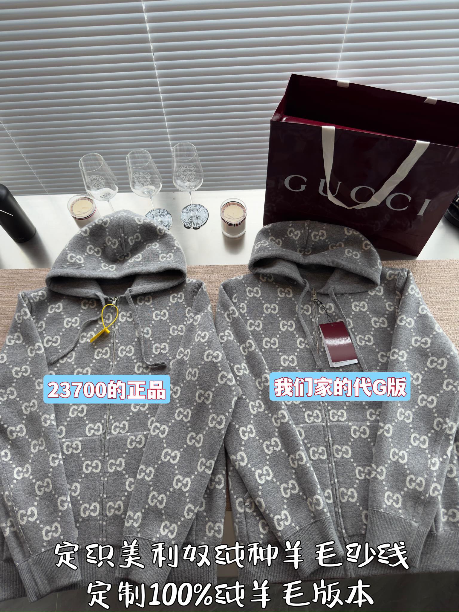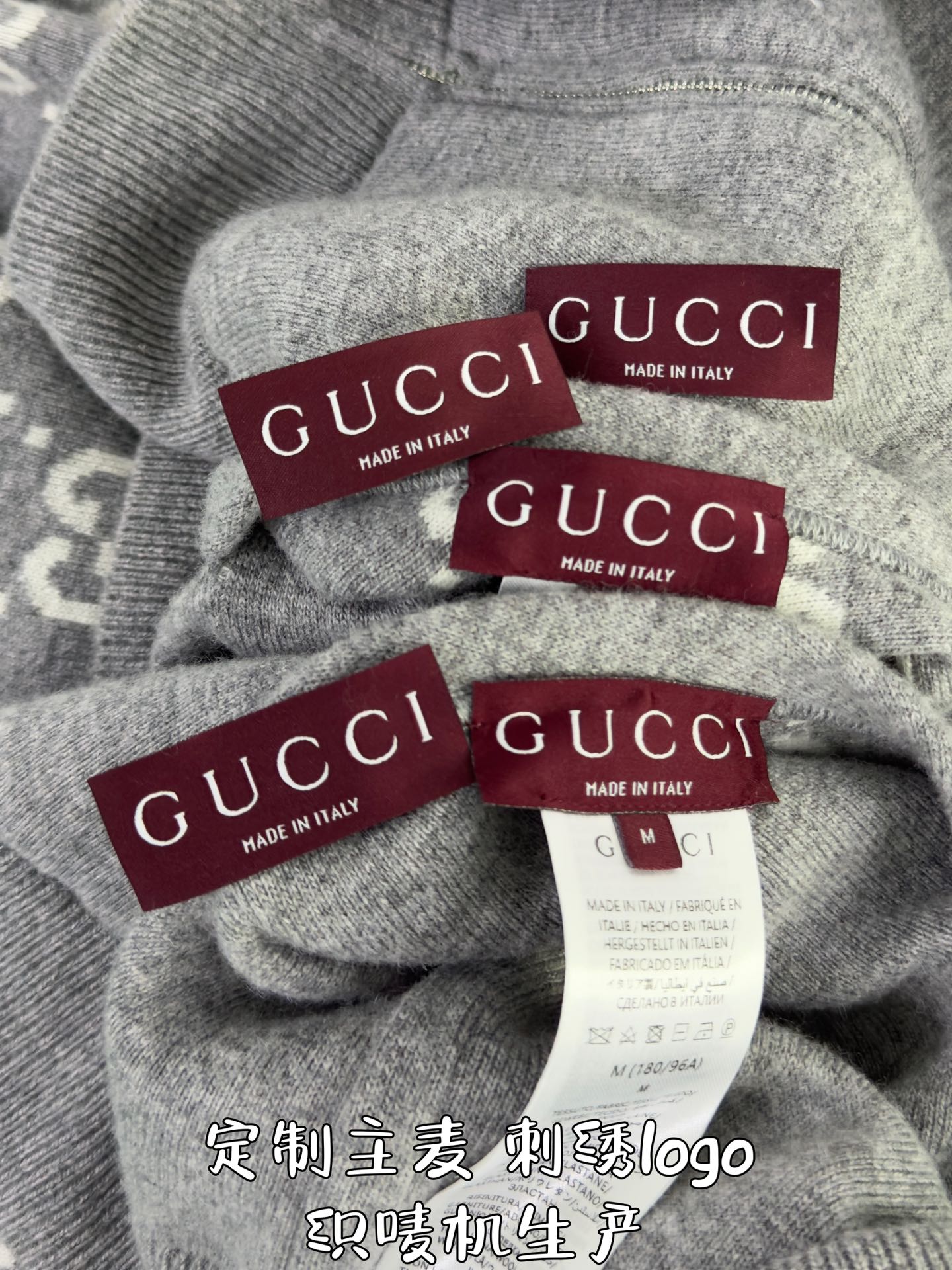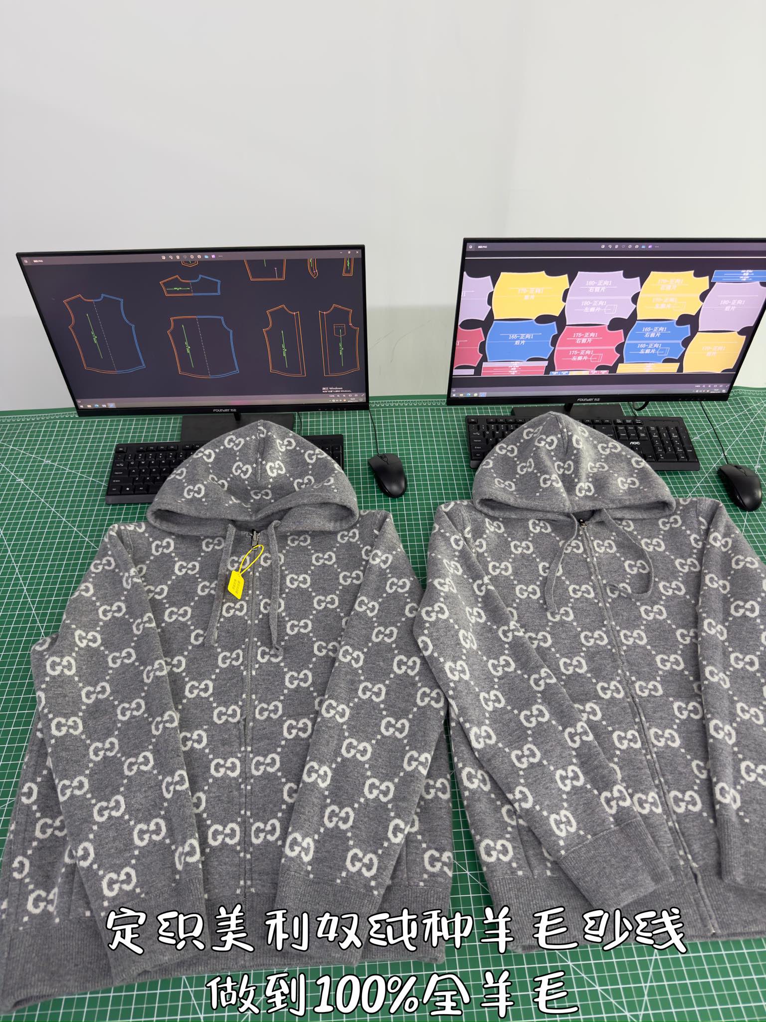 整件衣服23700购买Zp拆解打造,定织美利奴羊毛纱线100%含毛量,全幅GG满绣花LOGO挂毛工艺跟灰色纱线融合在一起 不存在起纱凹凸不平,定制奶奶灰纱线